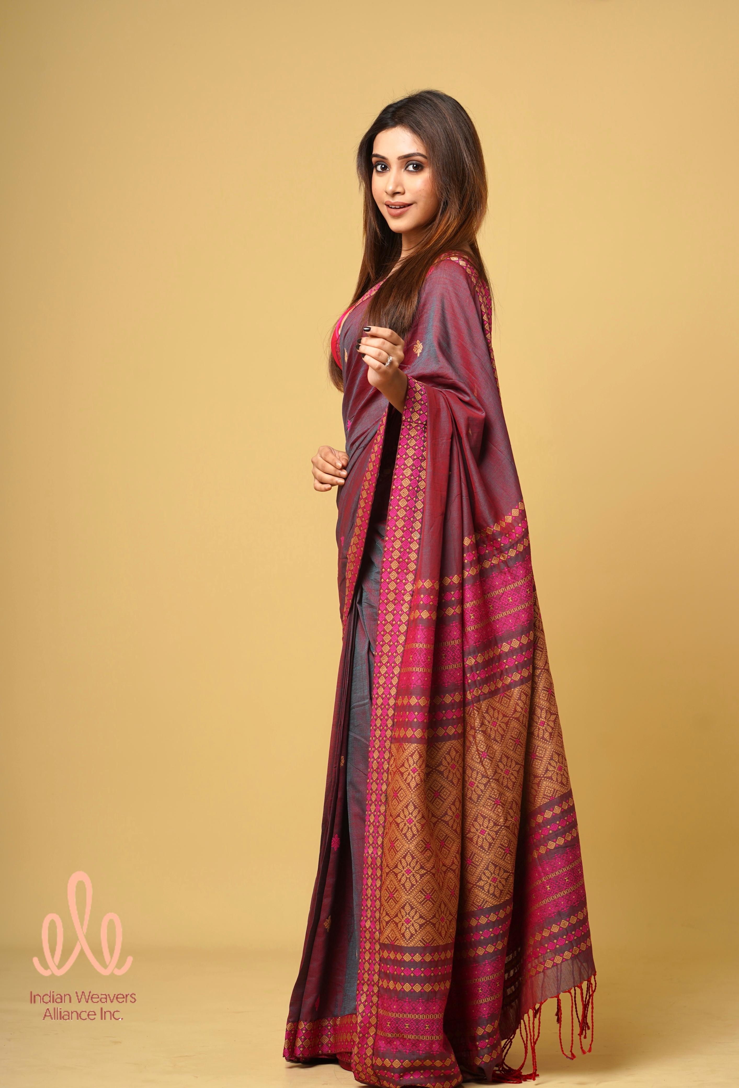 Wine Natural Dyed Handloom Eri Silk Saree from Assam