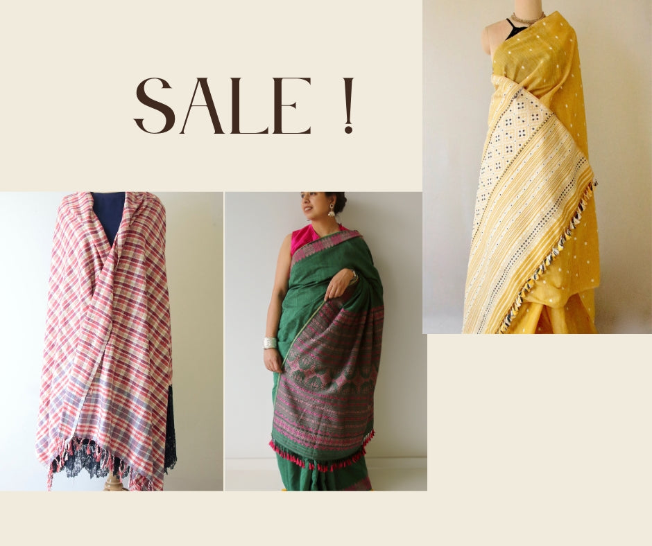 Shop authentic handloom Mekhla Chadars - the traditional Assameese attire.