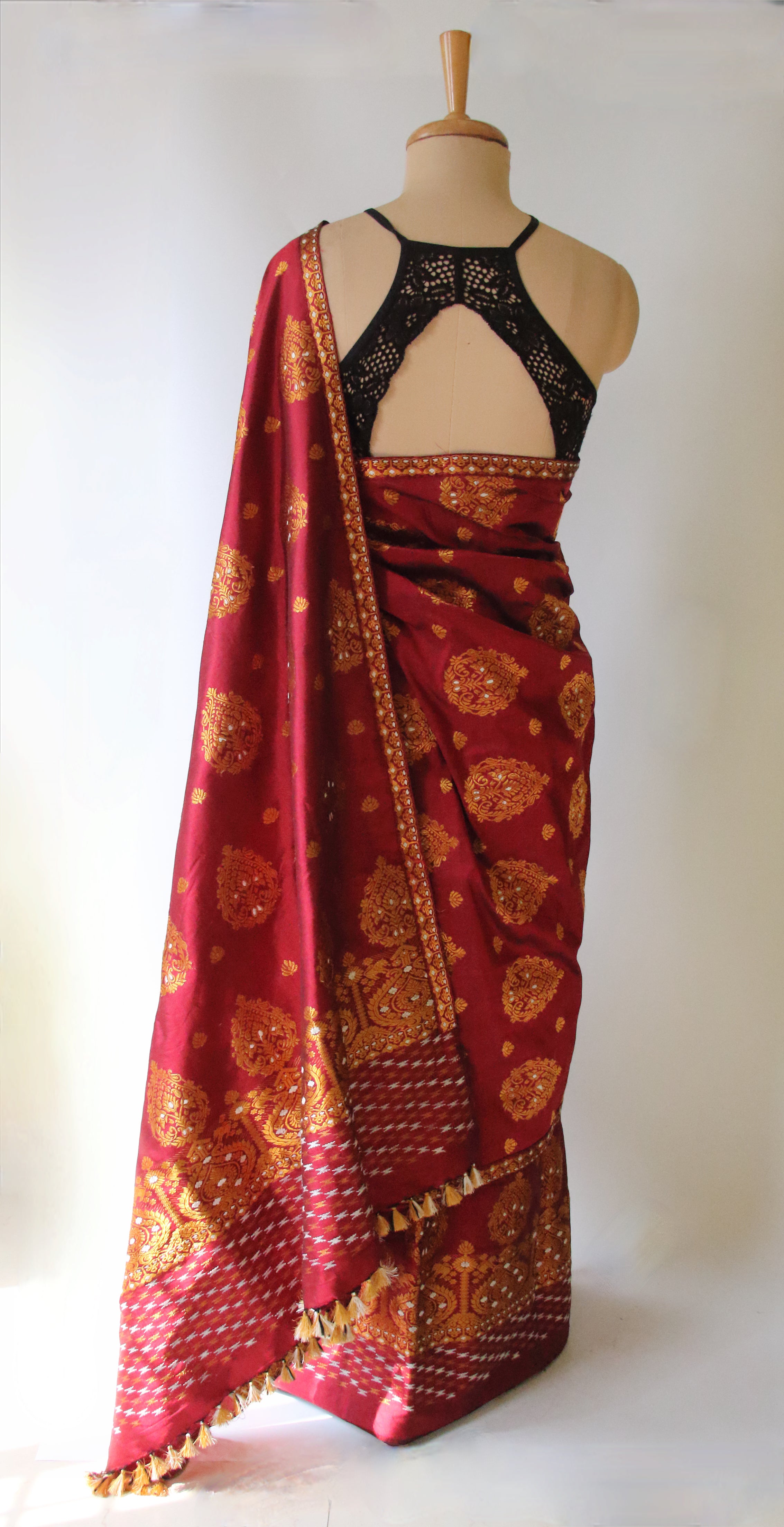 Natural Dyed Maroon Handloom Silk Saree from Assam