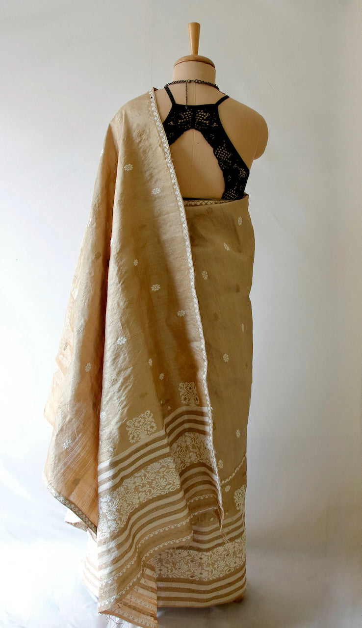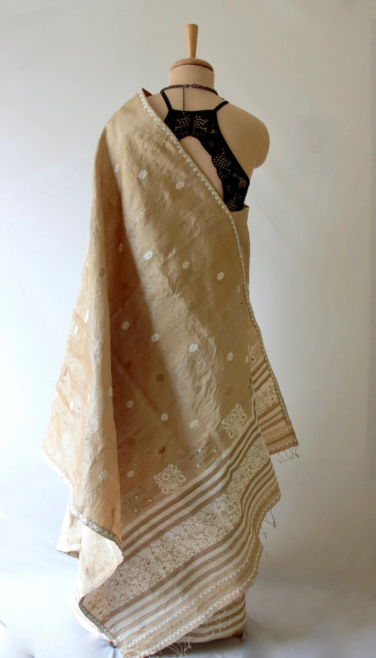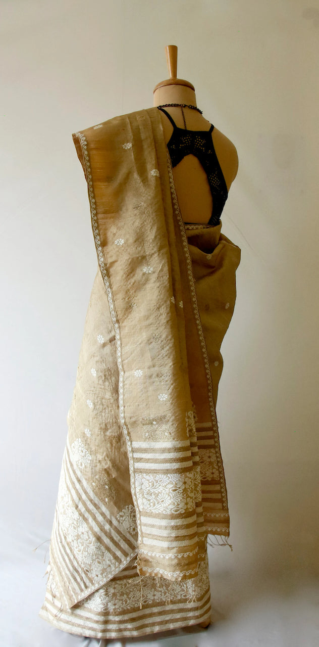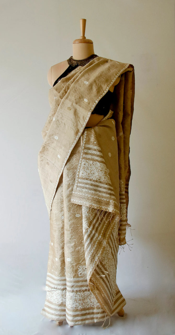 A genuine handloom Muga Silk Mekhla Chador set from our looms in Assam , India .