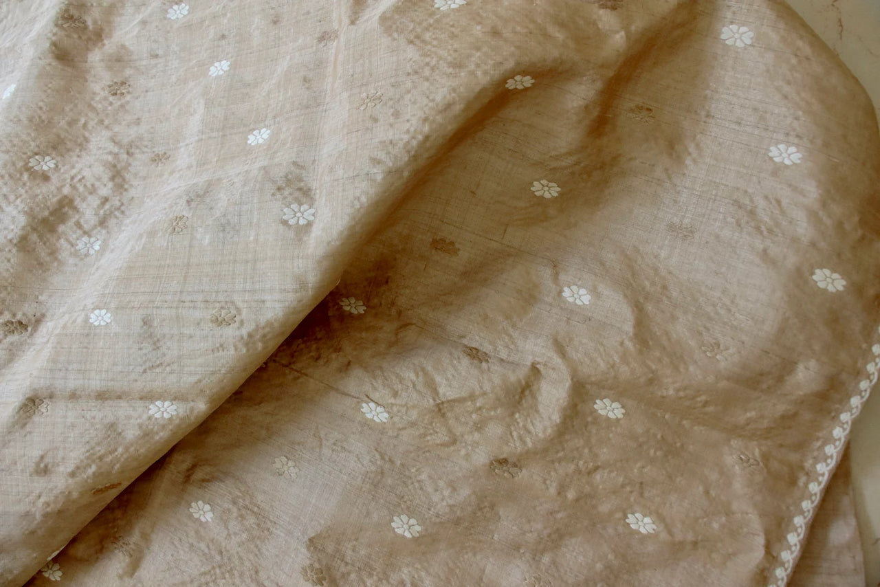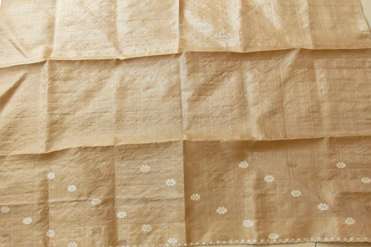 The yarn produced is a natural rich golden yellow or light brown colour depending on the host plant it feeds on. These are unique products. Muga silks resist sunshine and are more durable than mulberry silks. Muga silks can be termed Organic as no harmful chemicals have been used in the cultivation of host trees or in the processing of silk fabrics. No dyes are applied to the yarns. The golden colour is its natural colour. Most Muga rearing and cultivation is still done by village clusters in Assam in the traditional method.