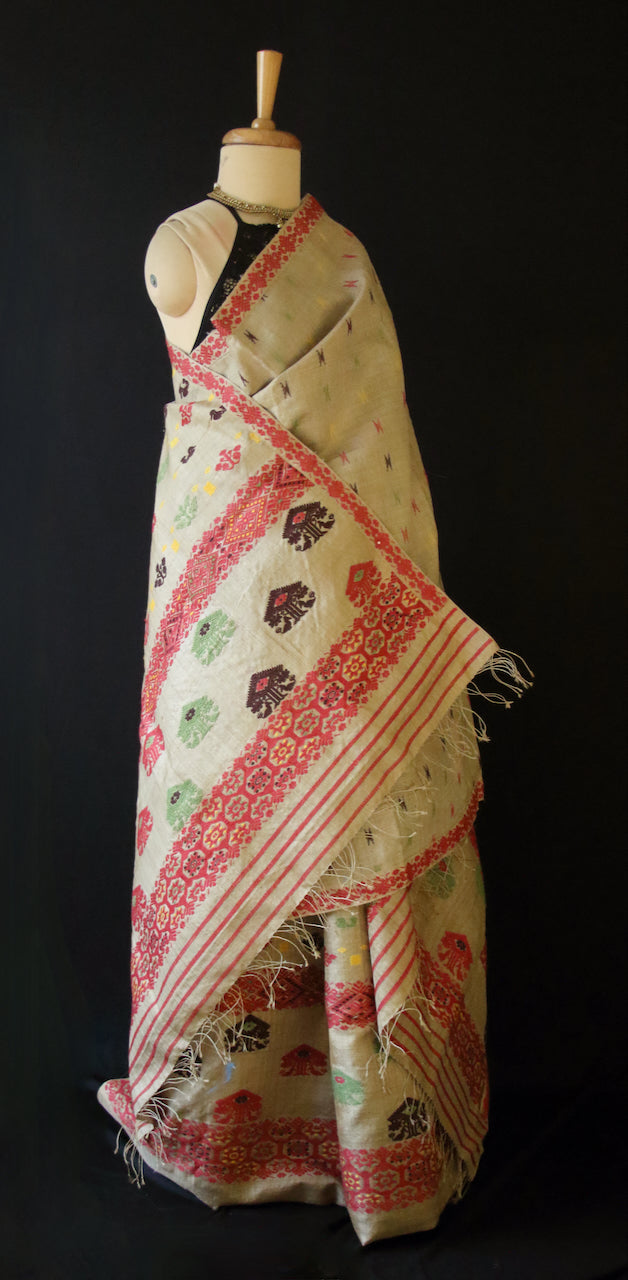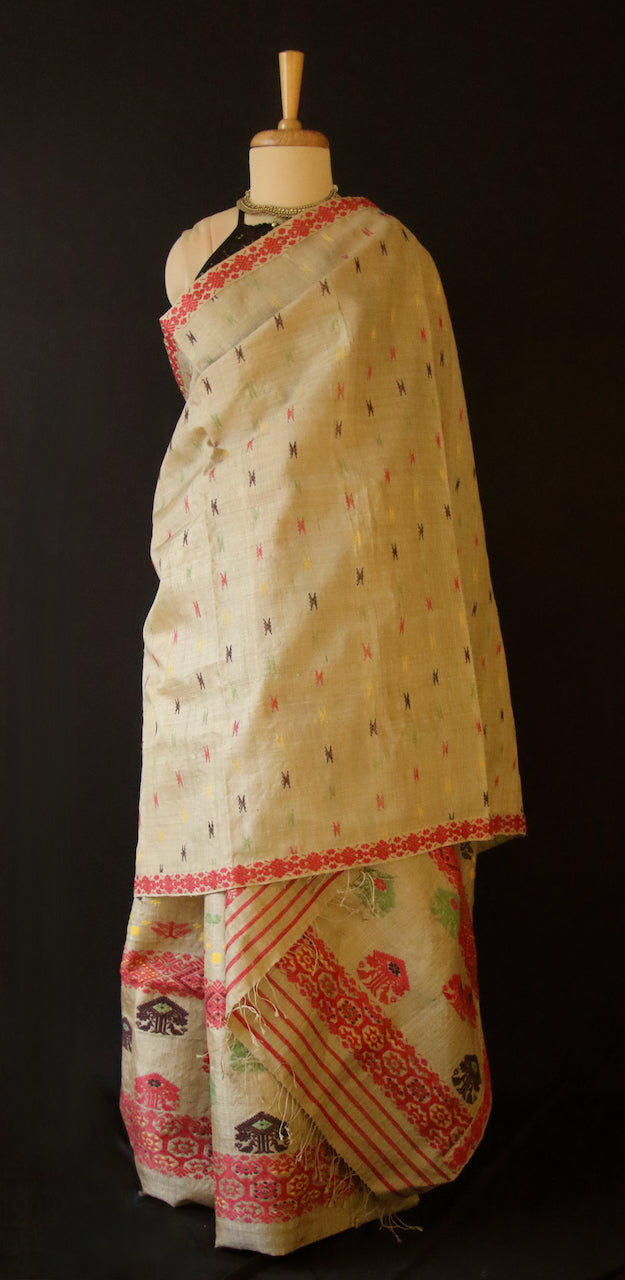 Authentic Muga Silk Traditional Design Mekhela Chador Set- Made to order
