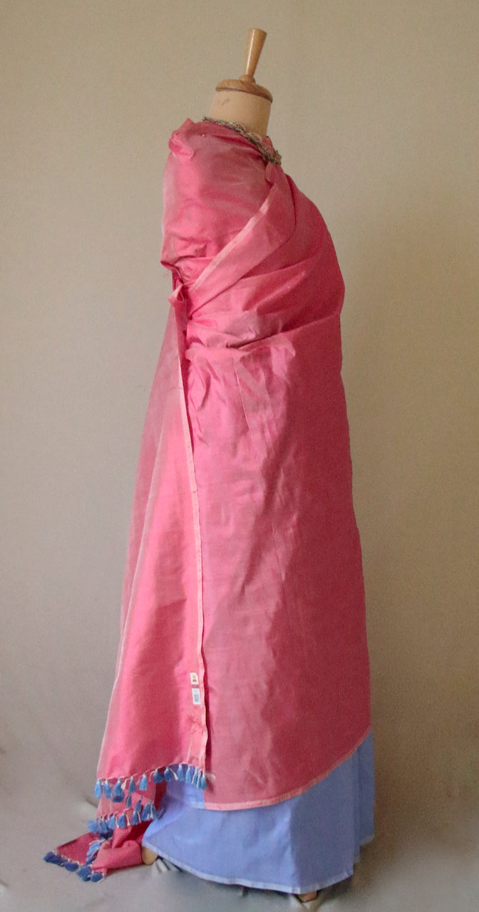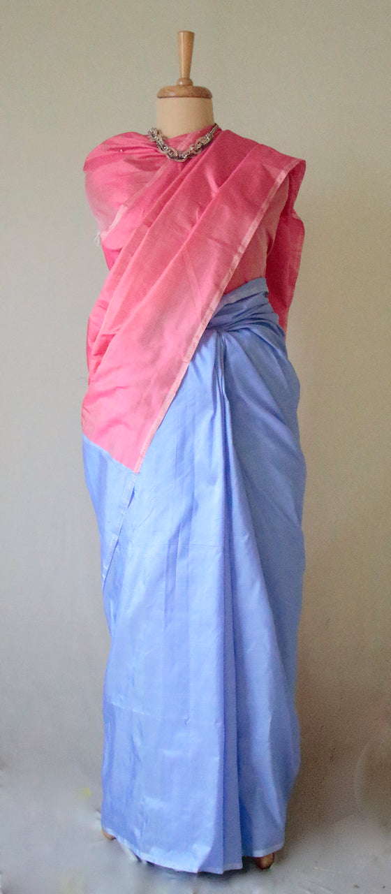 Pink and Blue Contemporary Style Handloom Mulberry Silk Saree from Assam