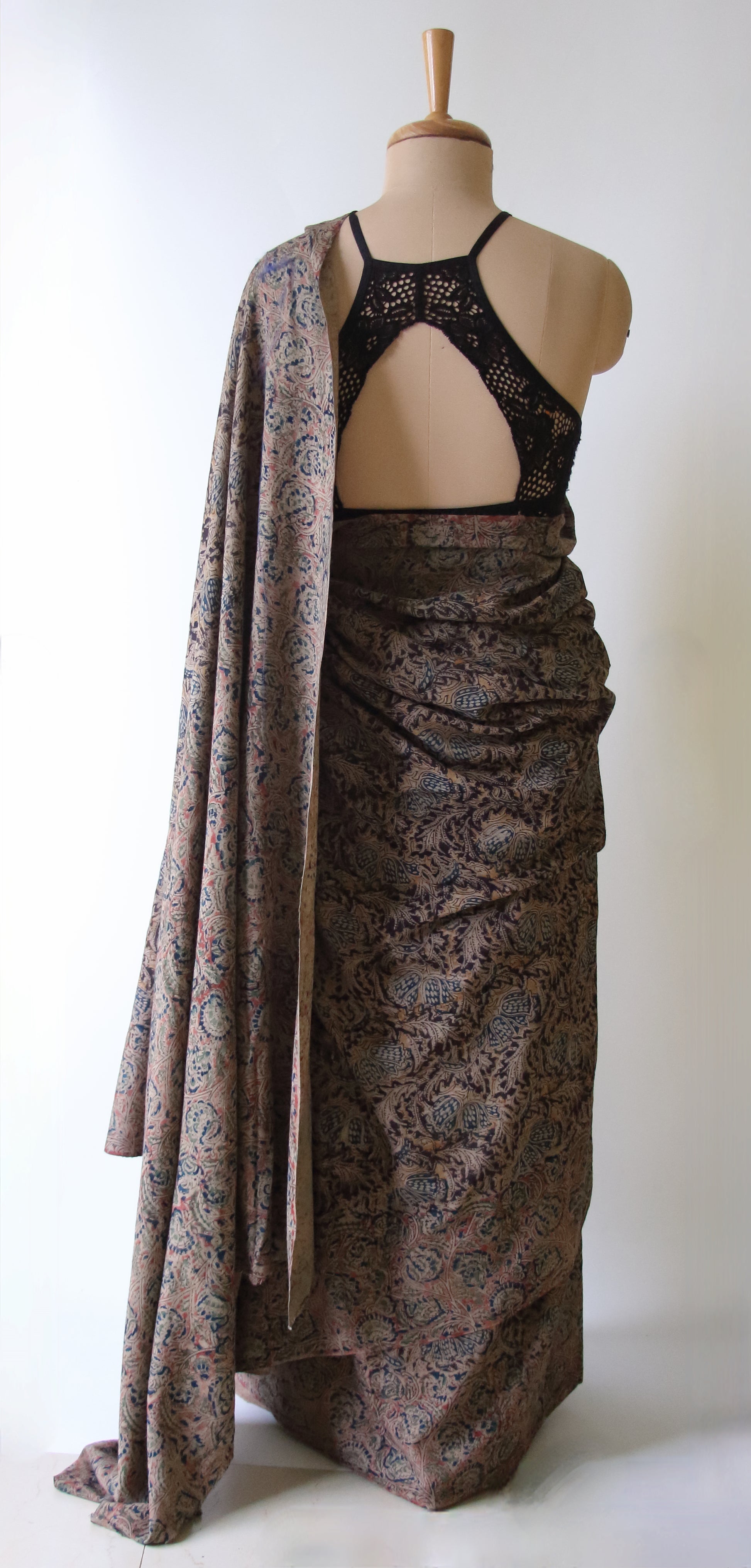 The saree has been woven in Assam on basic traditional looms and Kalamkari done in West Bengal .