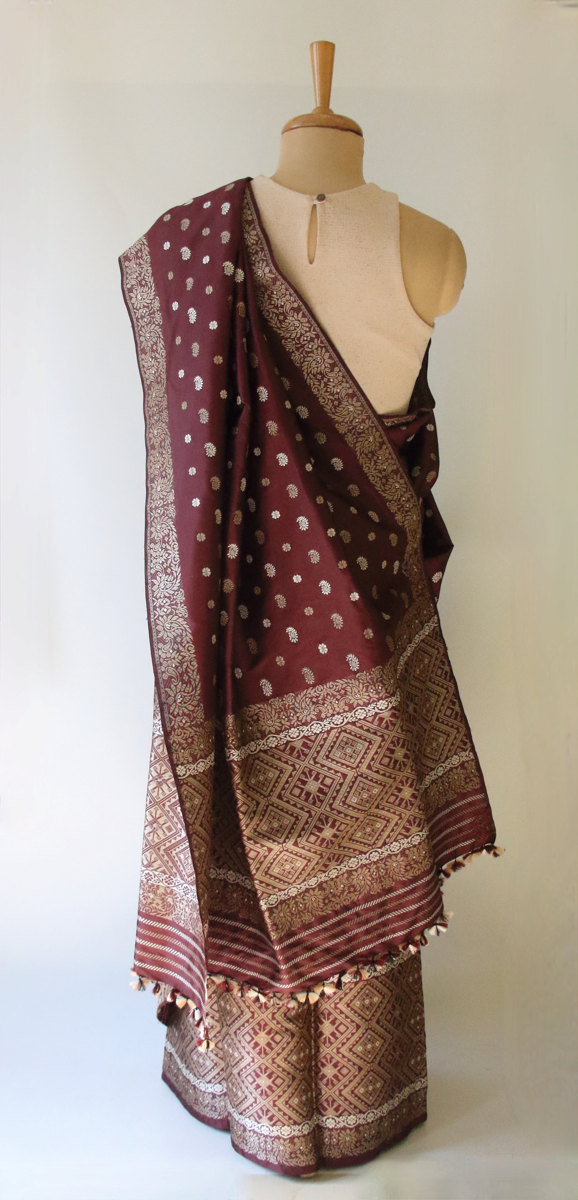 Maroon Natural Dyed Mulberry Silk Mekhla Chador Set from Assam ,