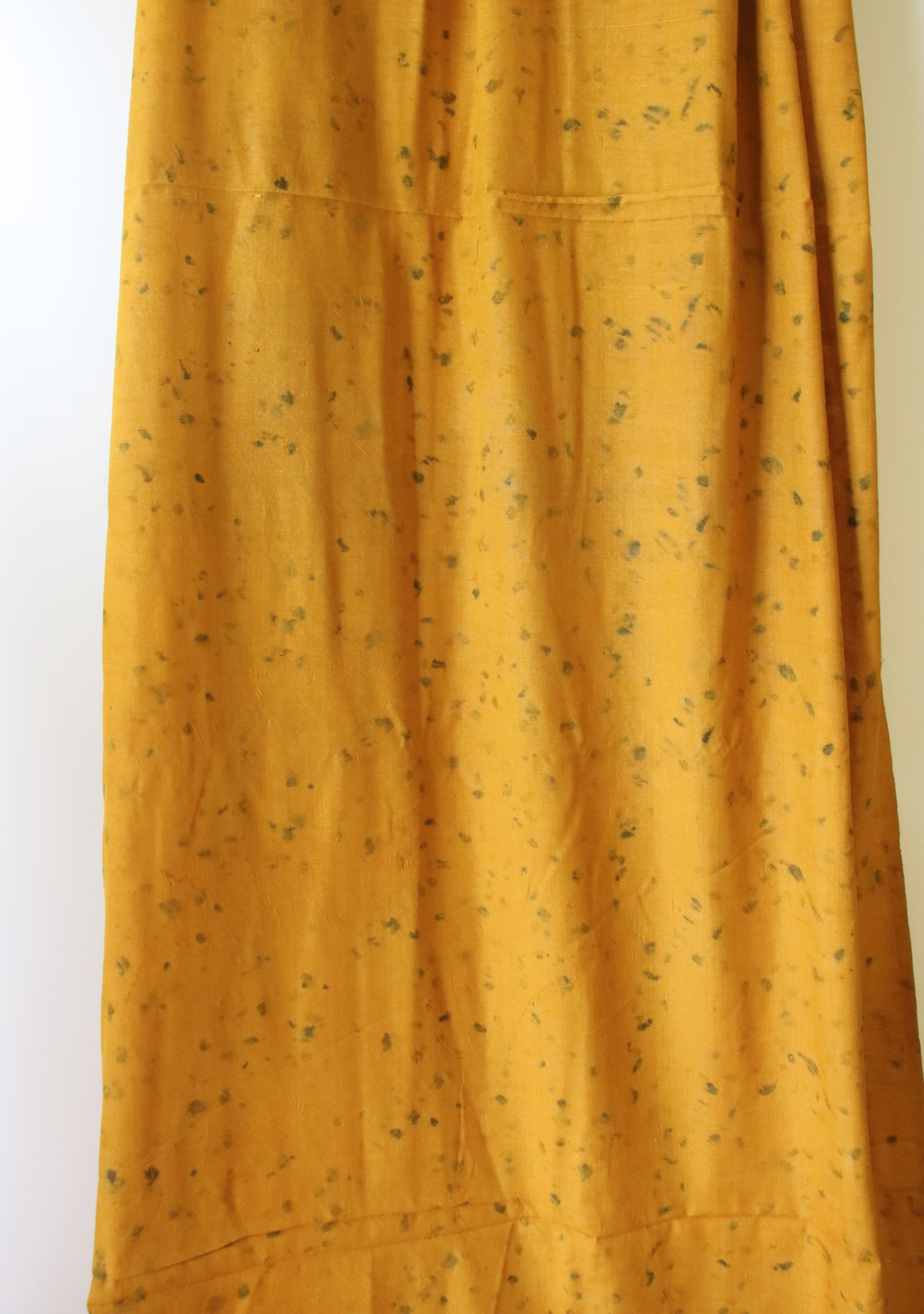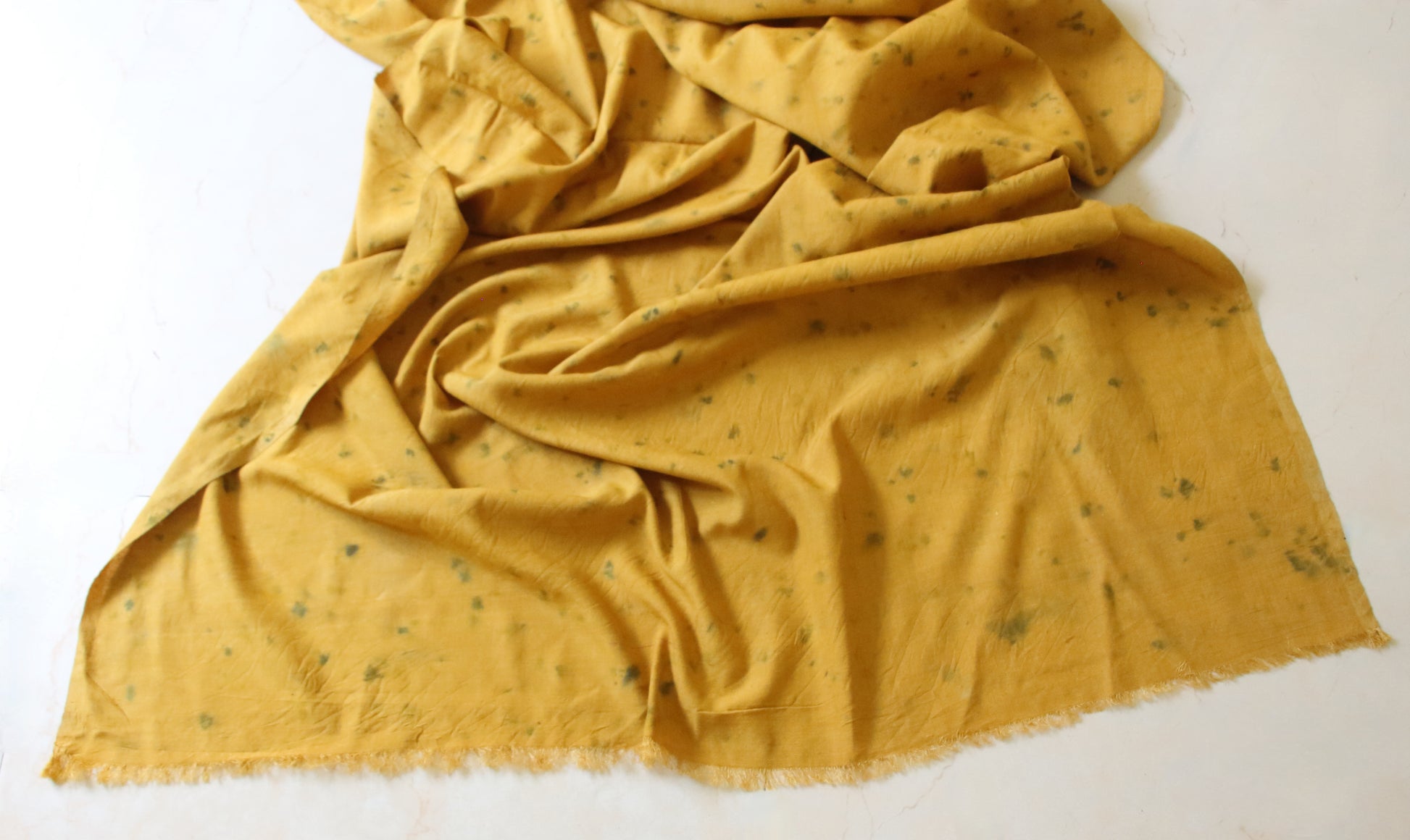 We have used ingredients like Marigold flowers , turmeric , rose petals to achieve the dye and the print.