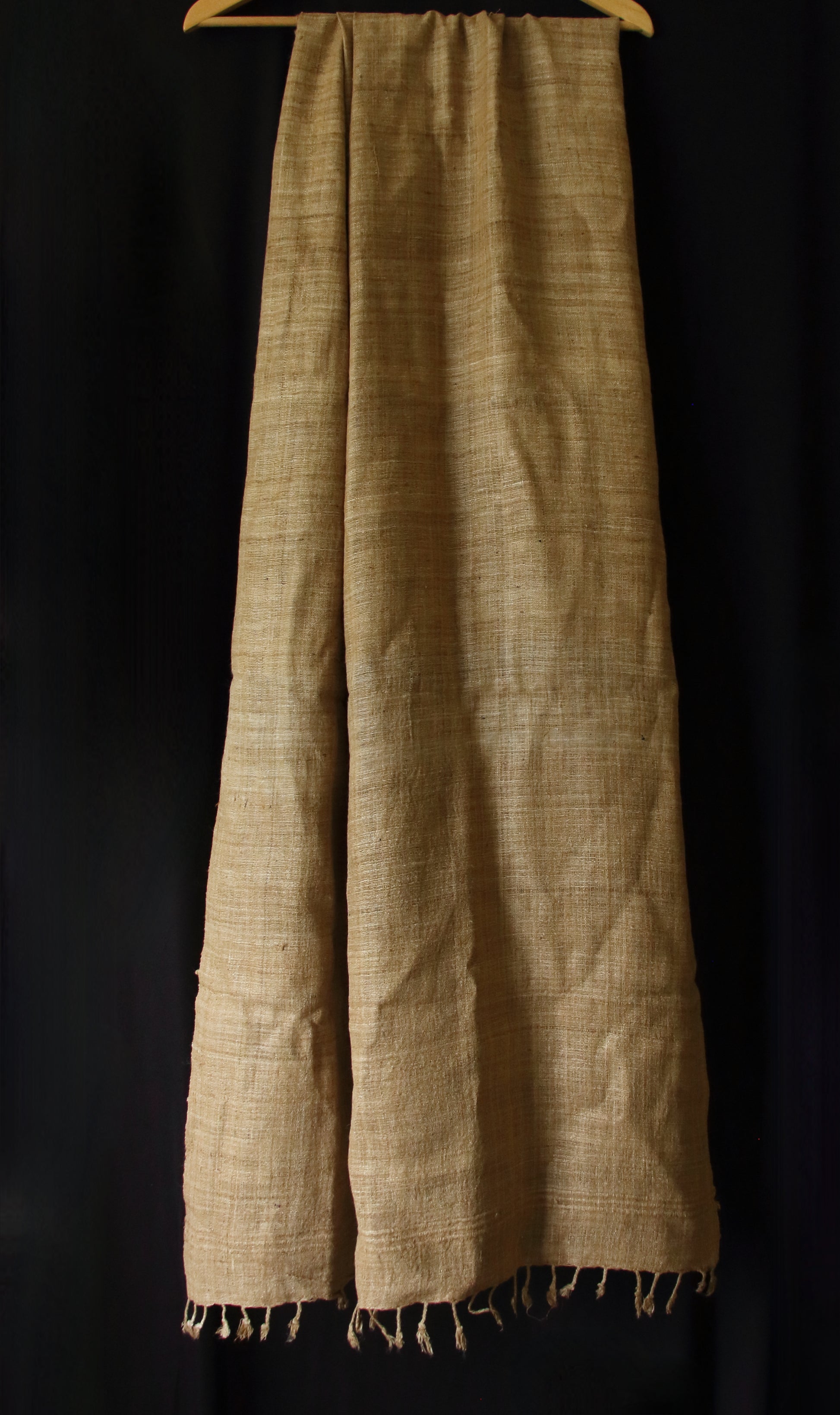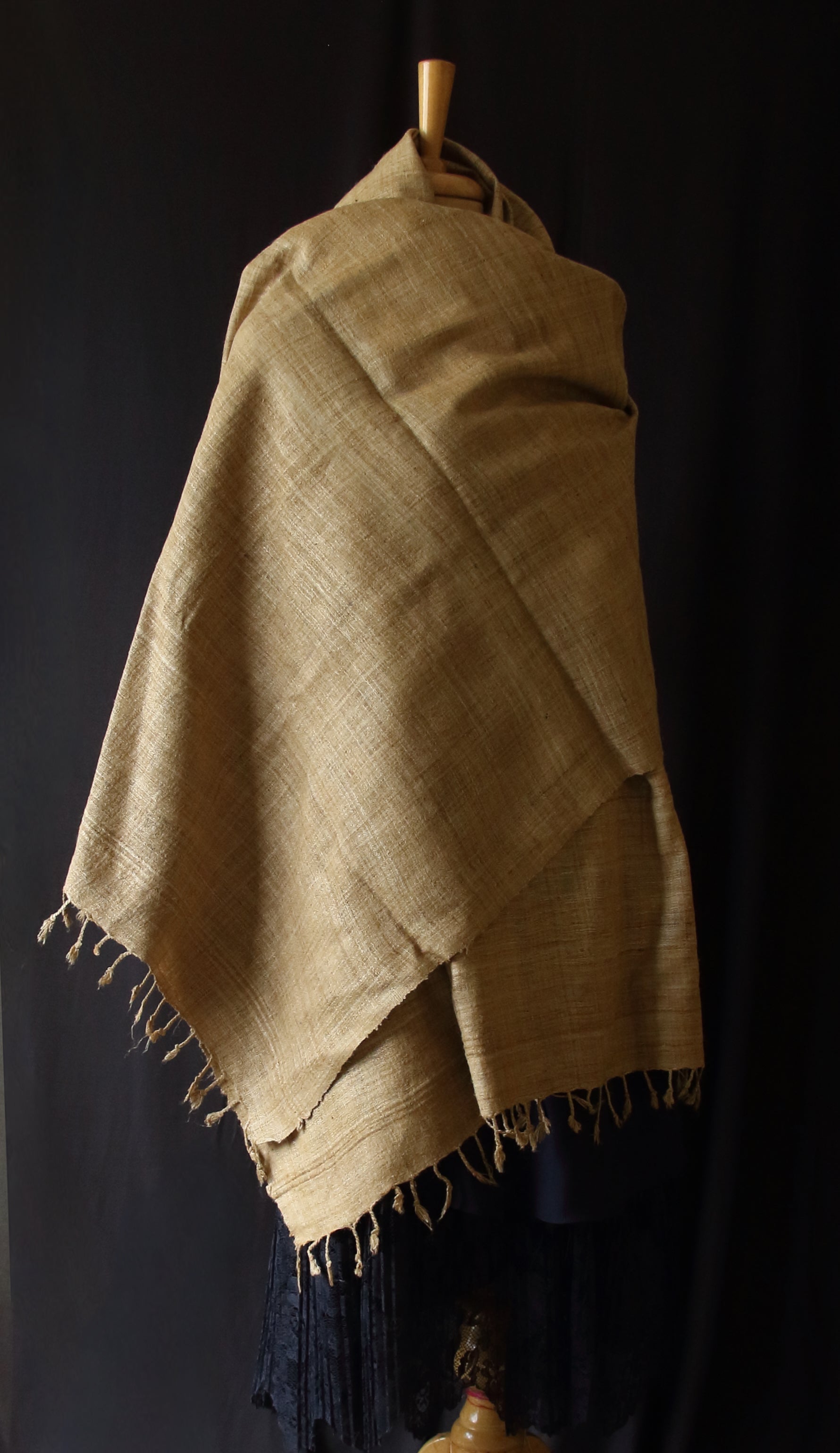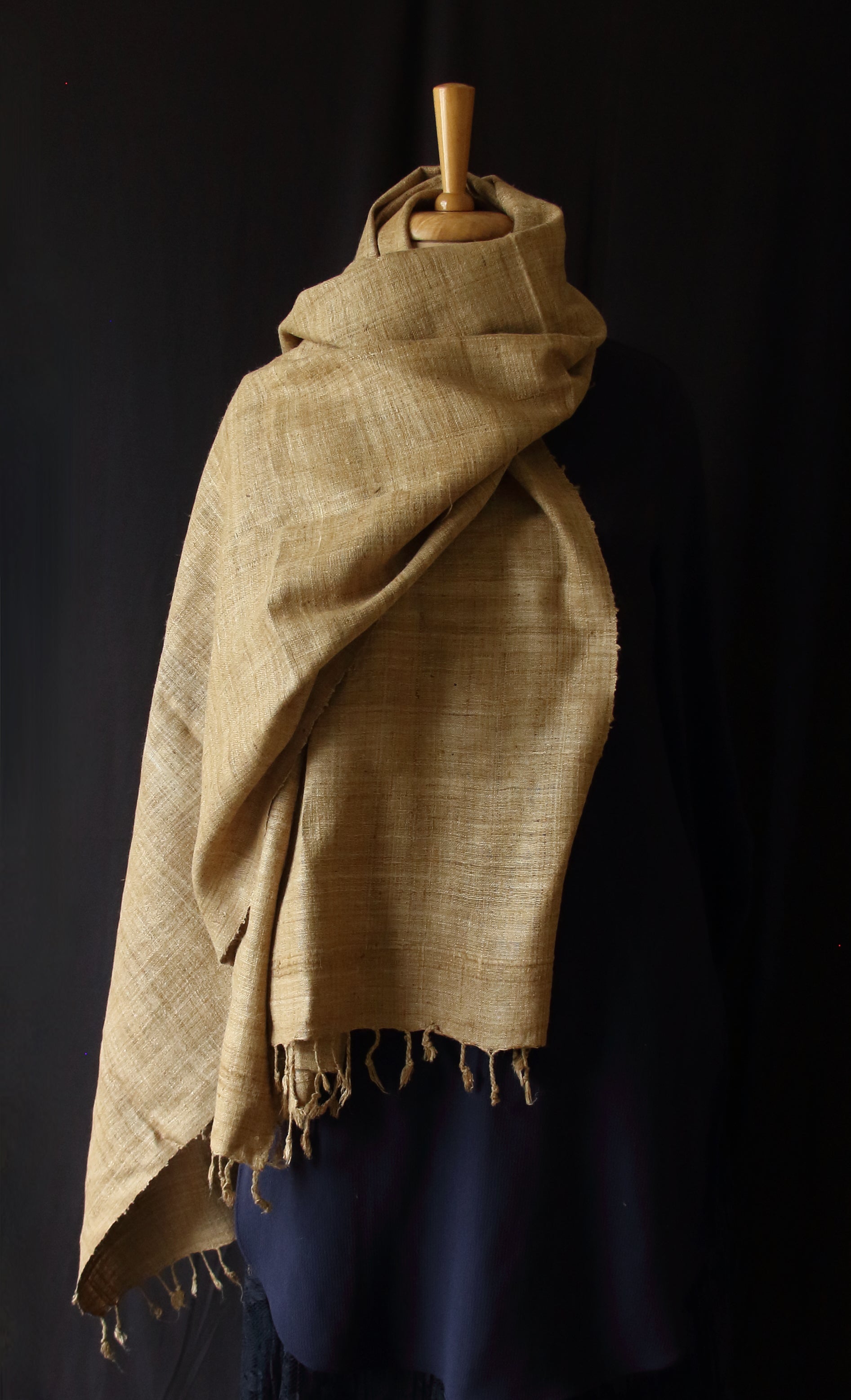 The shawl has blended Muga Ghicha / Cotton yarn in the warp and Muga Ghicha yarns in the weft.