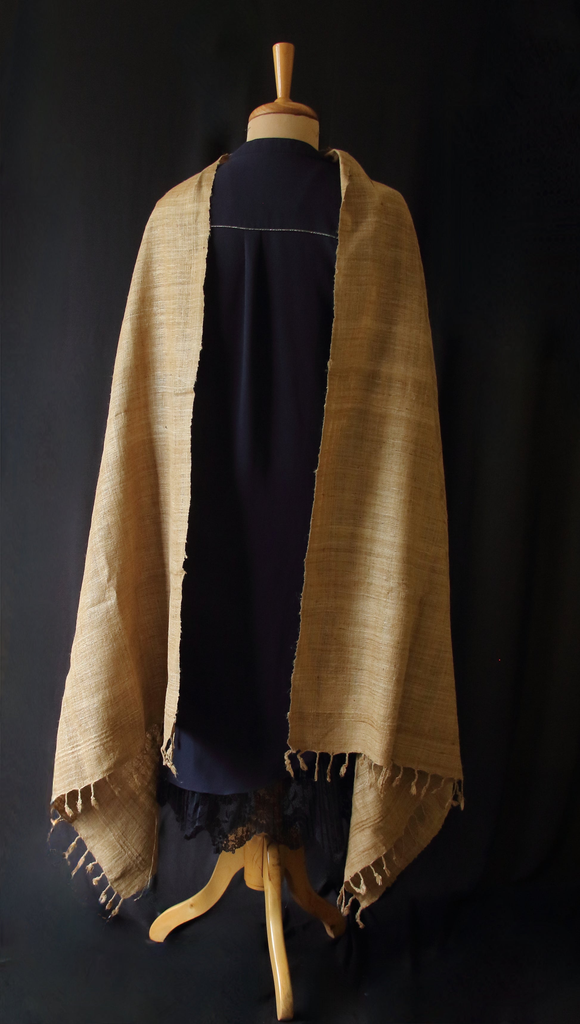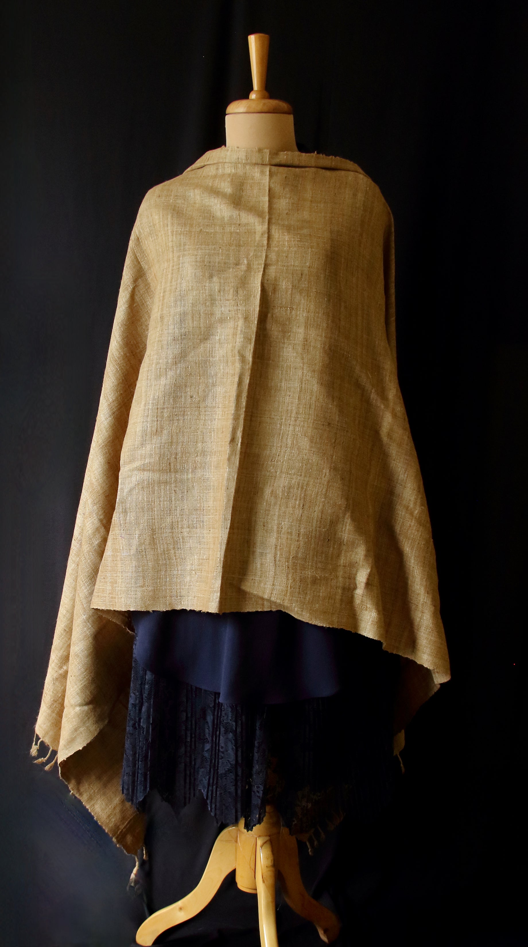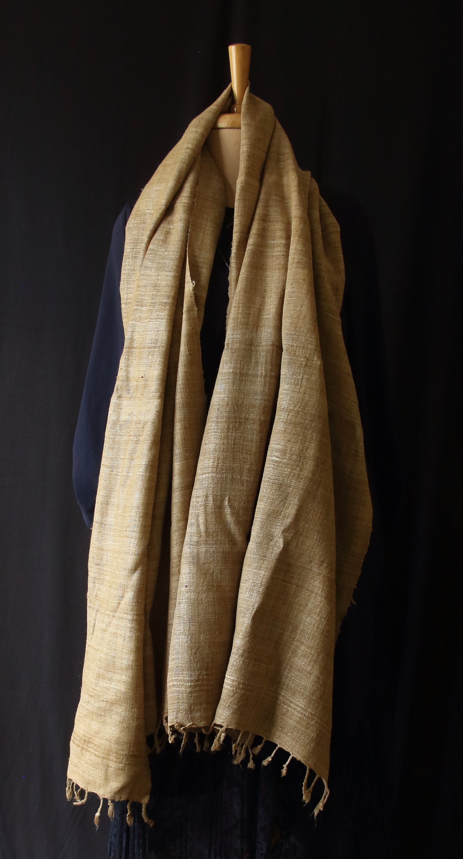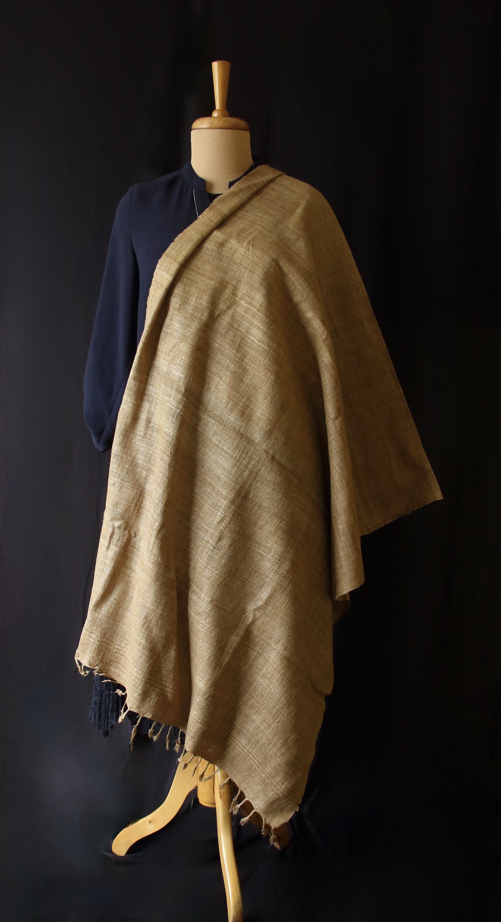 The shawl has blended Muga Ghicha / Cotton yarn in the warp and Muga Ghicha yarns in the weft.