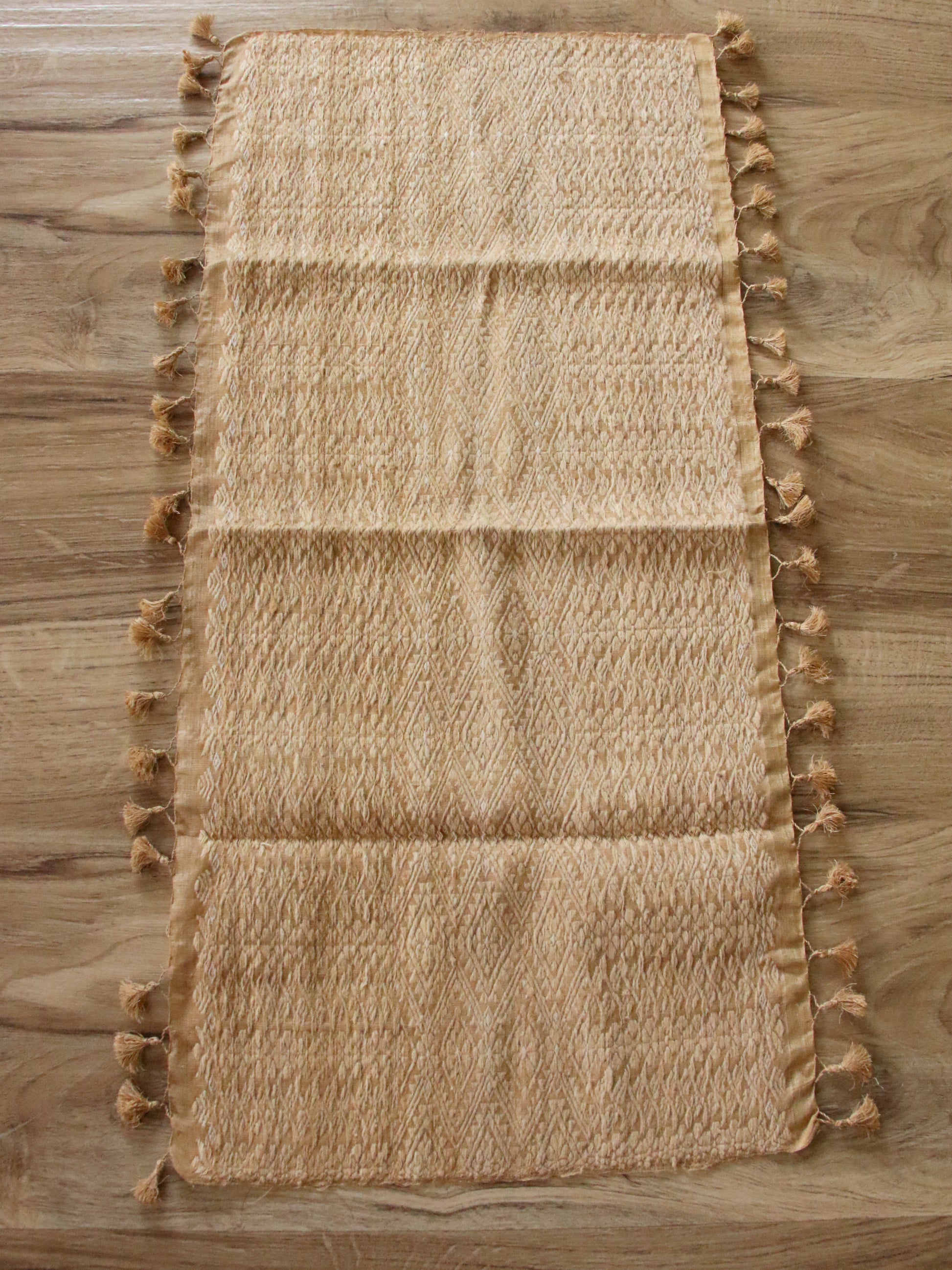 The yarn produces is a natural rich golden yellow or light brown colour depending on  the host plant it feeds on. These are unique products. Muga silks resist sunshine and are more durable than mulberry silks.