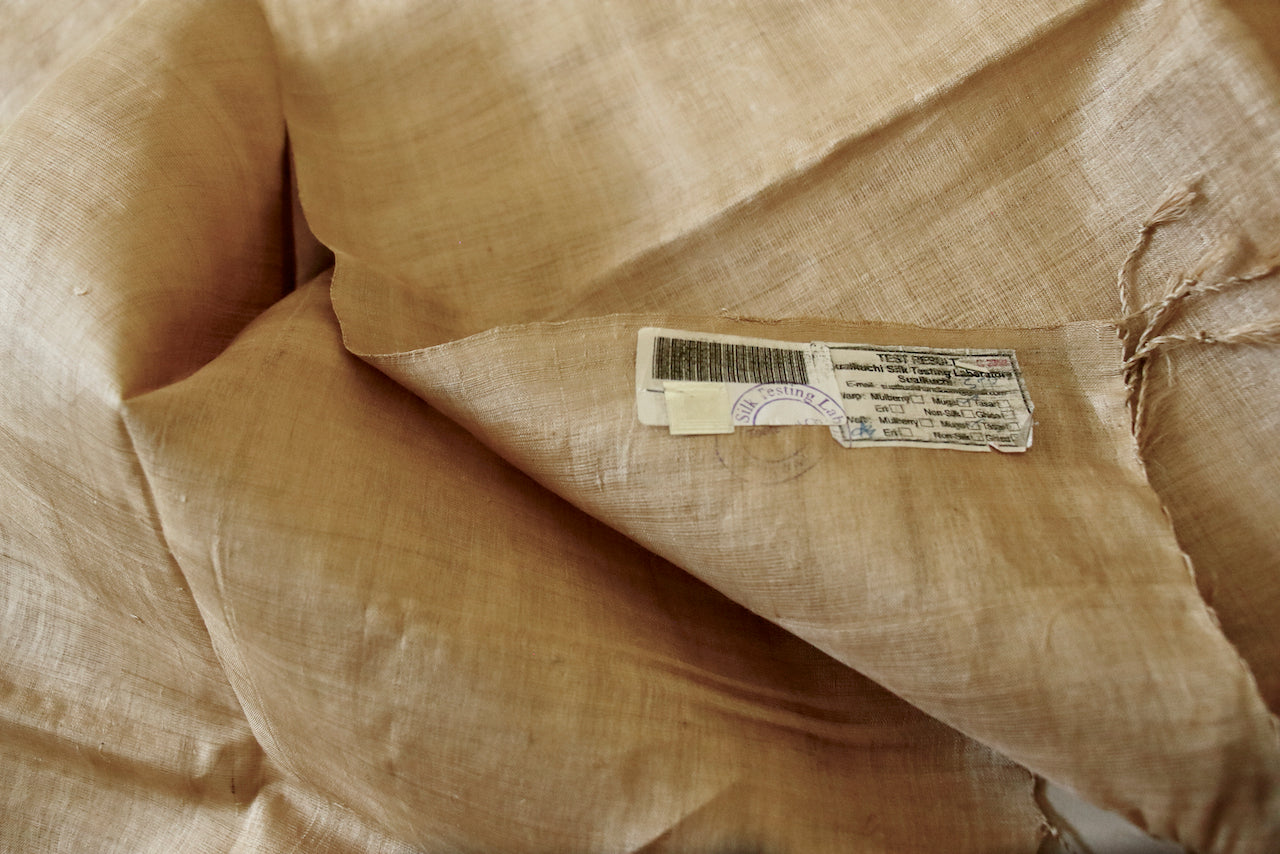 Muga Silk - The most valued silk from India. Almost exclusively reared and produced in Assam, India. It is indigenous to the Brahmaputra Valley and assiduously practiced in the districts of Assam. The moth is basically a wild moth. Hence it is categorised as Vanya Silk or Wild silk by the silk board of India.(http://csb.gov.in/silk-sericulture/silk/vanya-silk/)