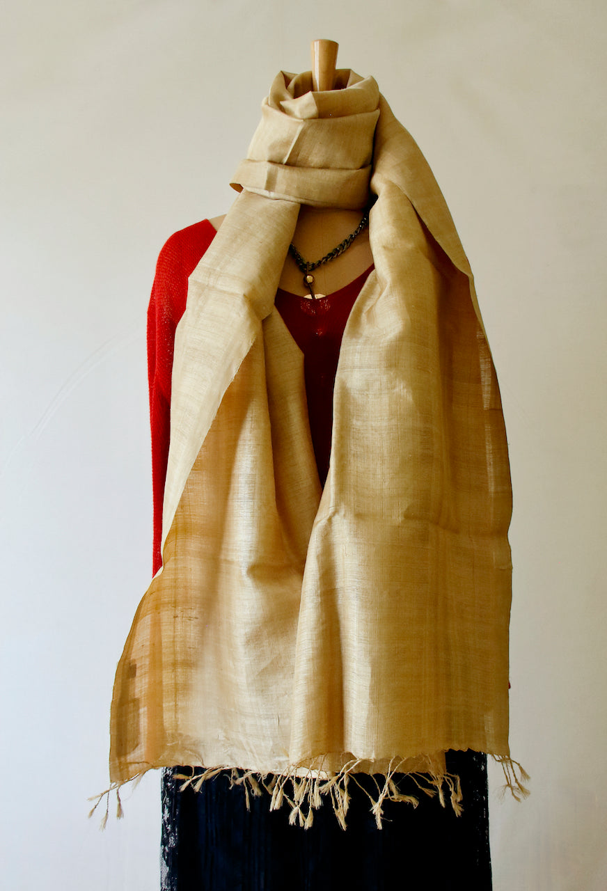 Hundred Percent Handwoven Muga Silk / Golden Silk Stole from Assam