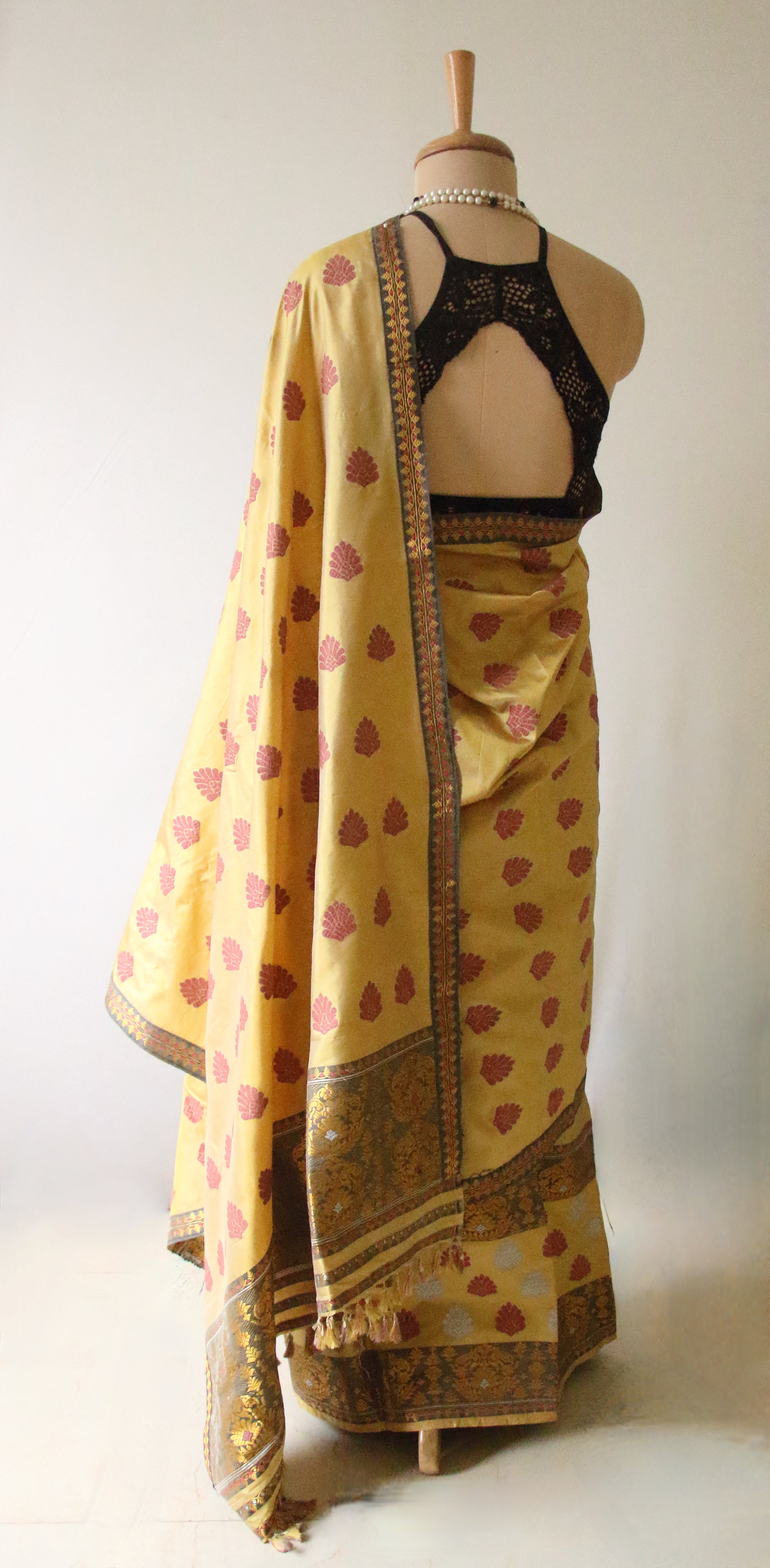 Mud Yellow Colour Mulberry Silk Mekhela Chador Set
