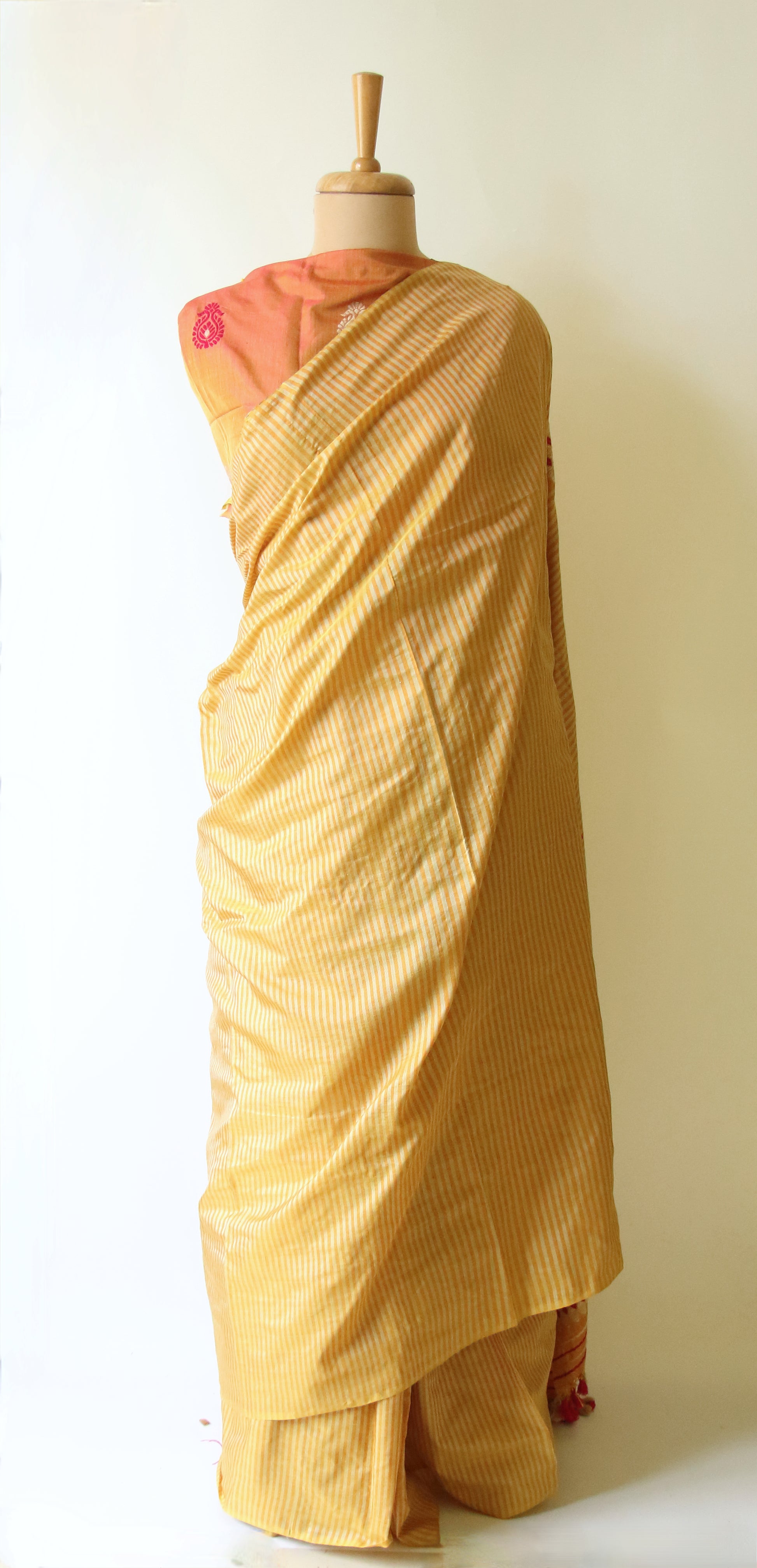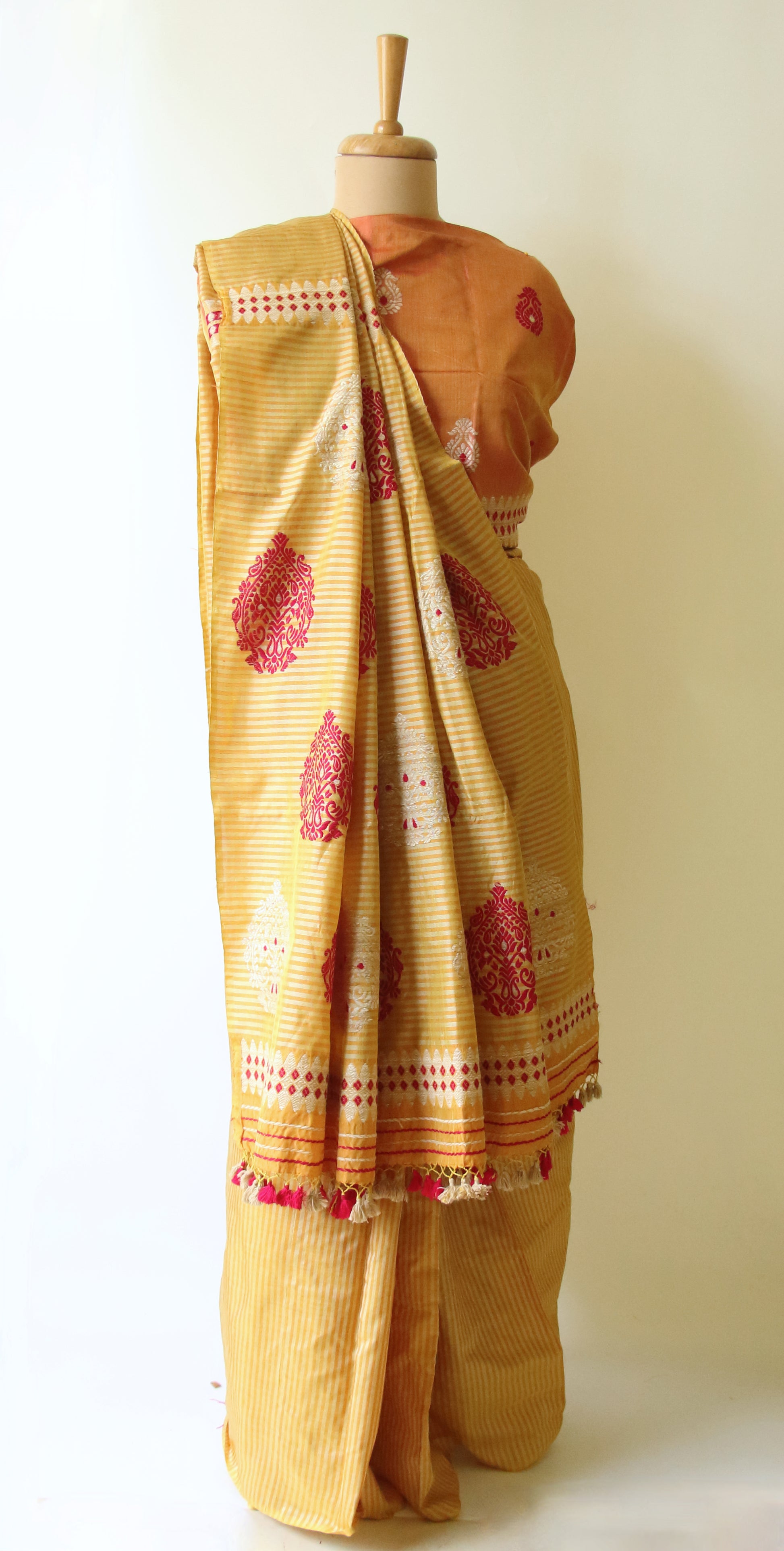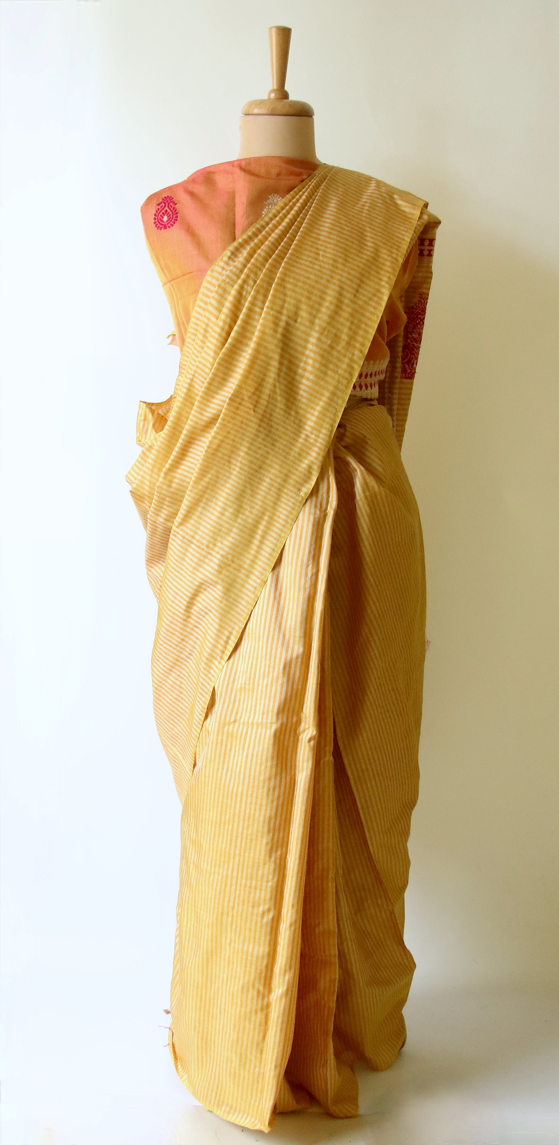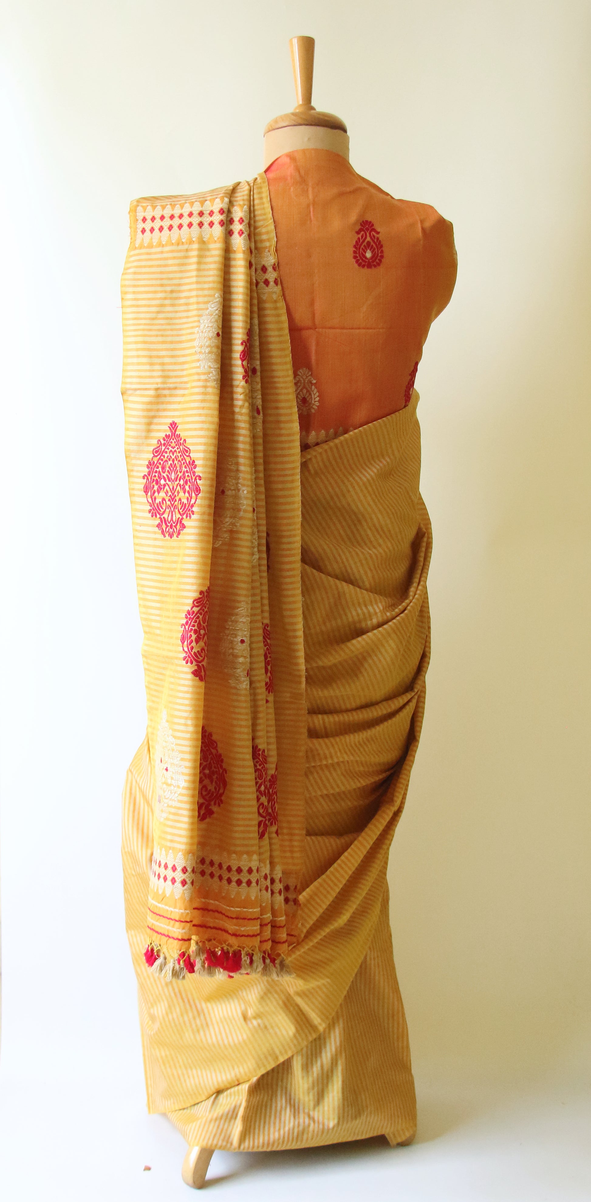 Orange Yellow Handloom Modal by Silk Saree from Assam