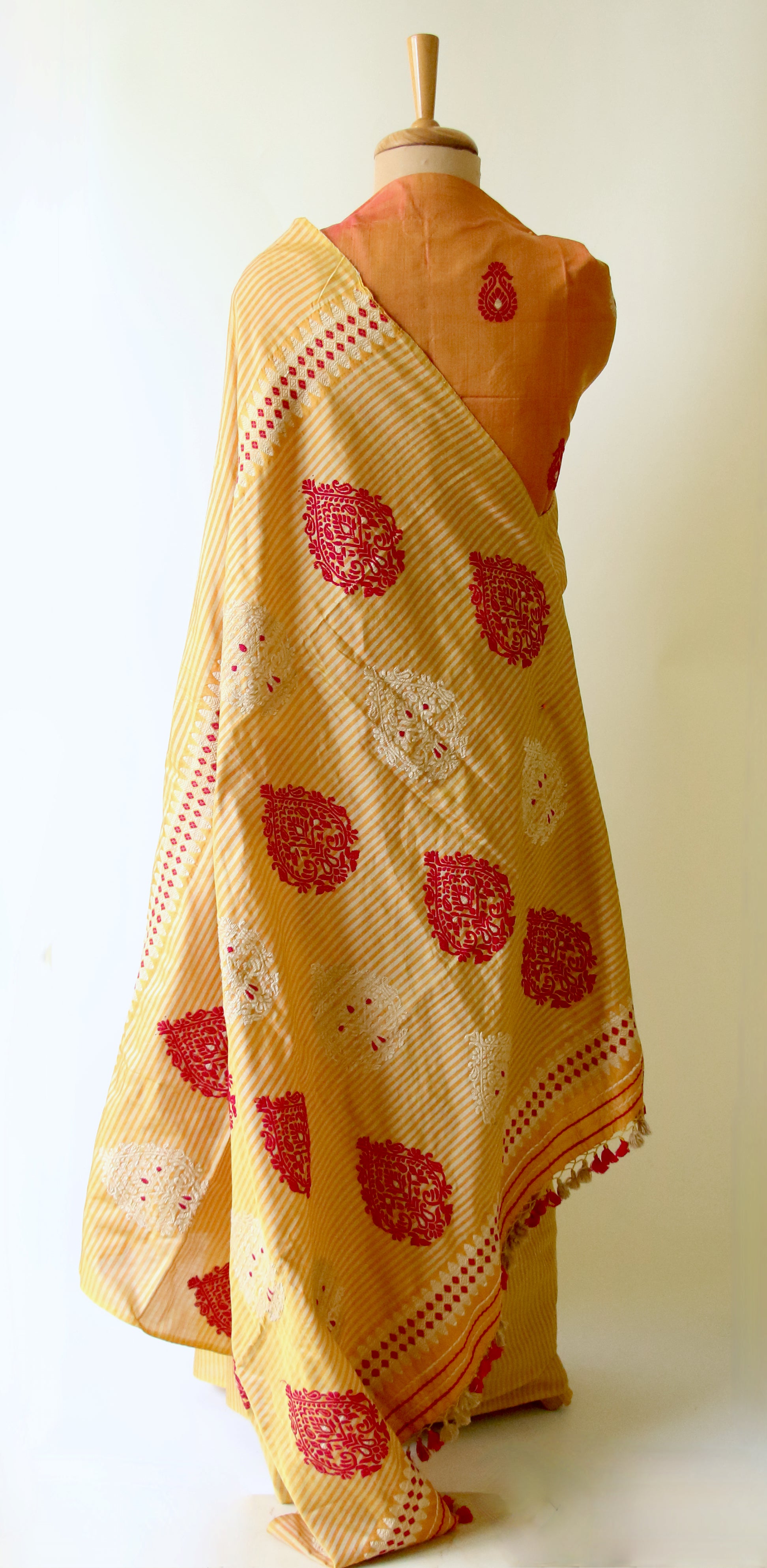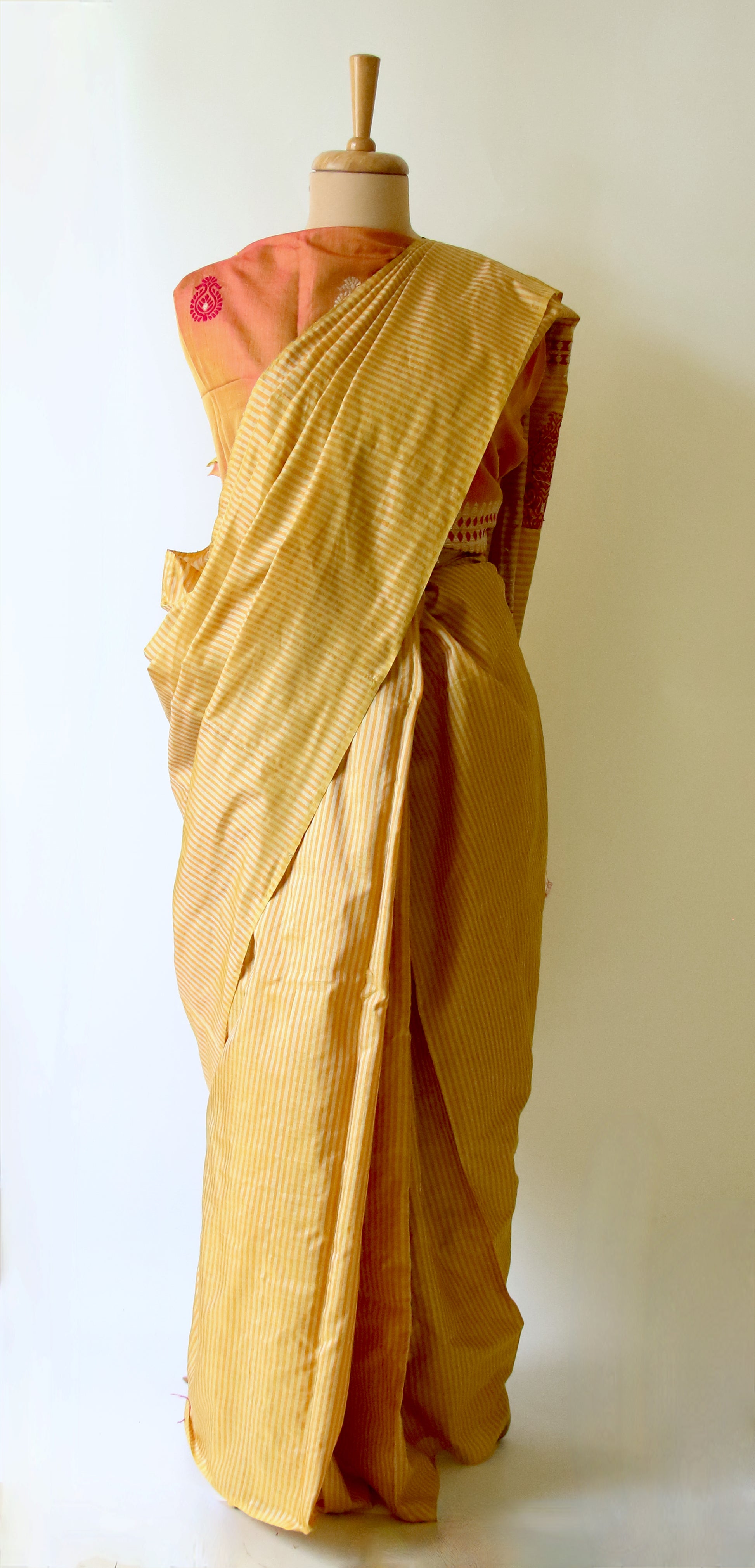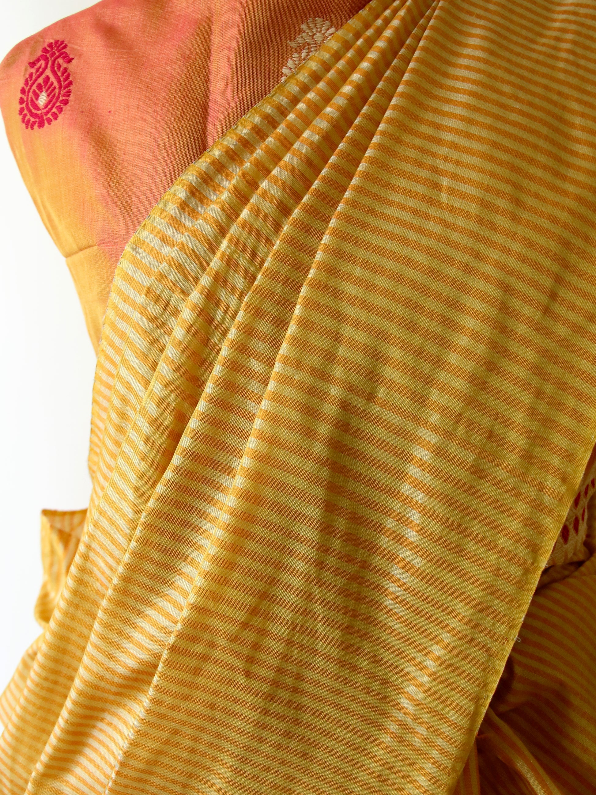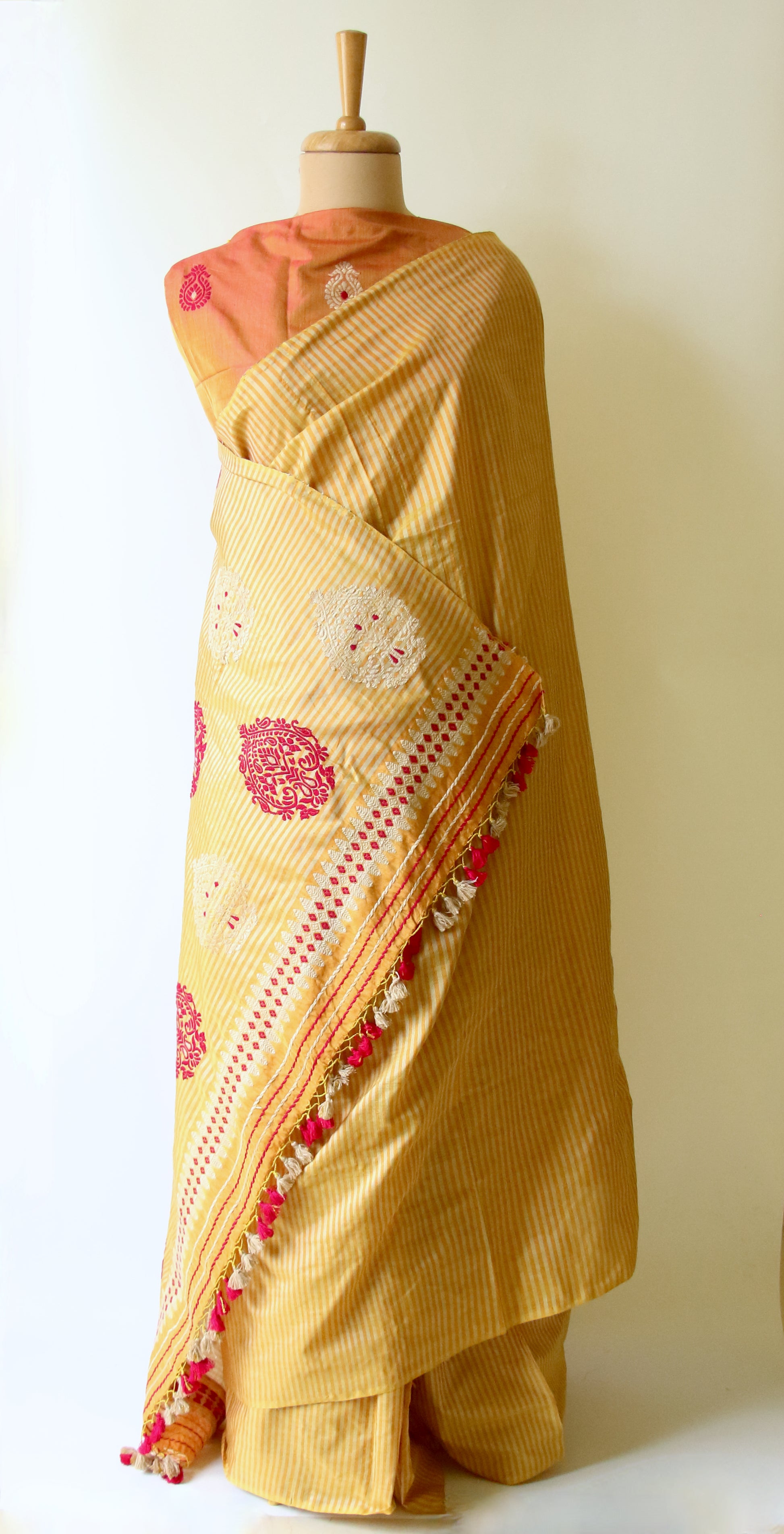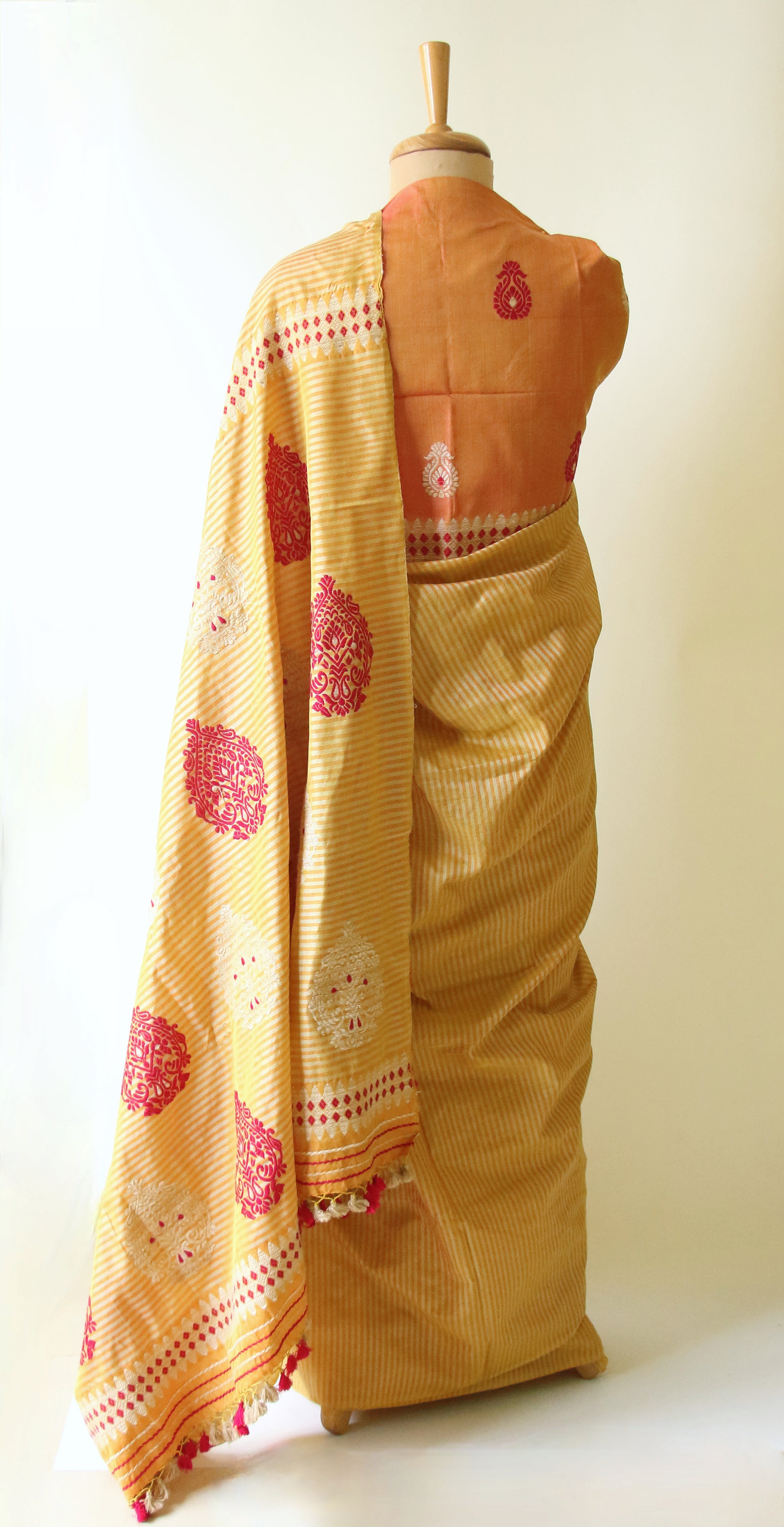 Orange Yellow Handloom Modal by Silk Saree from Assam