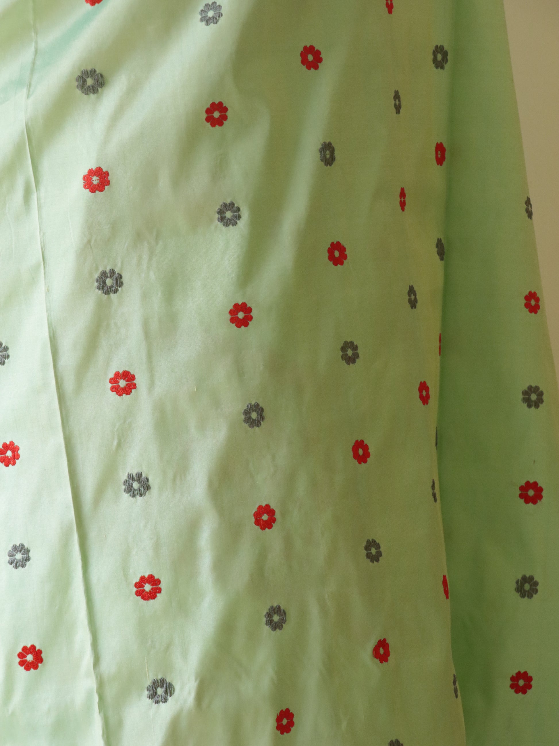 The Mekhla and Chador is a  traditional 2 piece dress from the North East State of Assam, India . The Mekhla is appx a 2 .5 meters by 36 Inches fabric , which is used as a lower wrap / skirt by Assamese Women. The Warp will have pleats when worn. The top part or 'chadar ' is a shawl or half -sari which is used to cover the upper portion of the body and is worn on top of the mekhla or wrap. The usual size is 3 Meters long and about 36 inches in width.