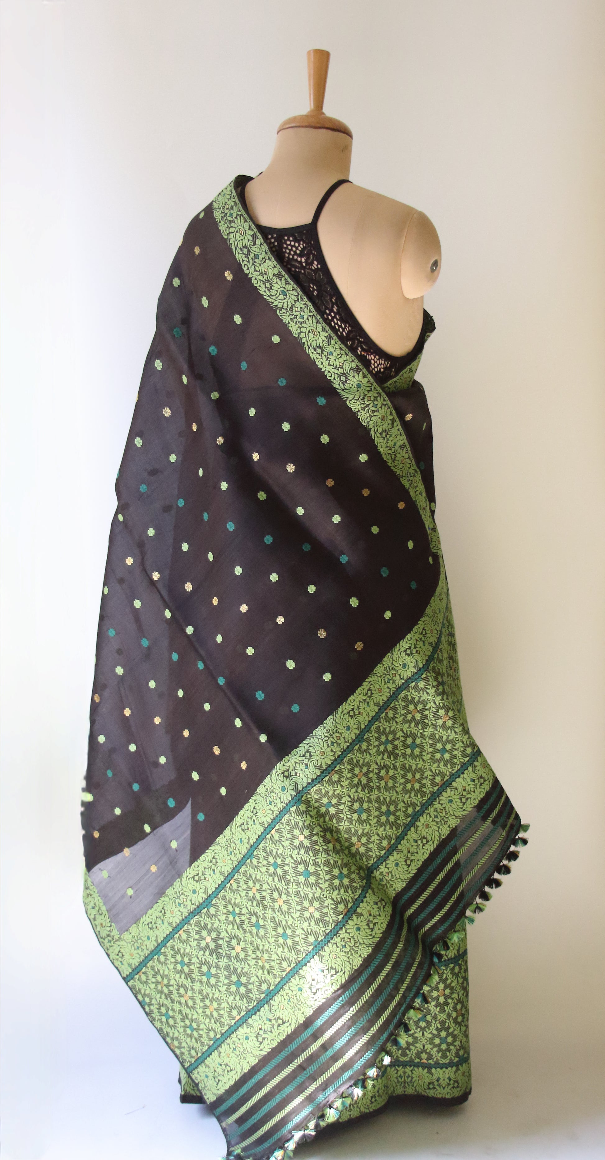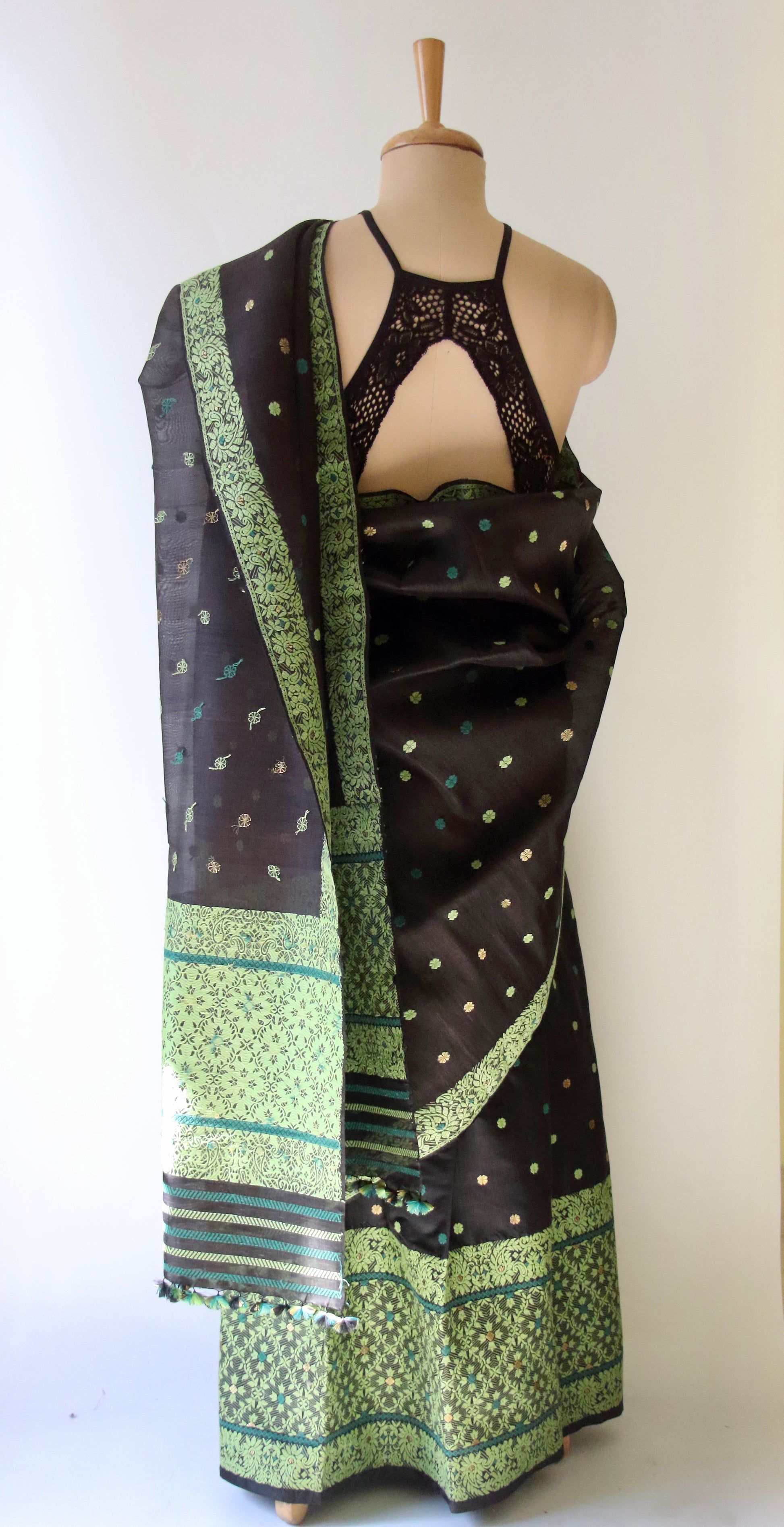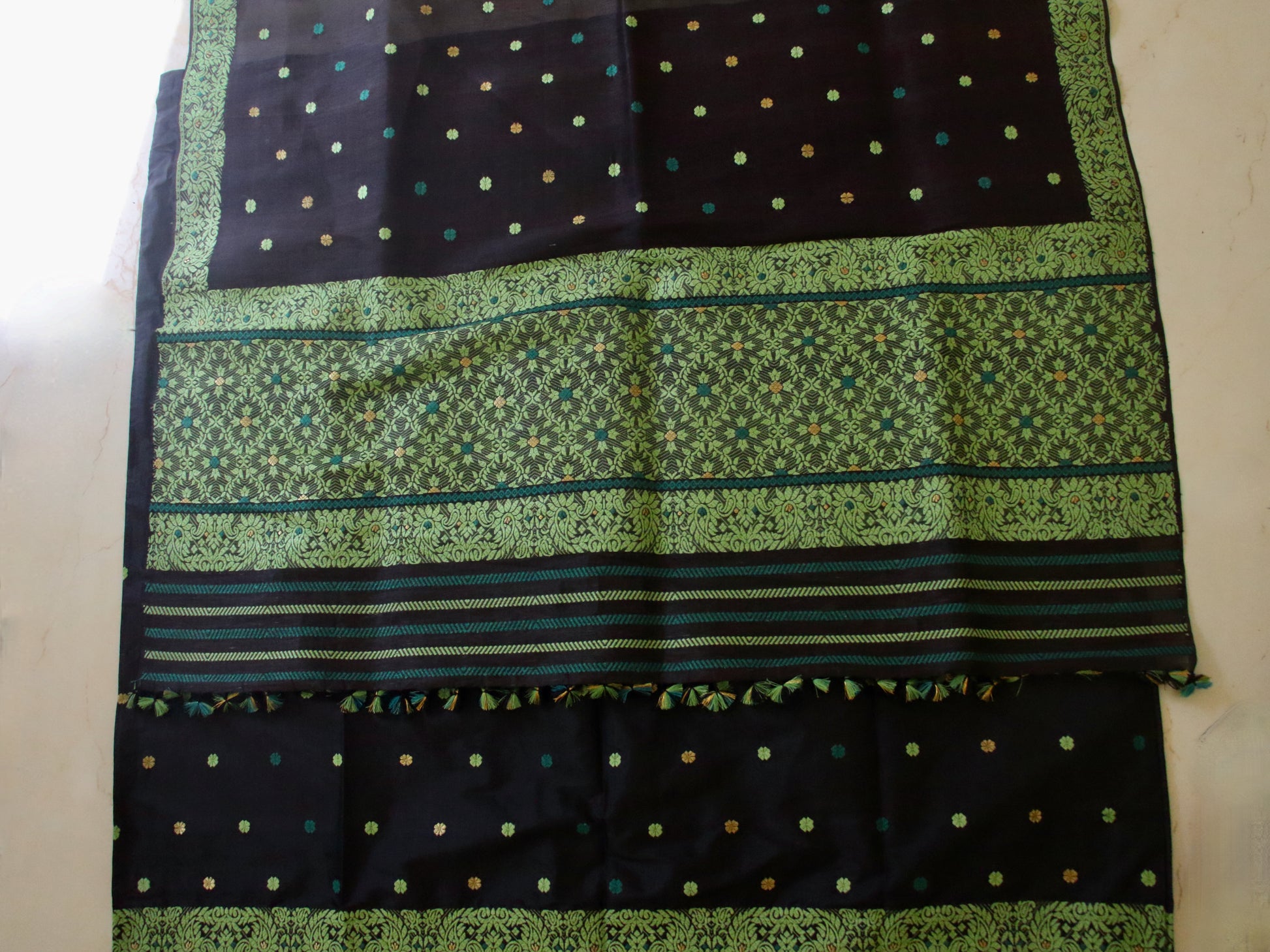 Black Traditional 3 Pc Mekhela Chador Set woven in our looms in Assam .