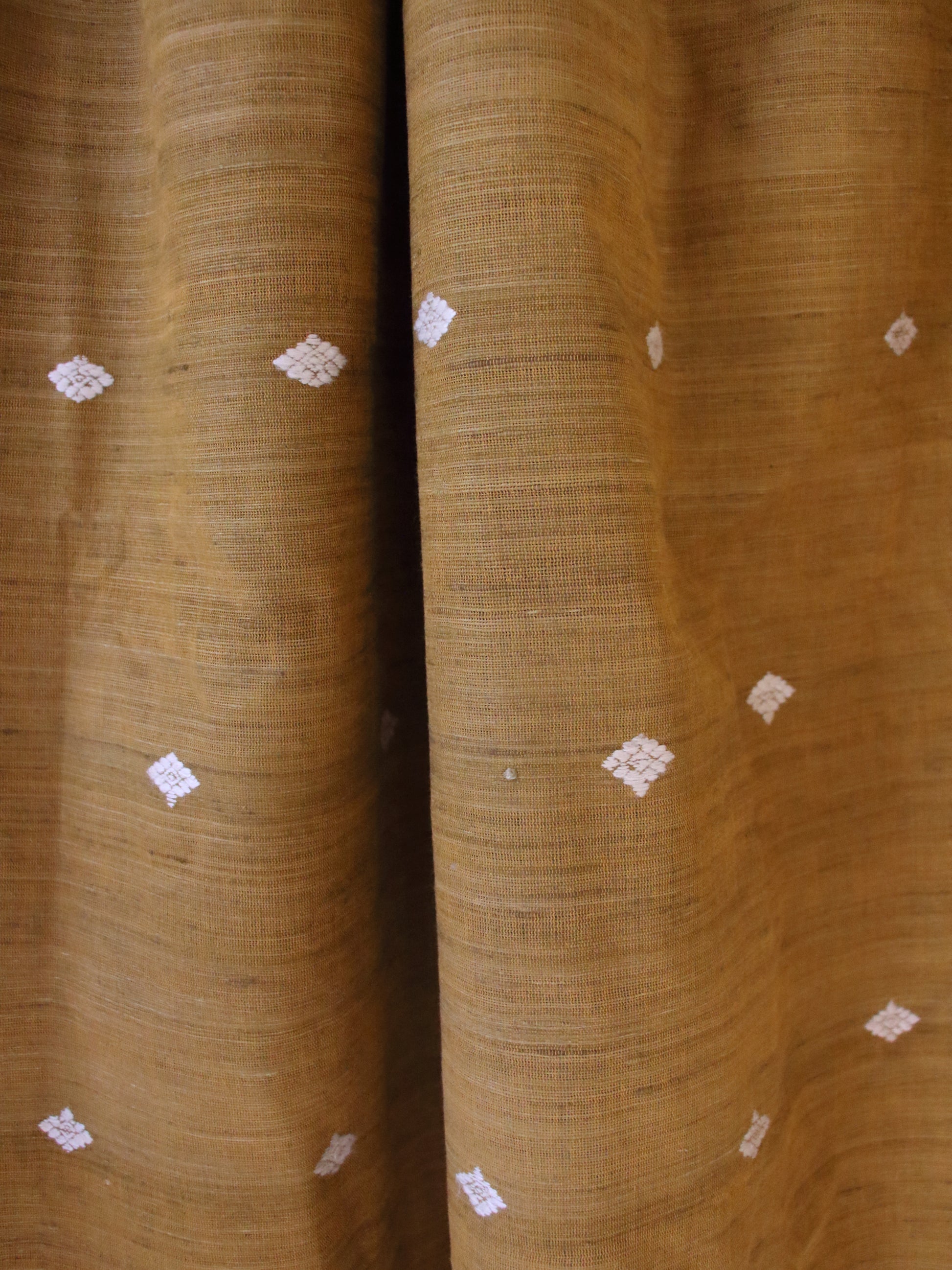 Unlike other silks, Eri Silk does not have any bright sheen. The presence of hand spun yarns gives the shawl a very unique texture . There will be surface unevenness and slight dry texture . The colour is also uneven because the hand spun yarns are never uniform in fineness or thickness .