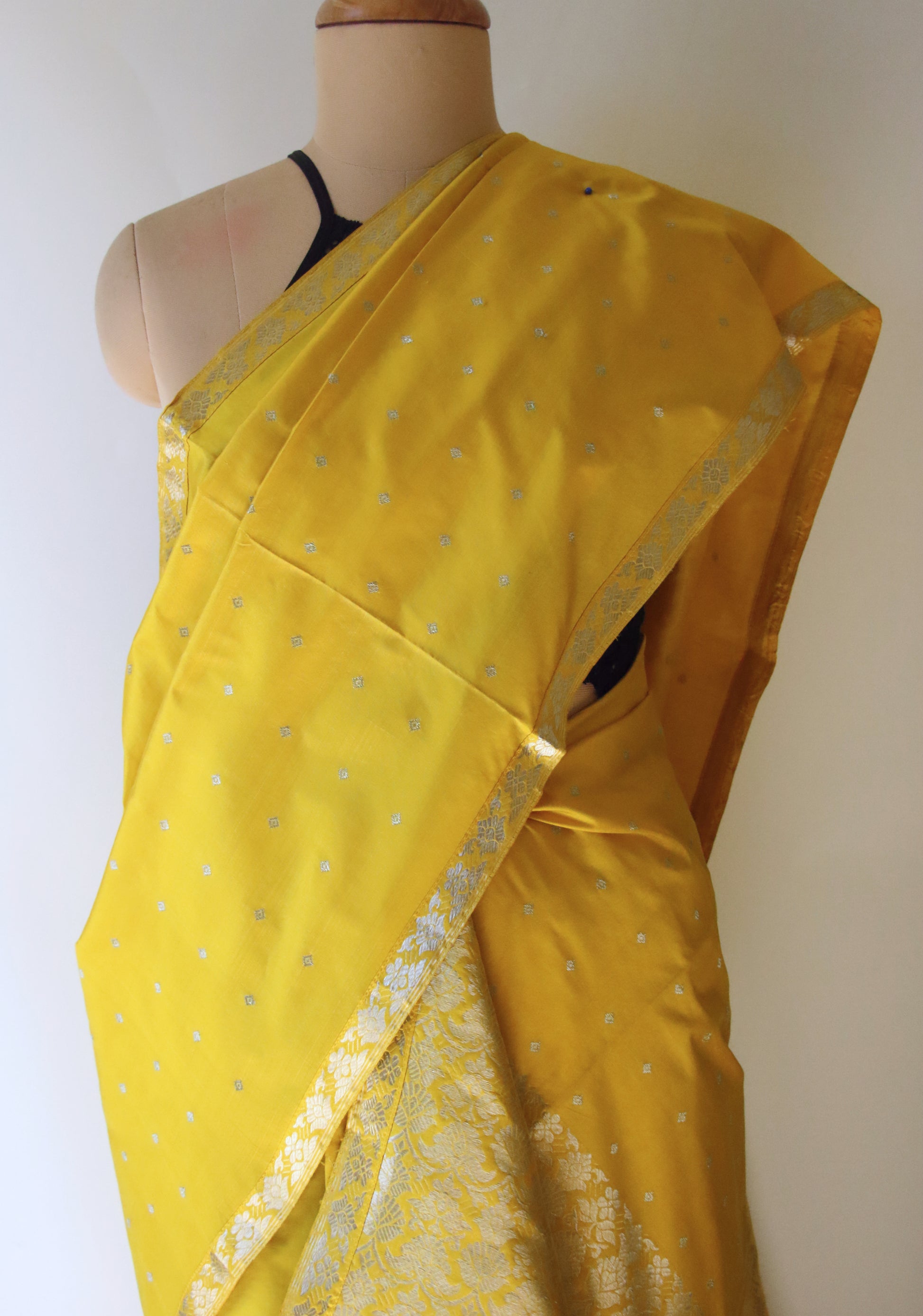 Lemon Yellow Mulberry Silk Traditional Mekhla Chador Set