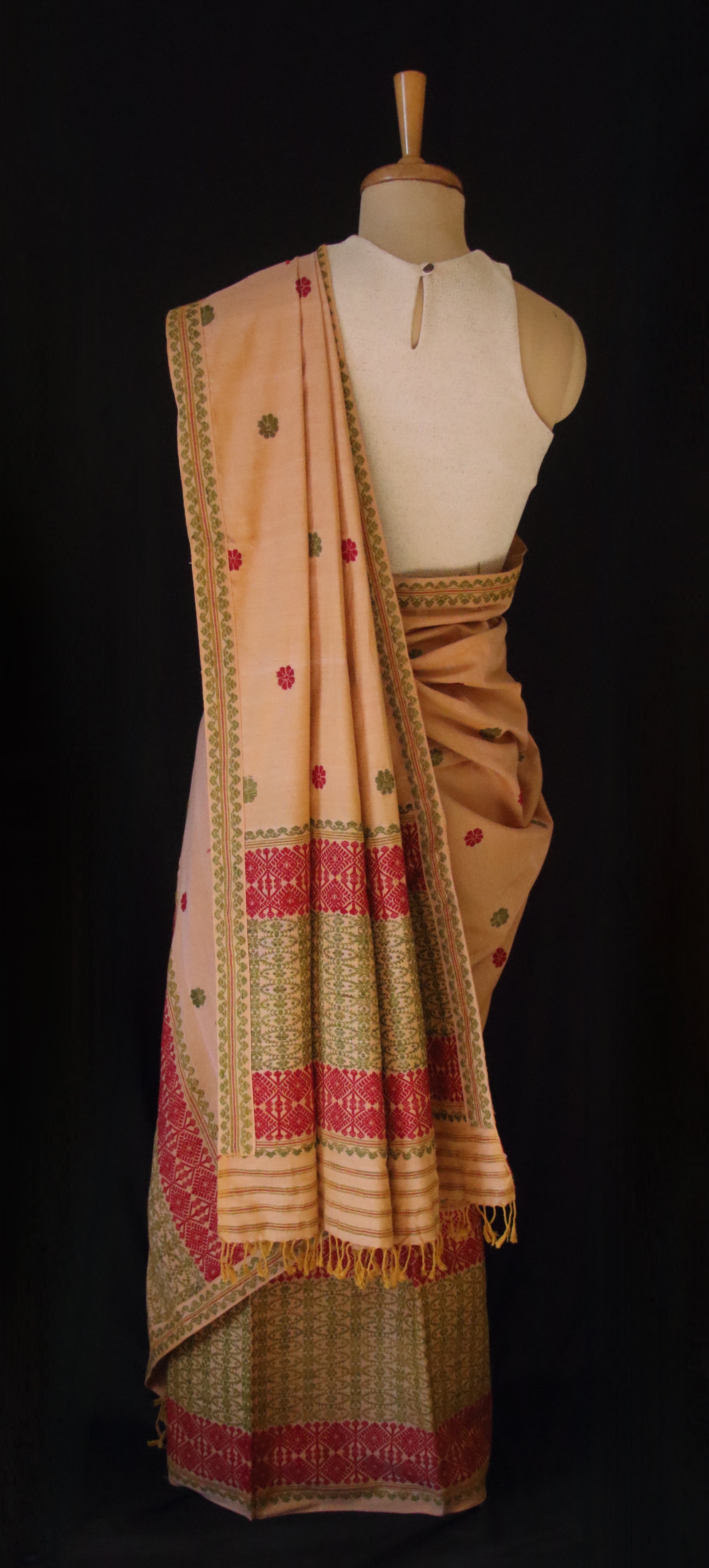 Natural Dyed Cotton Handloom Mekhela Chador Set from Assam