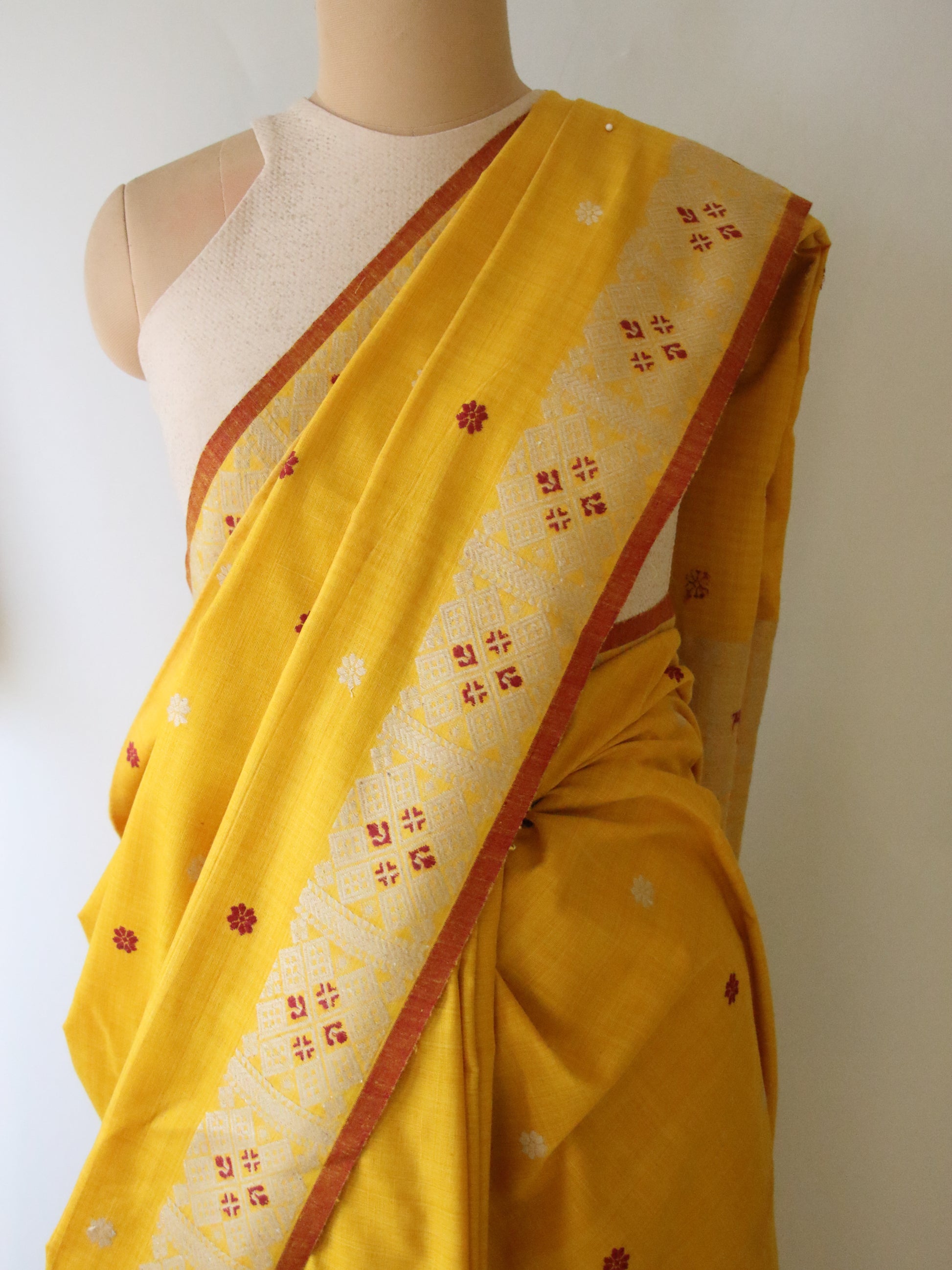 Natural Dyed Yellow Handloom Eri Silk Sari from Assam