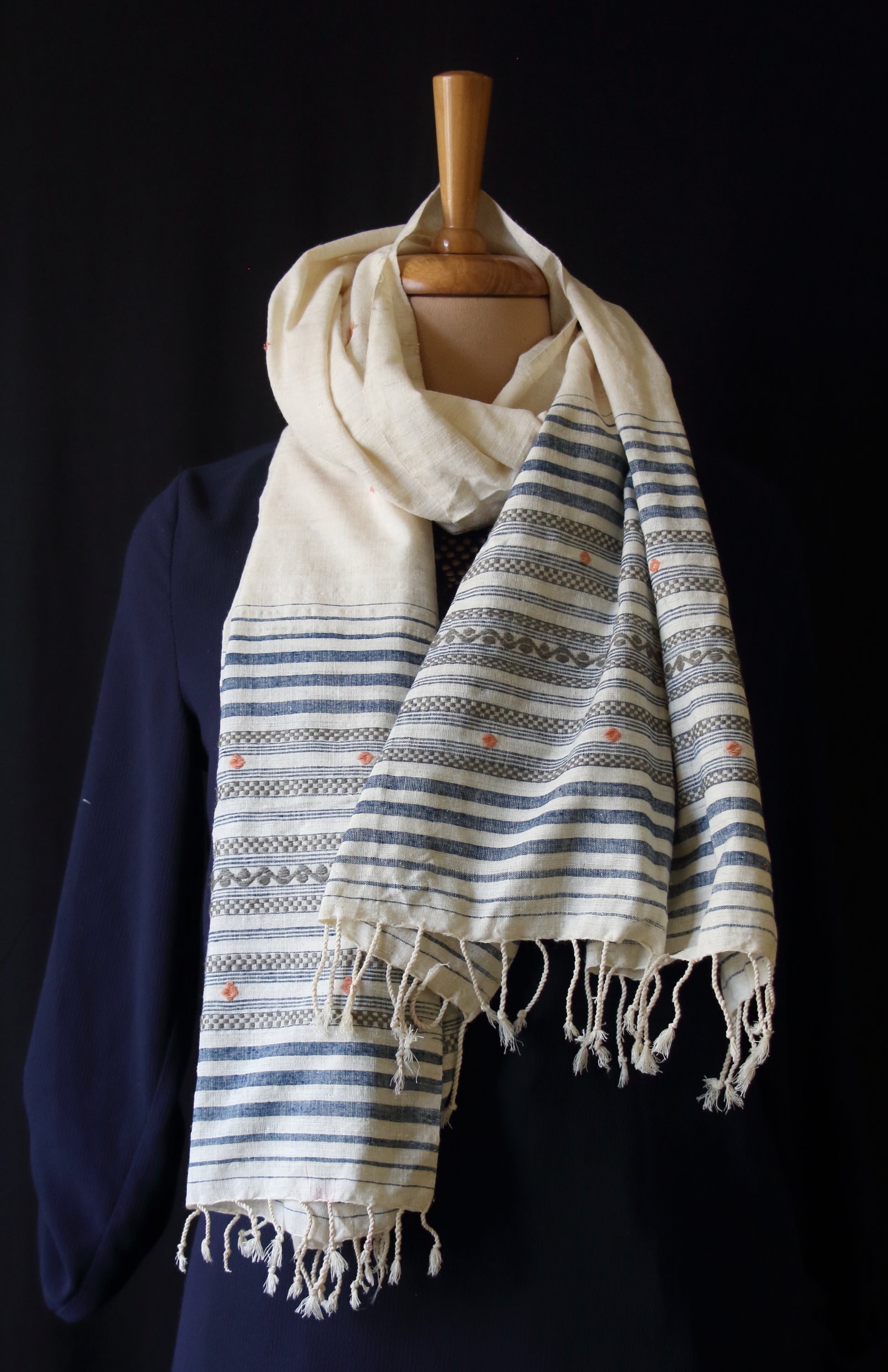 Natural Off White colour Eri Silk Handwoven Scarf from Assam
