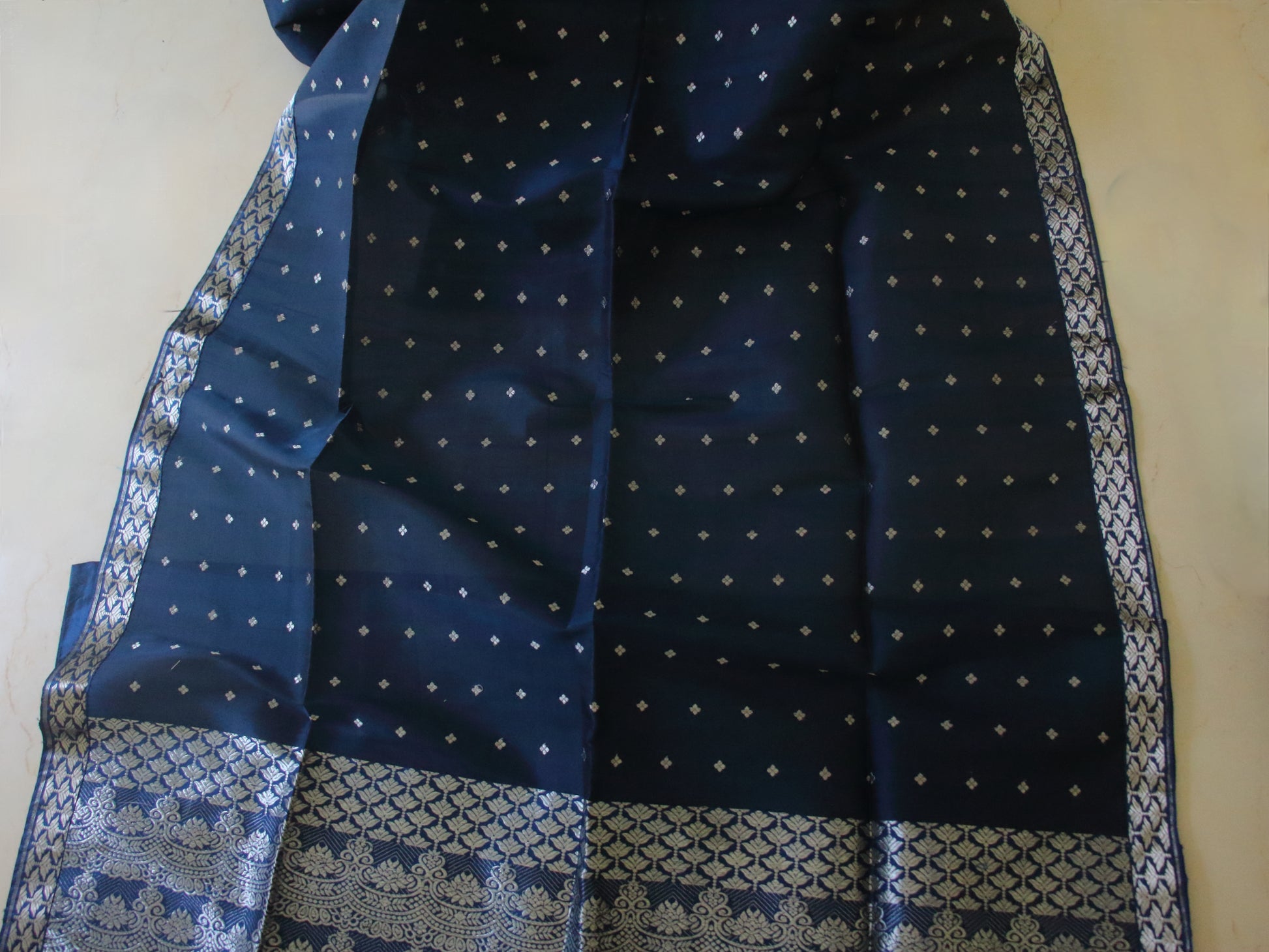 Navy Blue Colour Handloom Mulberry Silk Mekhla Chador Set