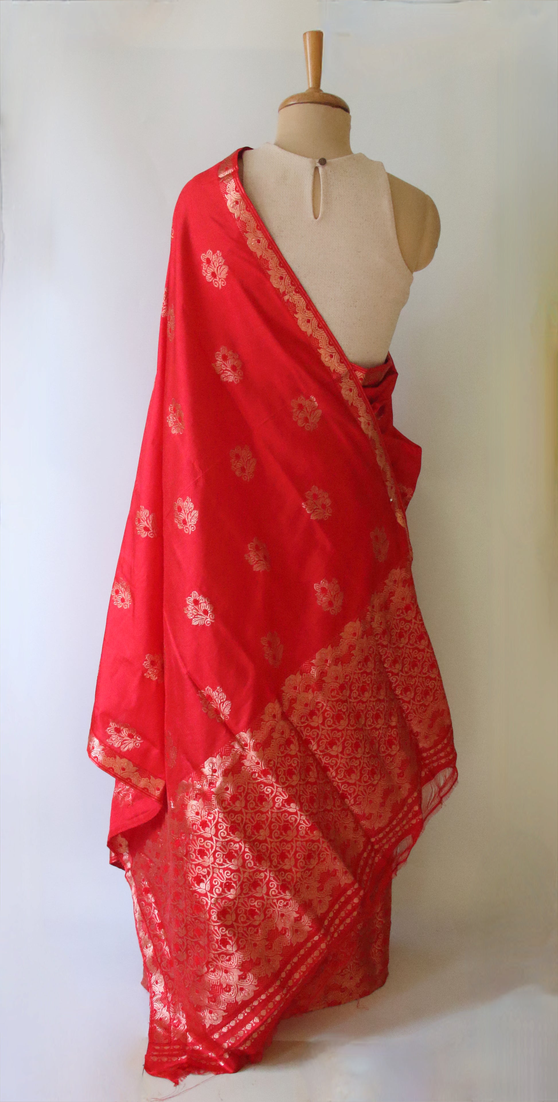 Red Traditional Silk Mekhela Chador set from our looms in Assam , India.