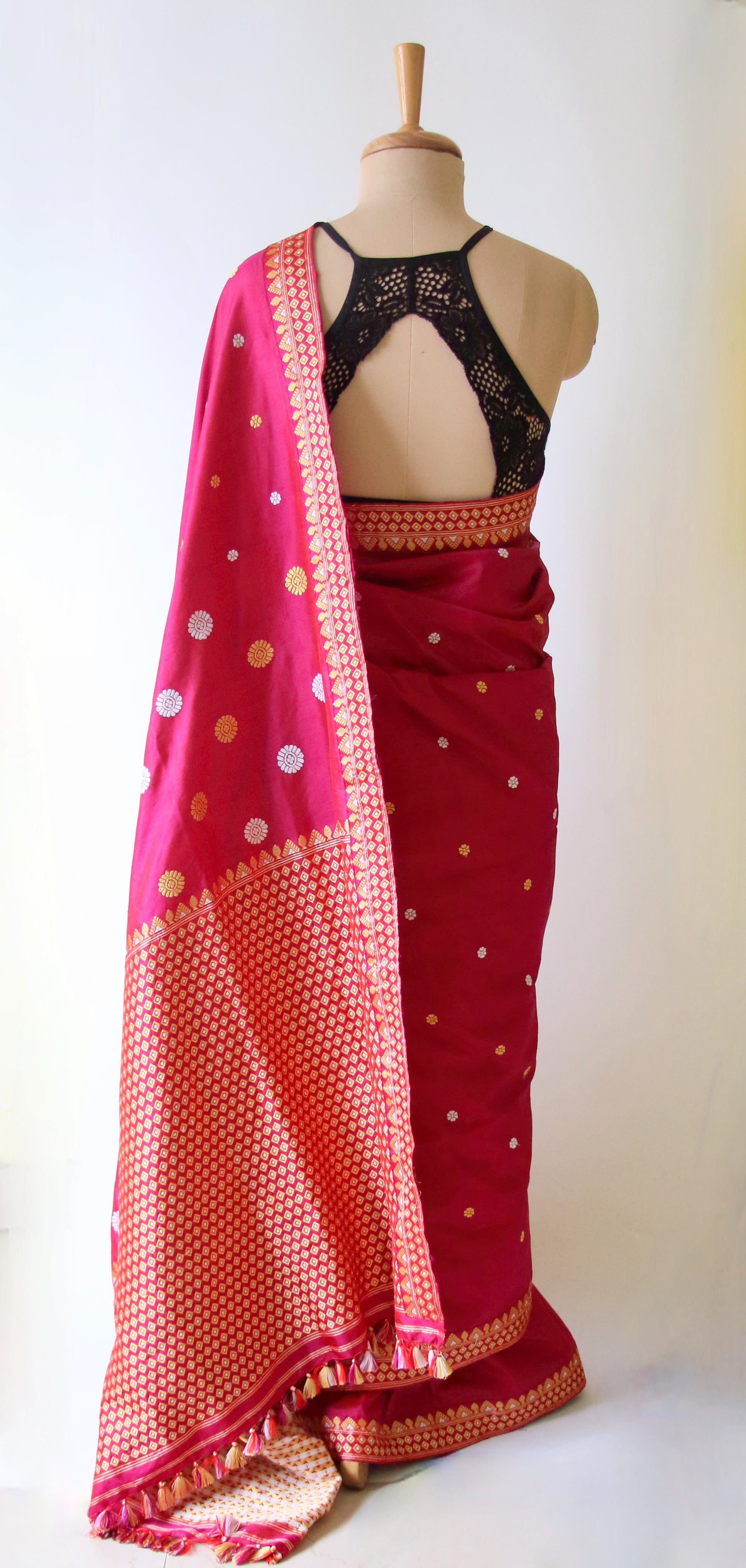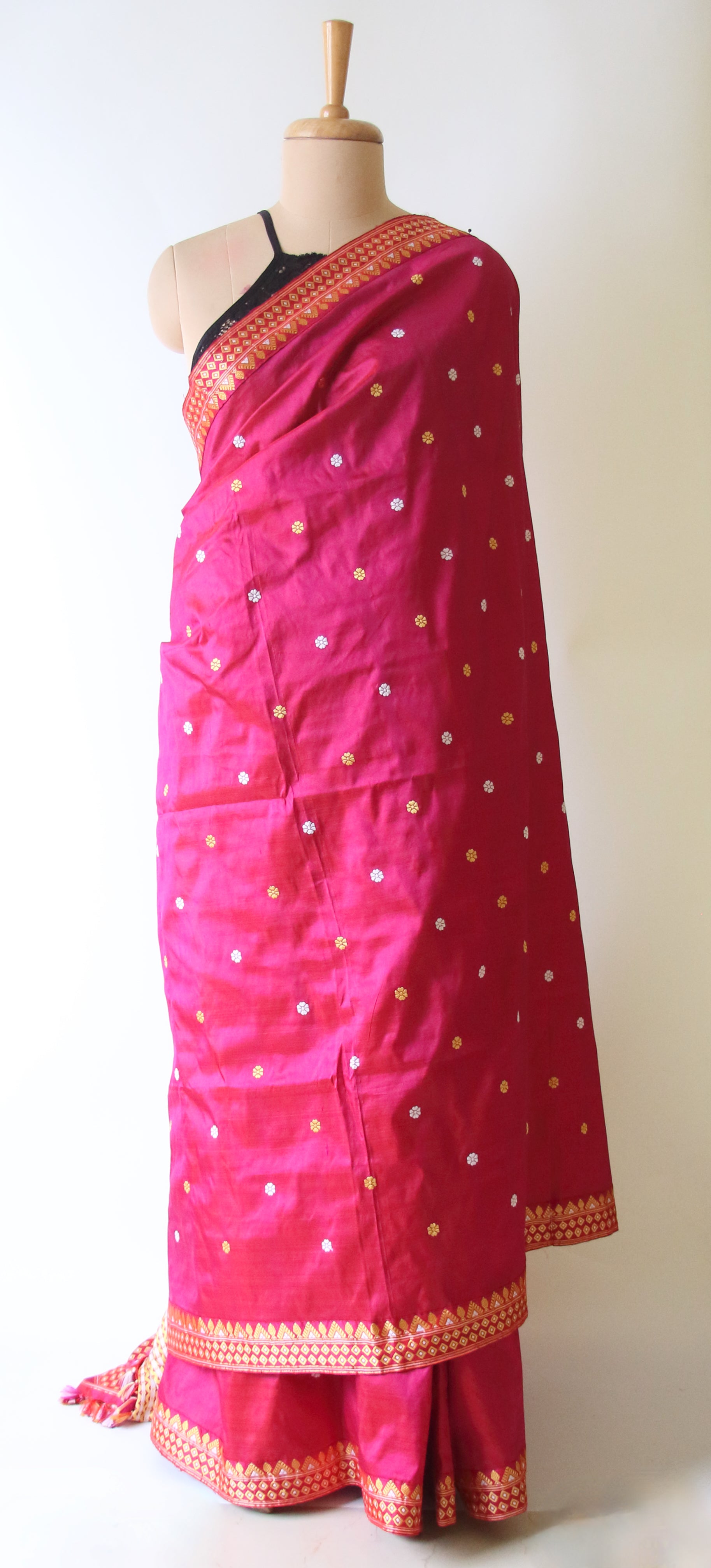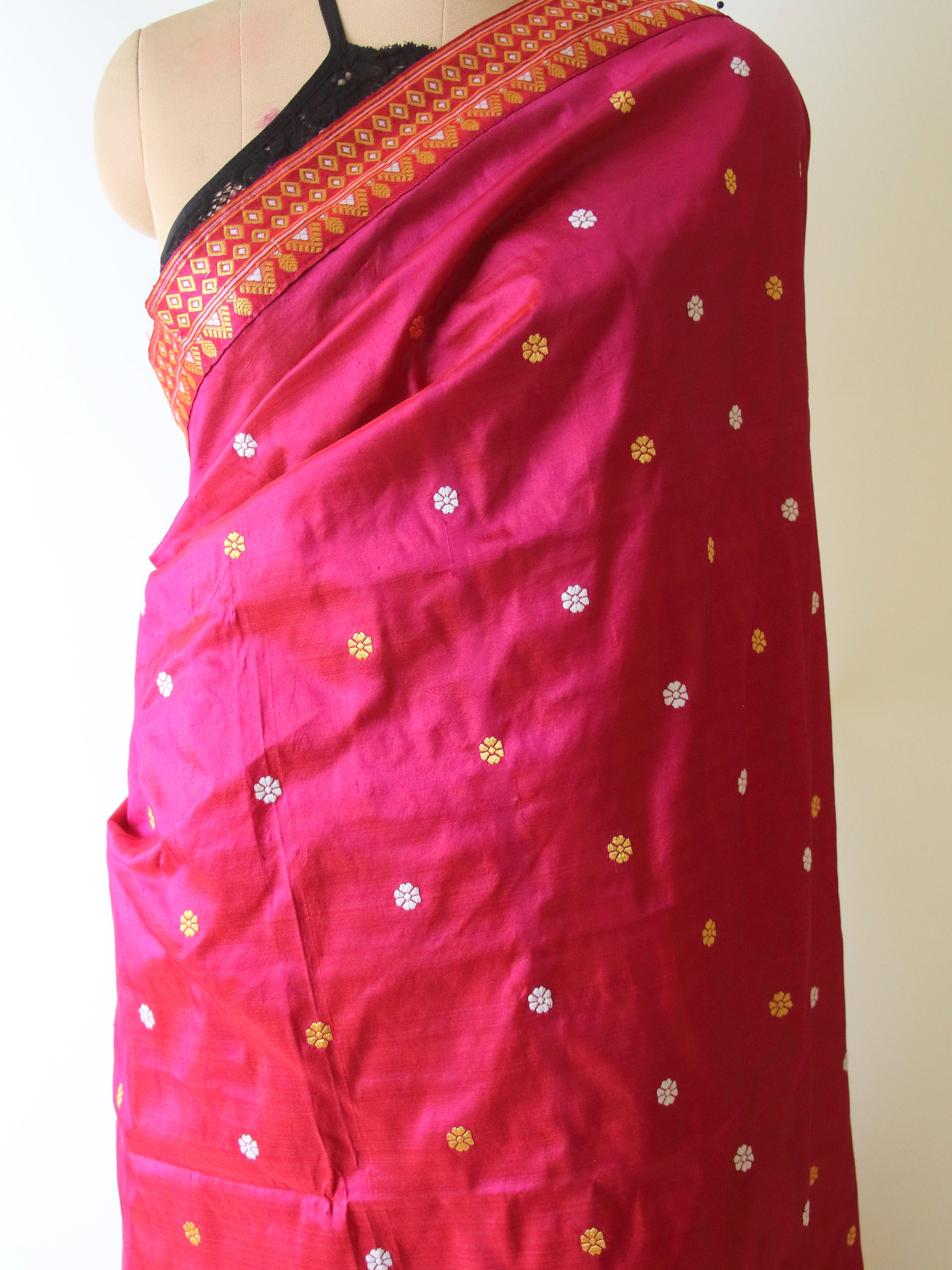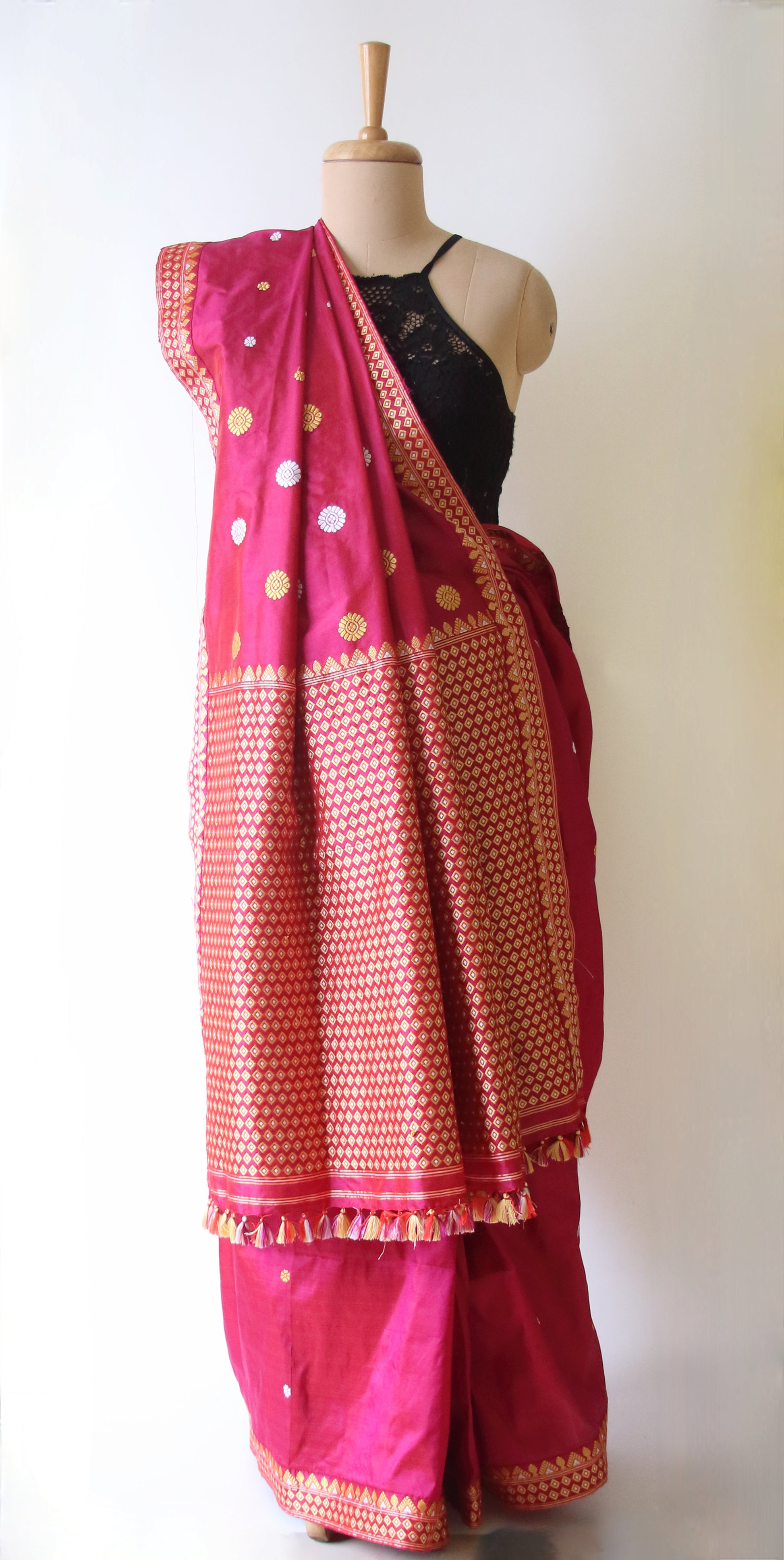 Rose Red  Handwoven silk saree from our looms in Assam , India .