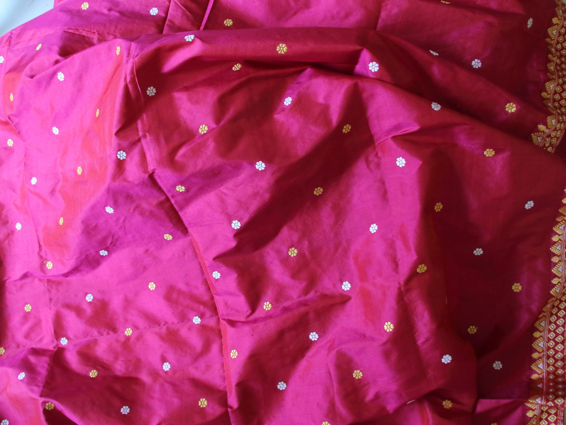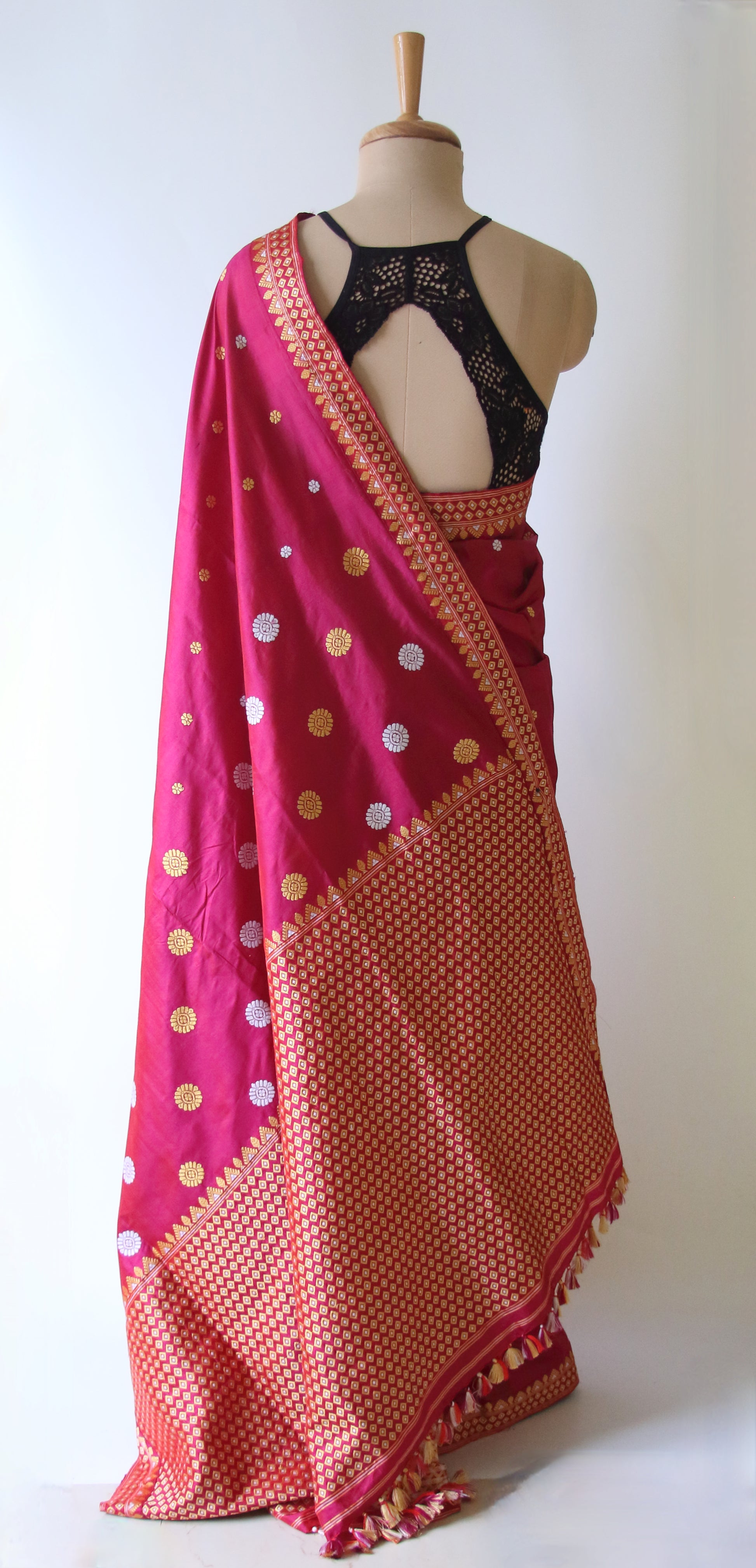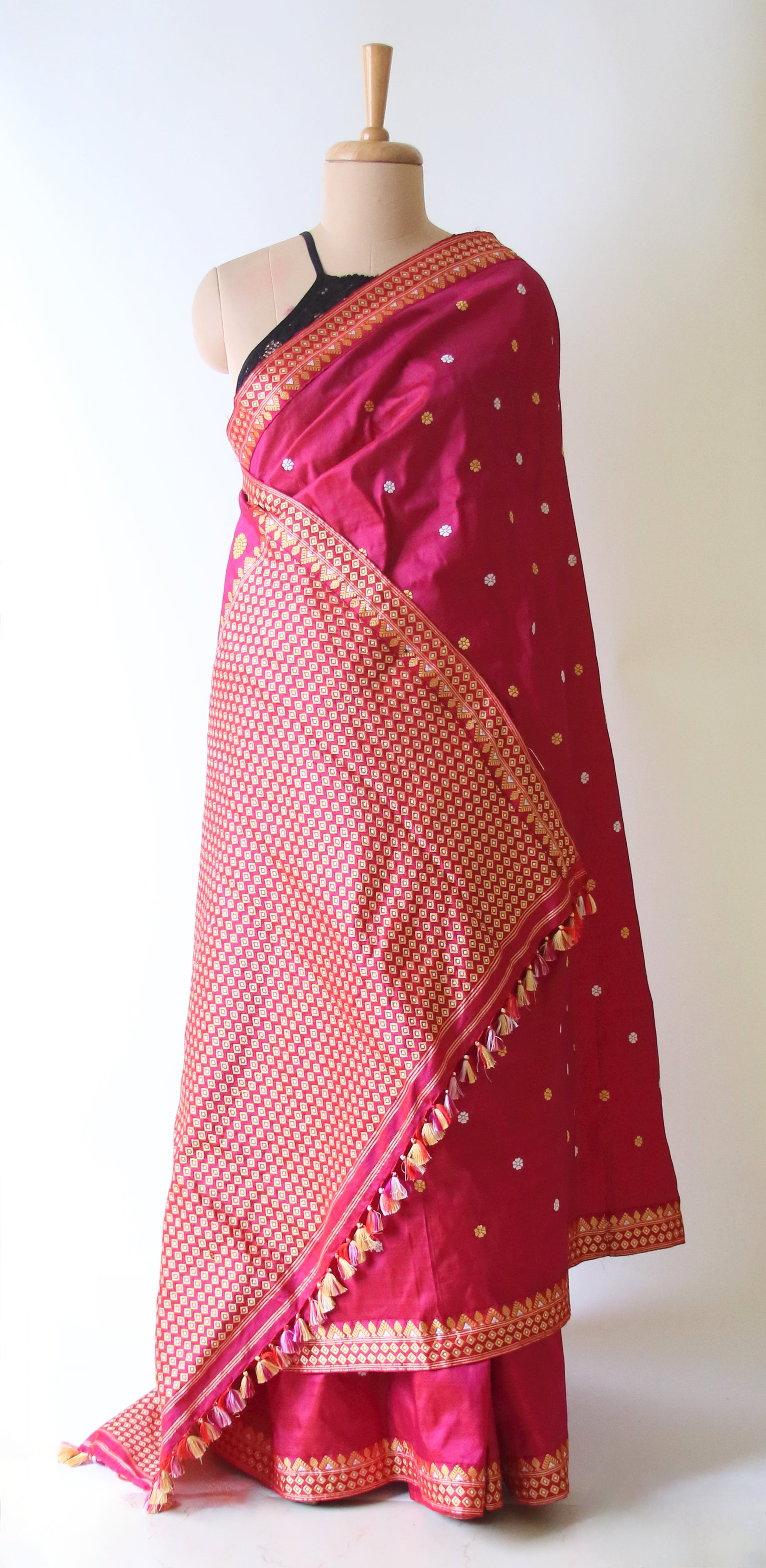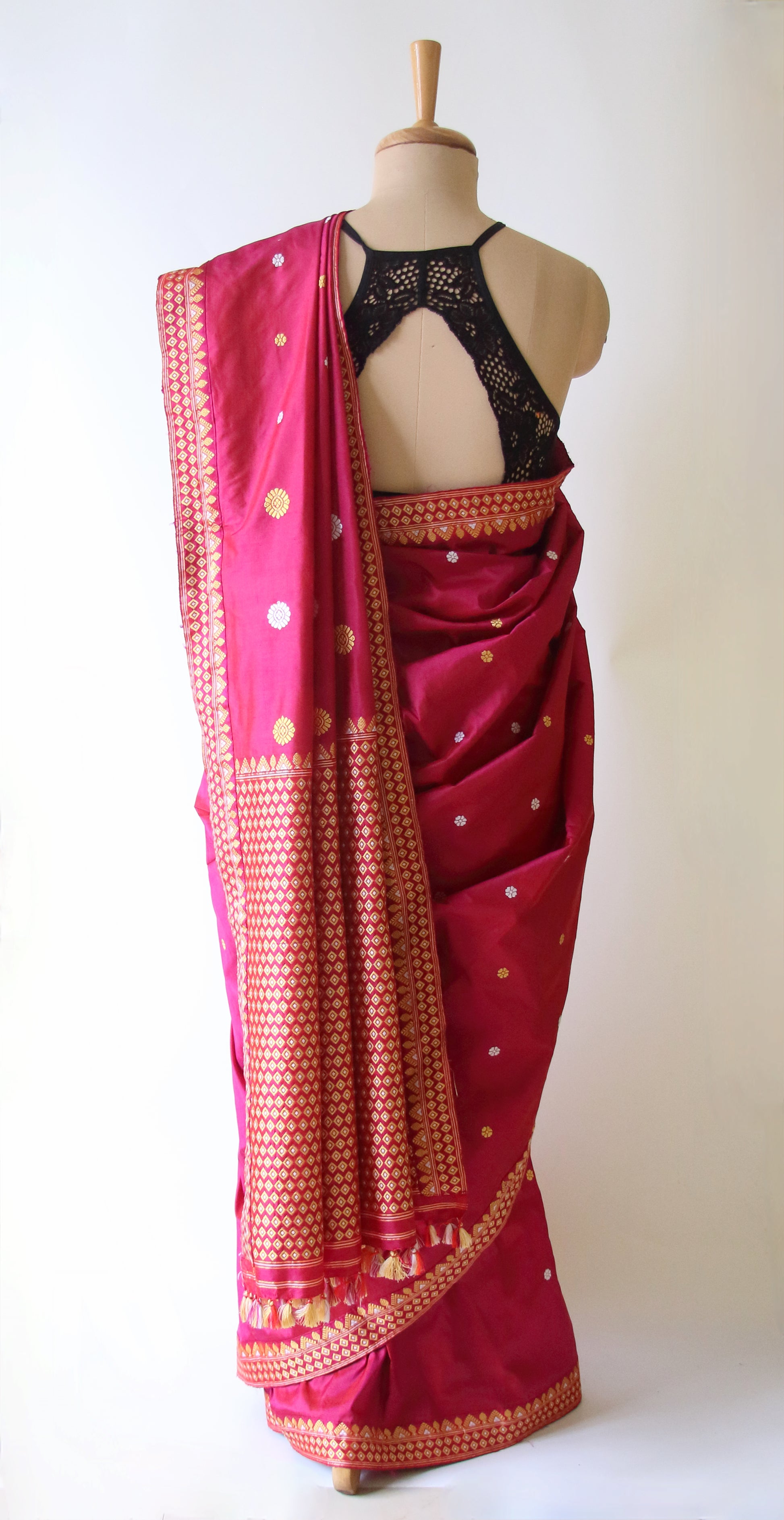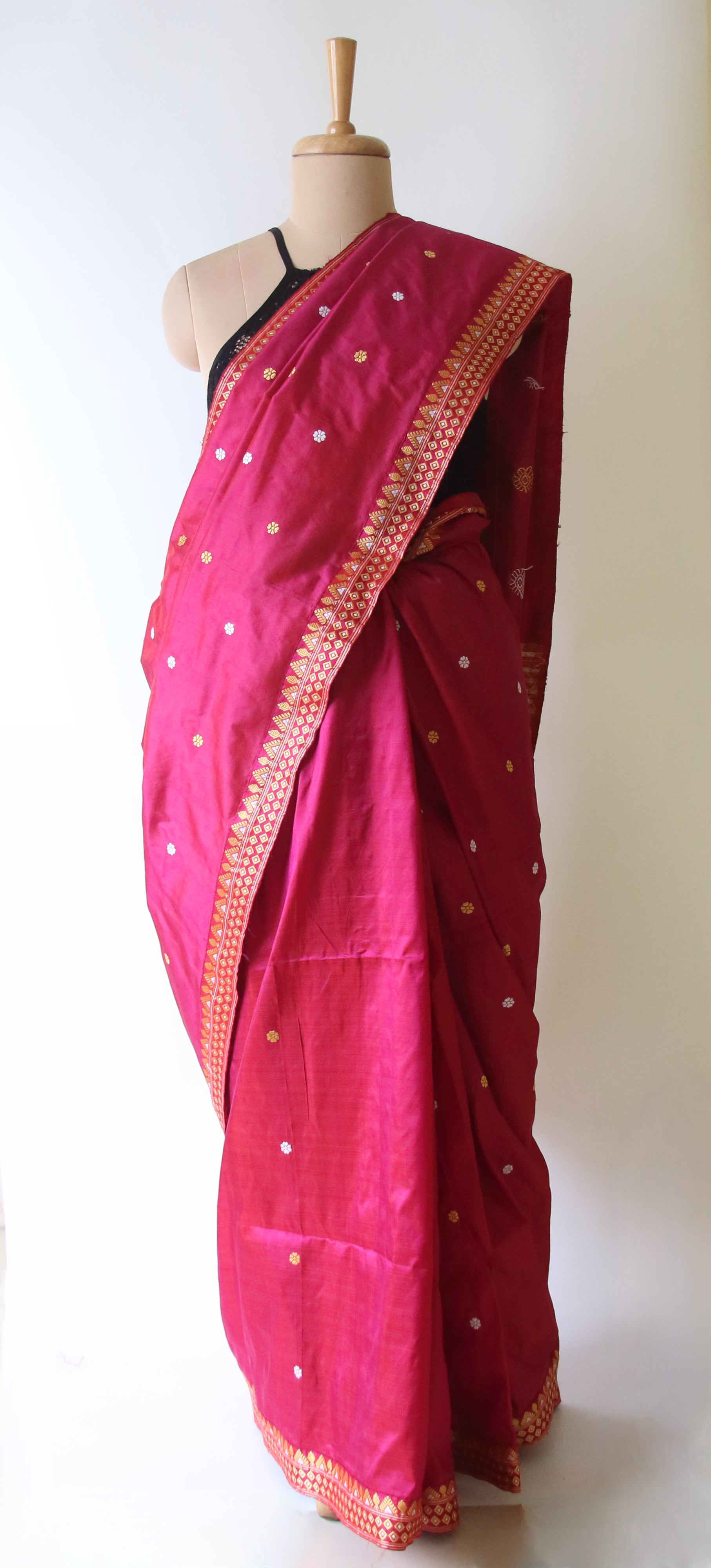 Rose Red  Handwoven silk saree from our looms in Assam , India .