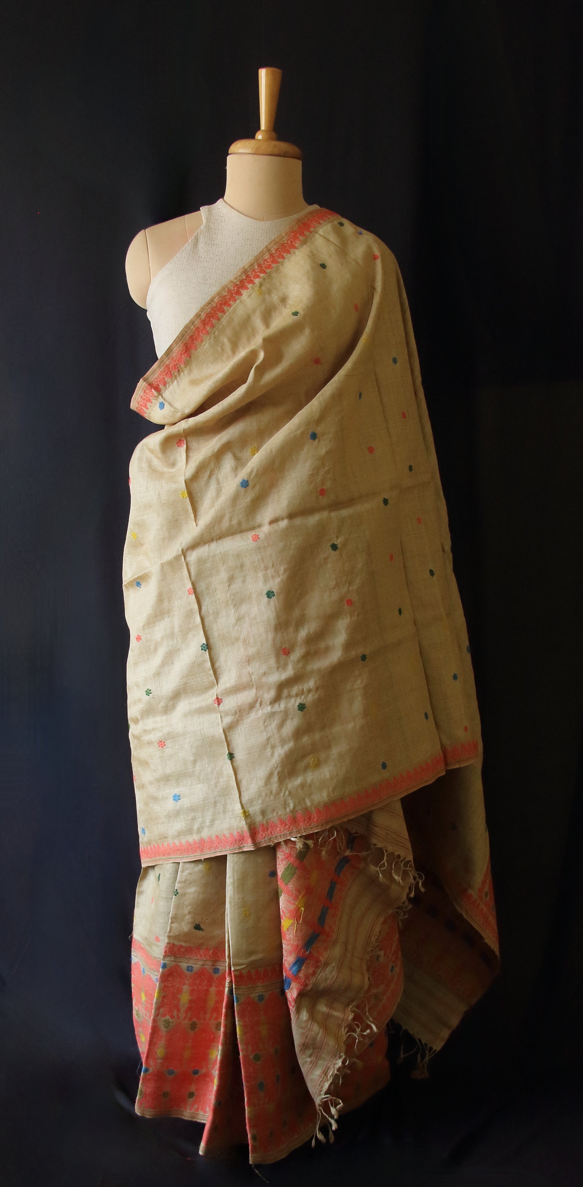 Muga Silk also tend to be slightly fluffy which over a period will settle down. Muga retains its lustre and strength and if stored properly will outlast one's lifetime.