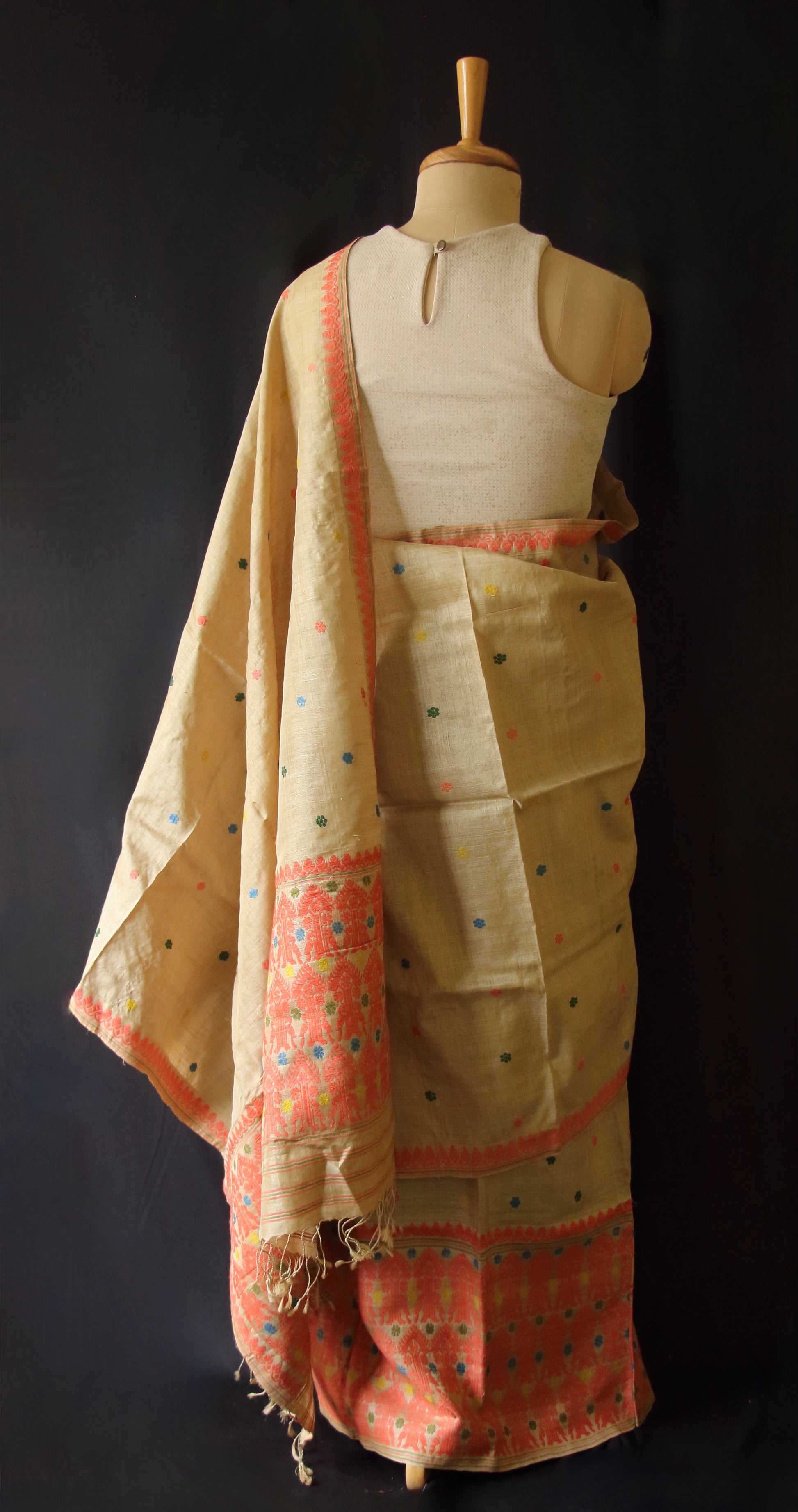 Authentic Muga Silk Mekhela Chador Set from Assam