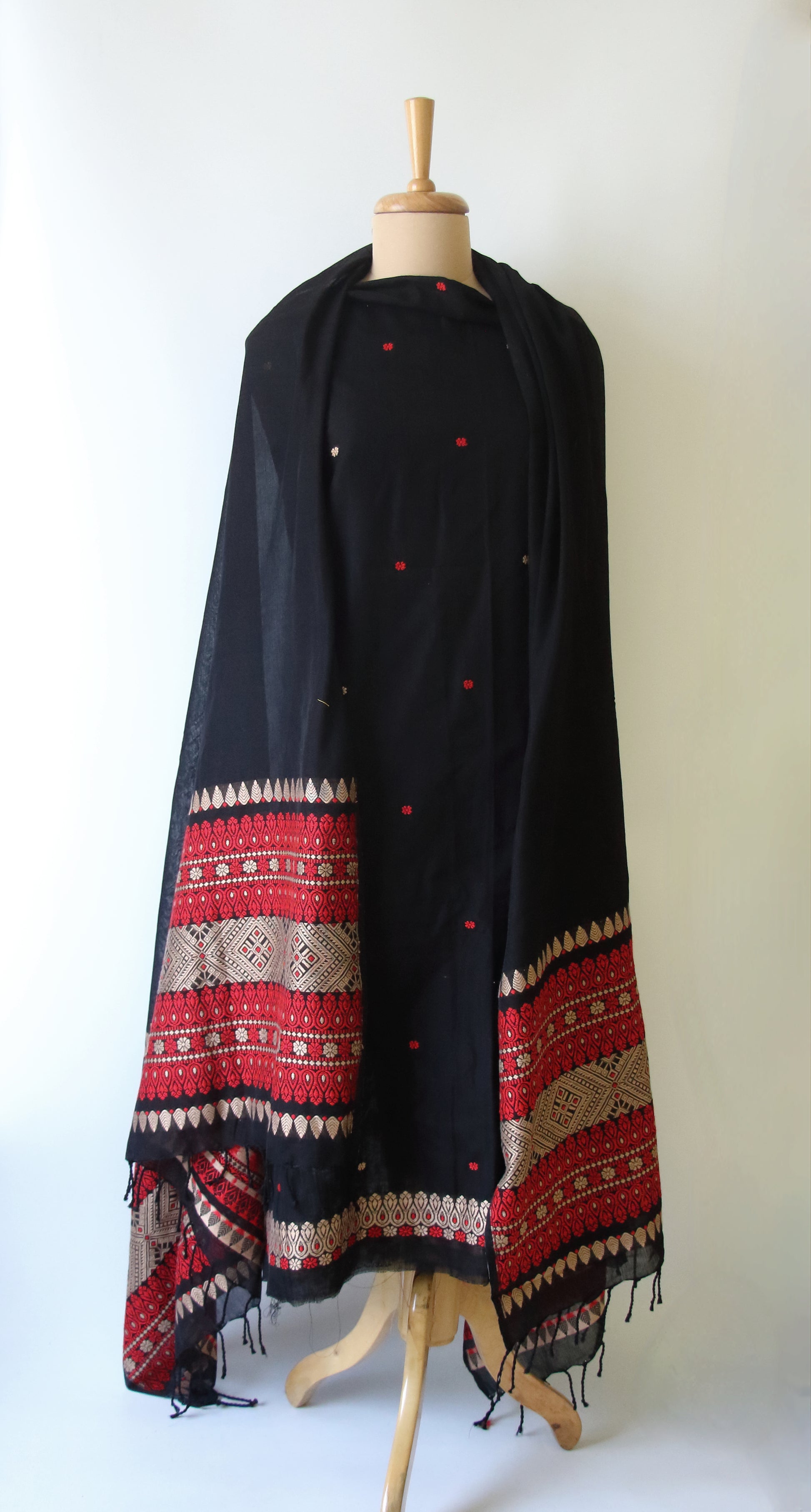 Handwoven 3 Pc unstitched Suit Set from our looms in Assam , India .