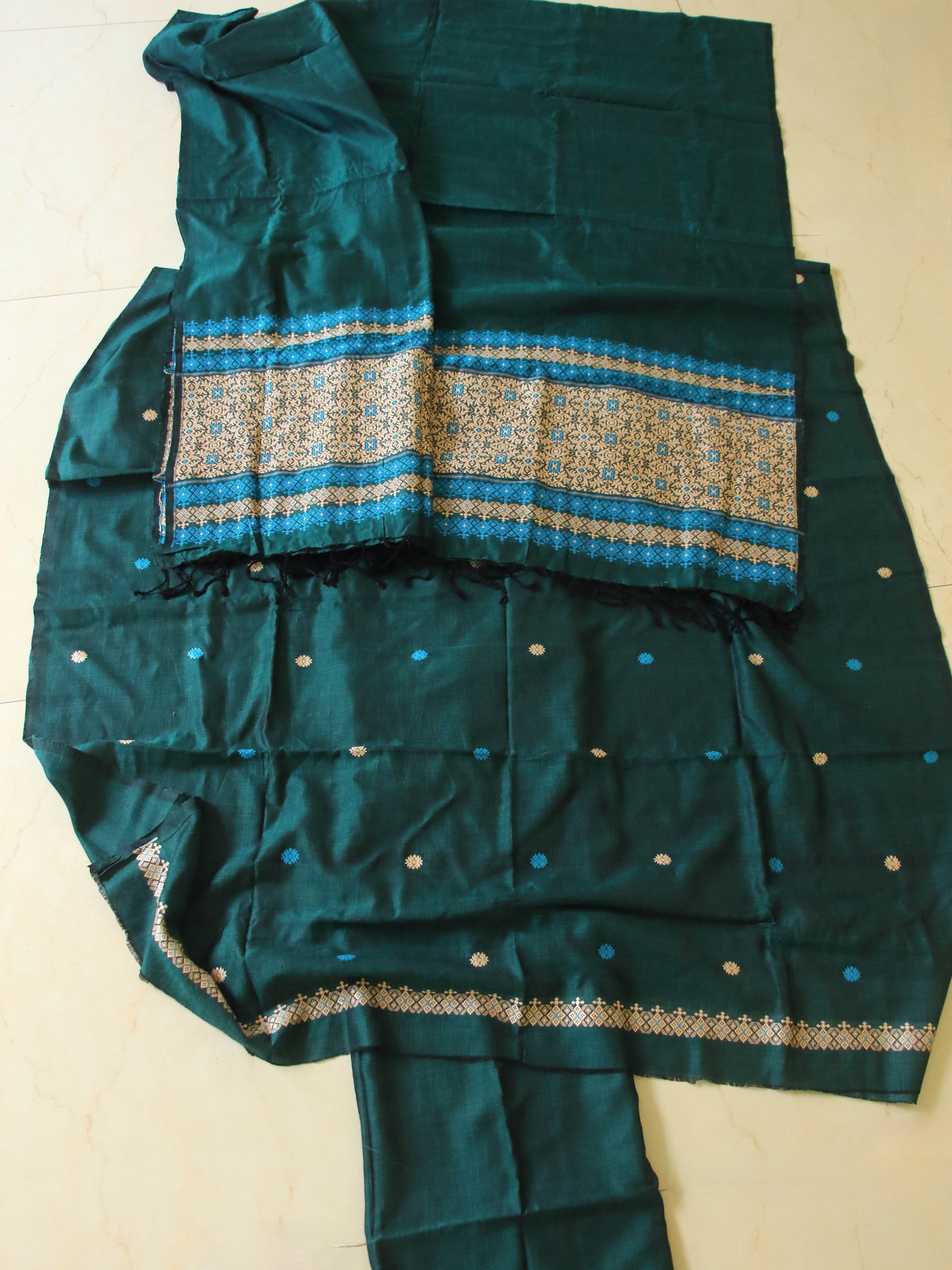Handwoven 3 Pc unstitched Suit Set from our looms in Assam , India .