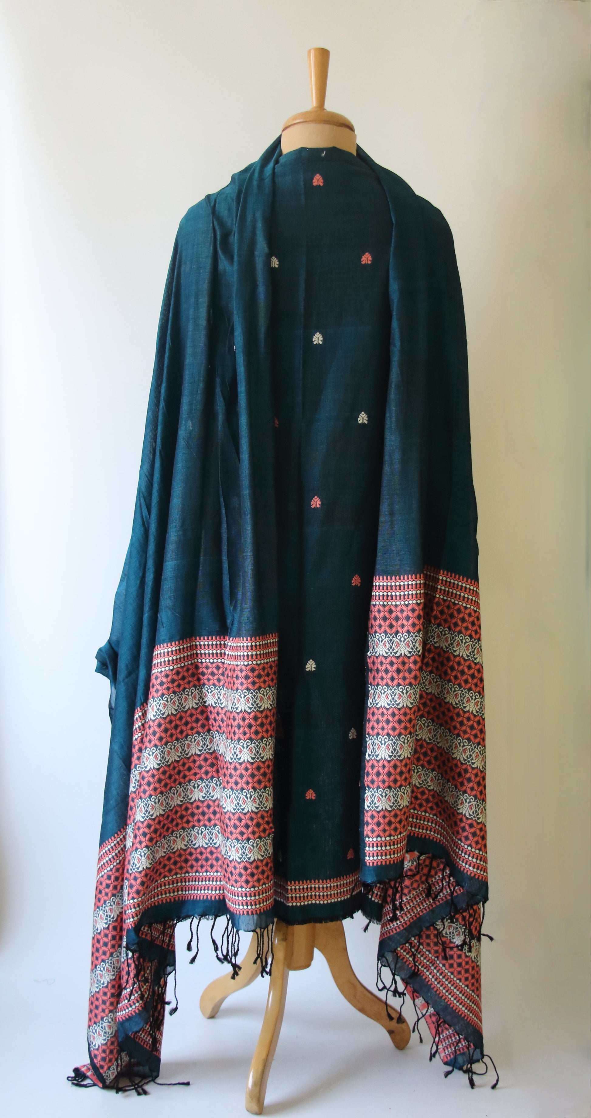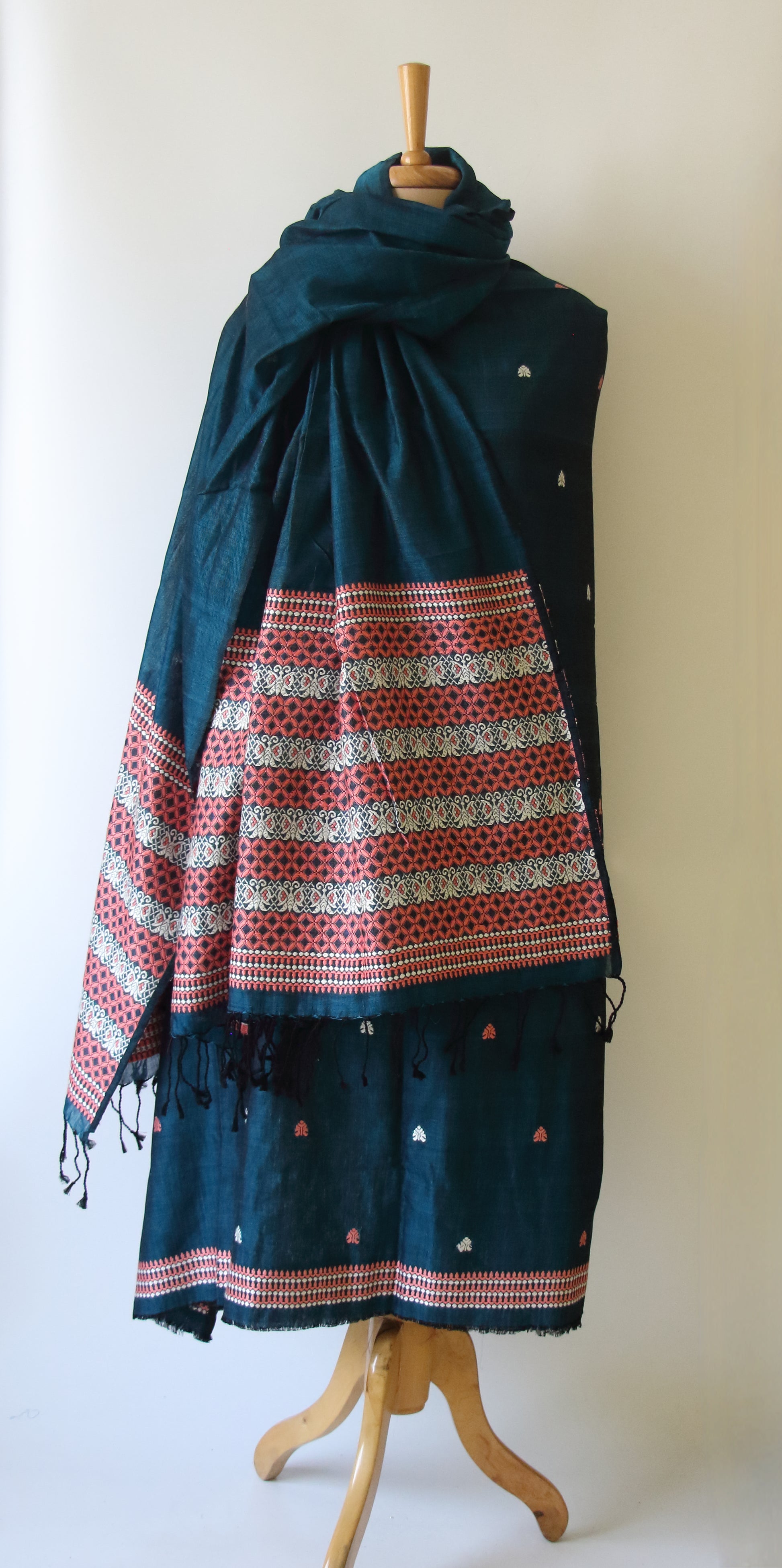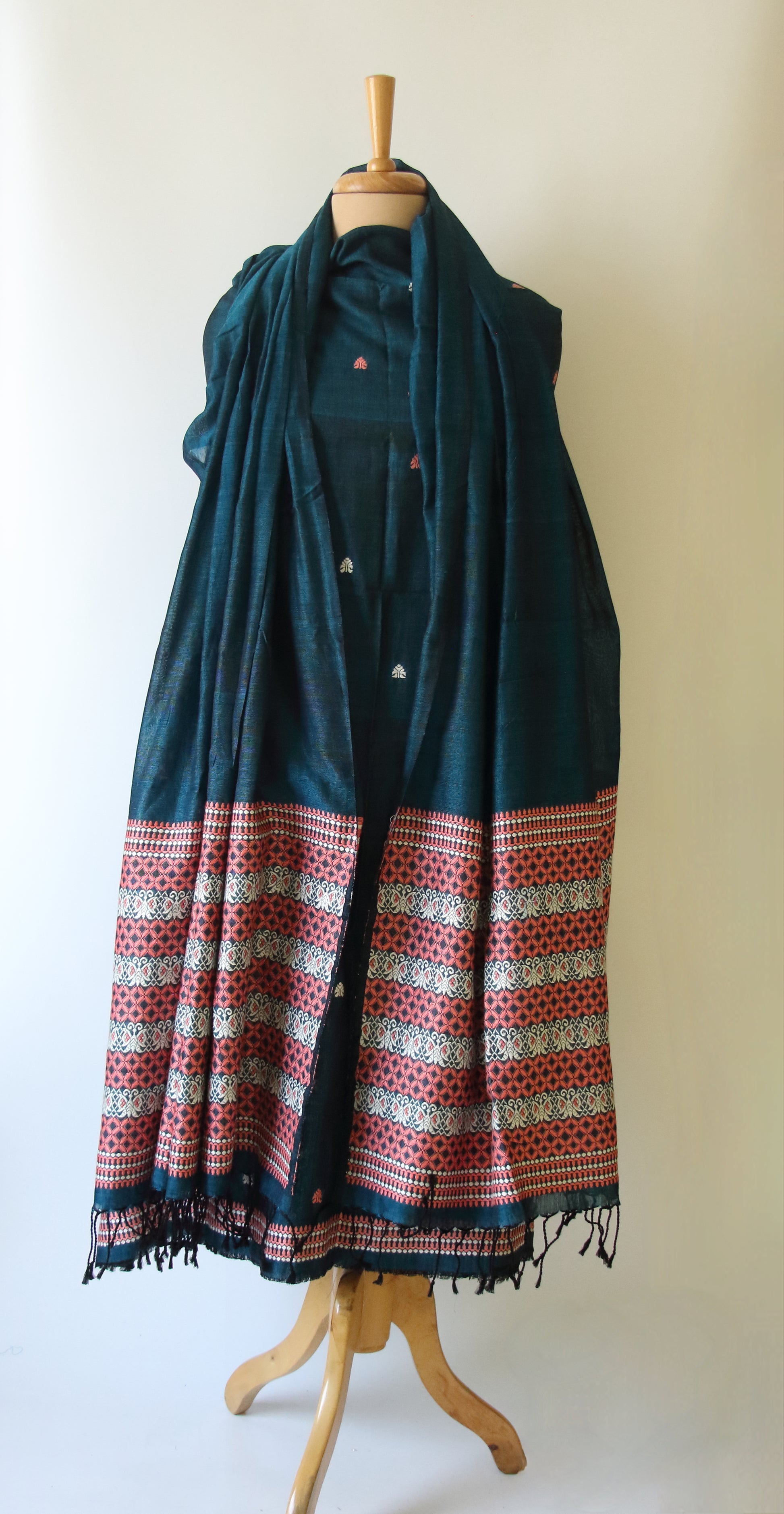 Handwoven 3 Pc unstitched Suit Set from our looms in Assam , India .