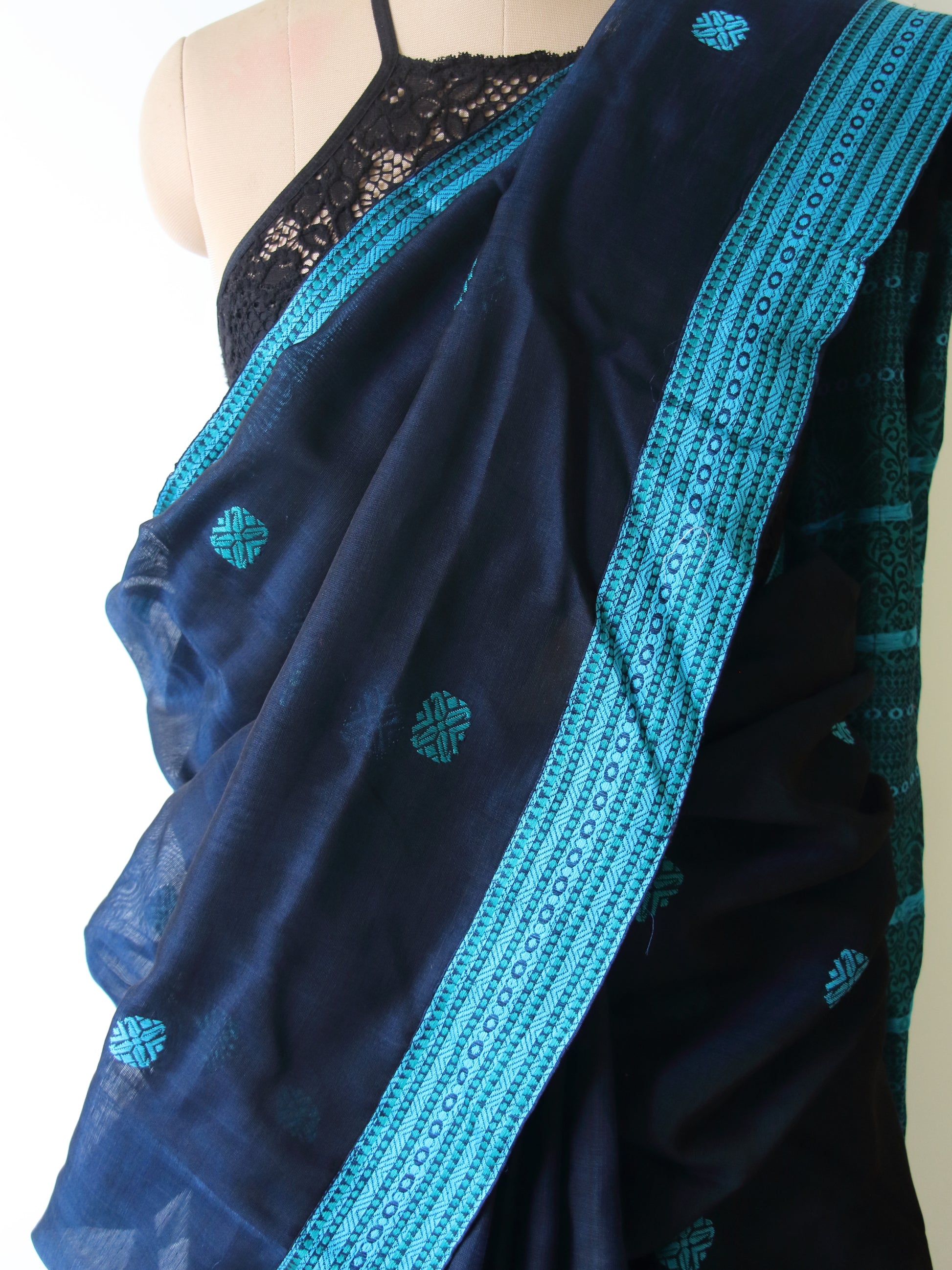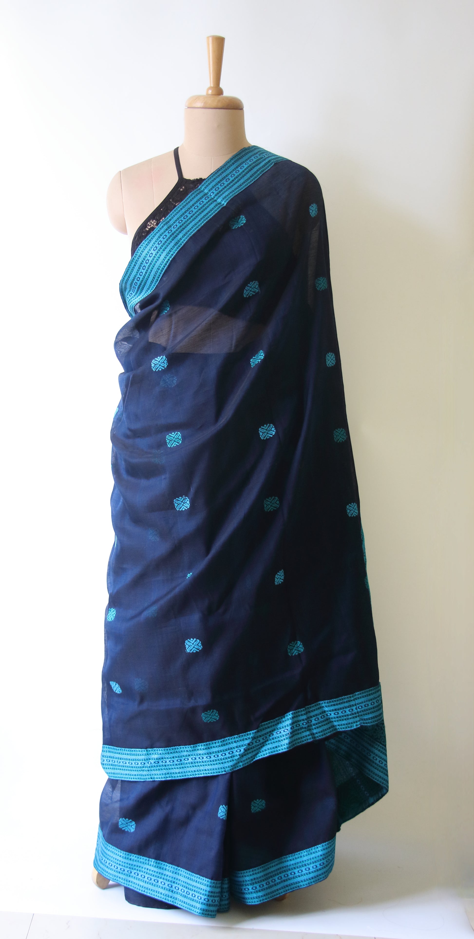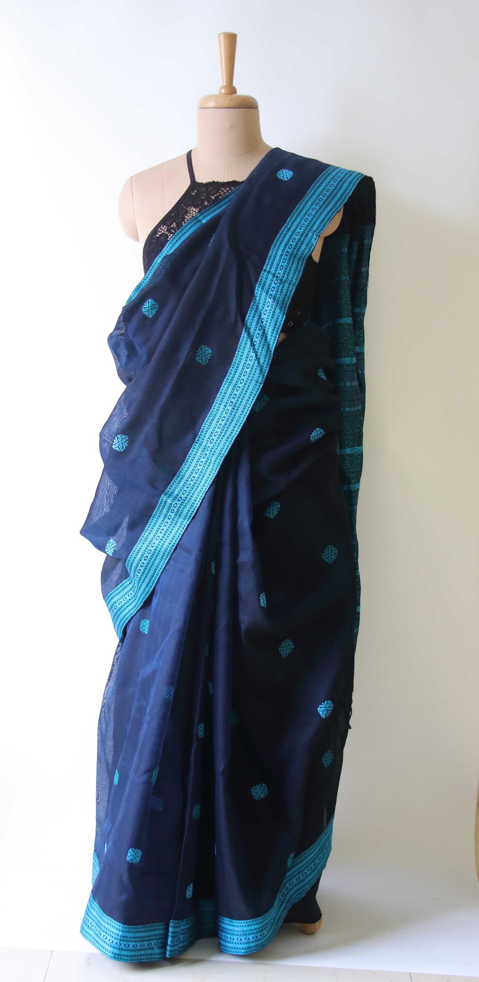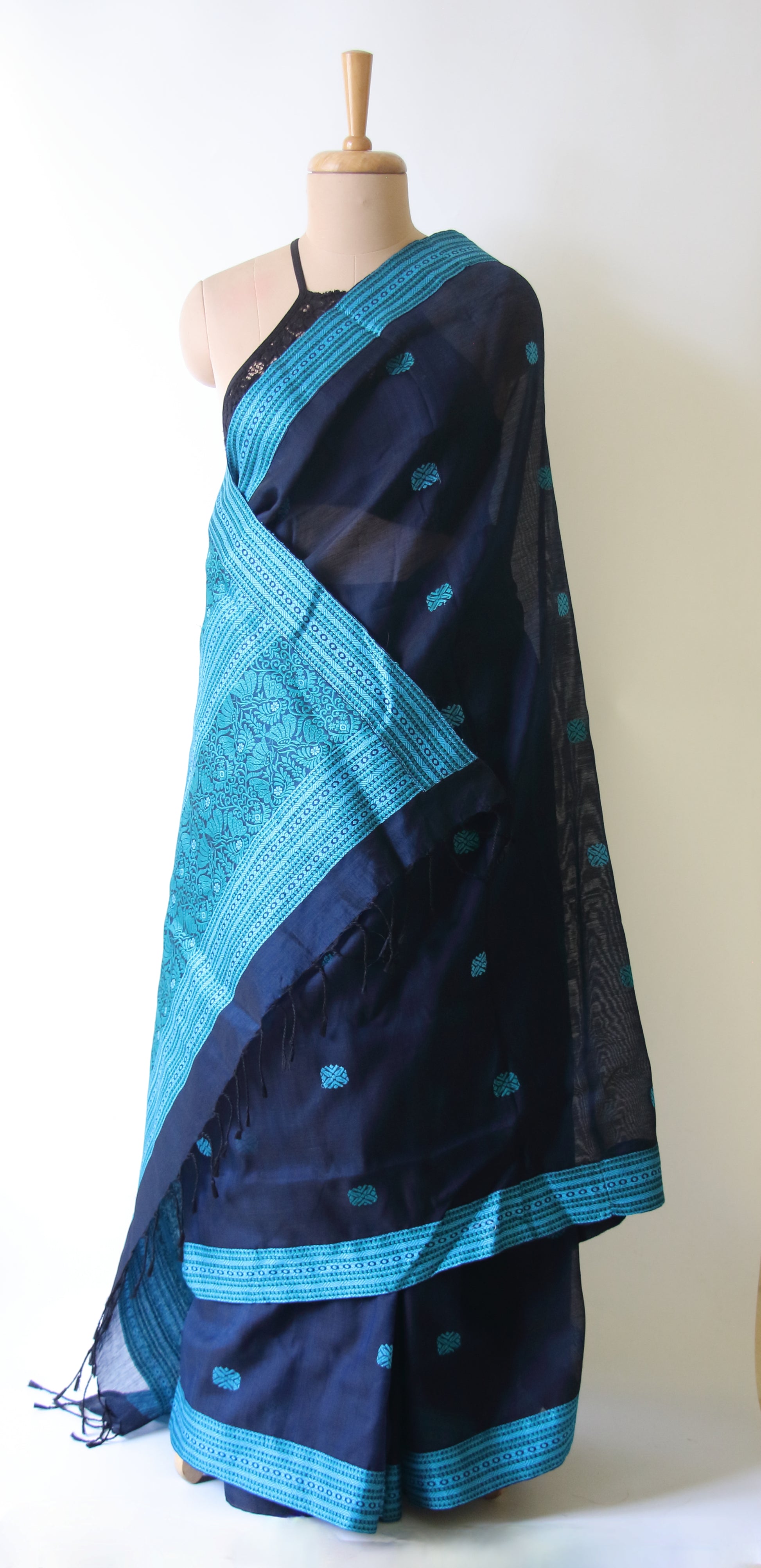 Deep Blue Handloom Cotton Silk Saree from Assam , India