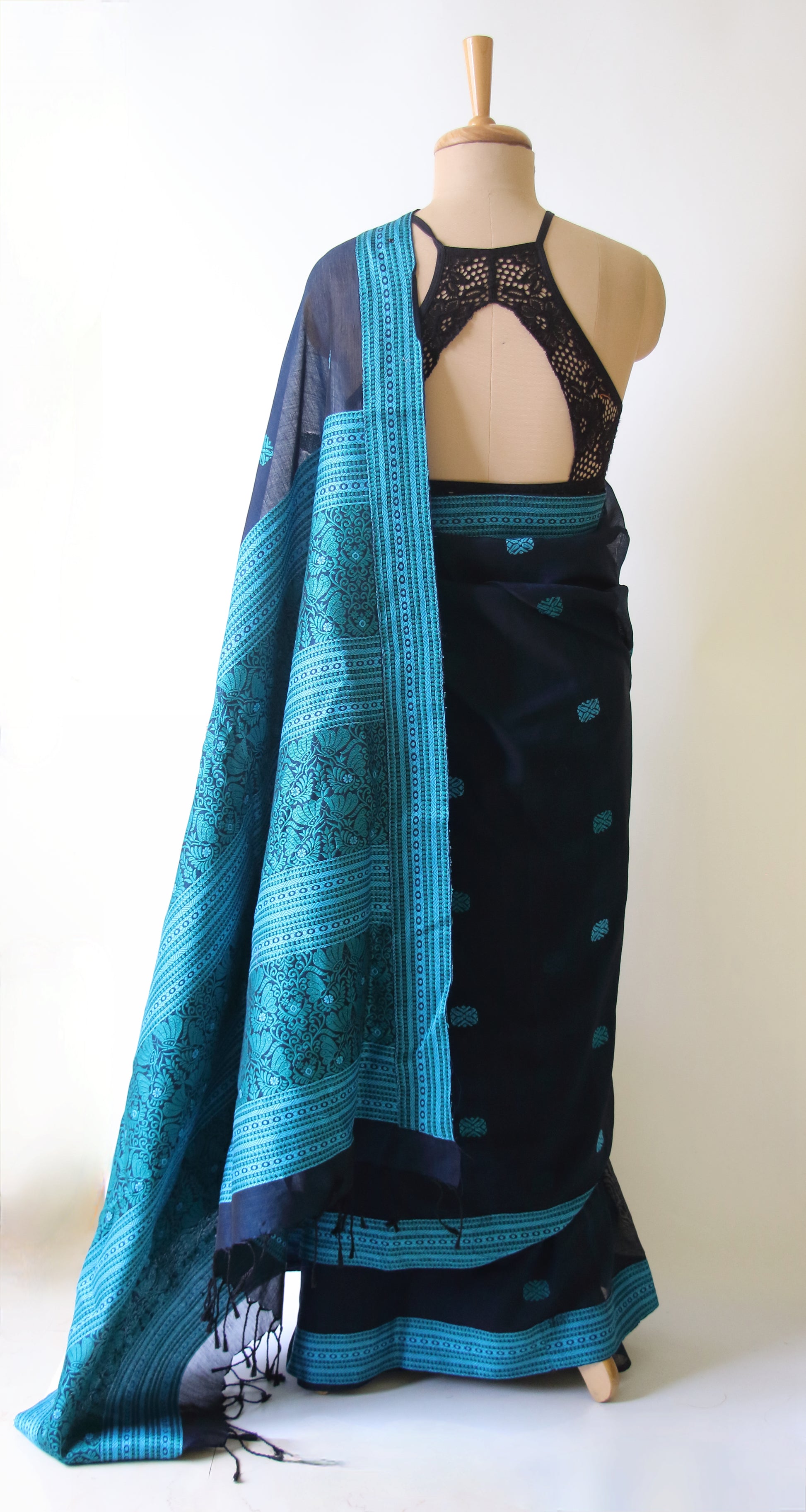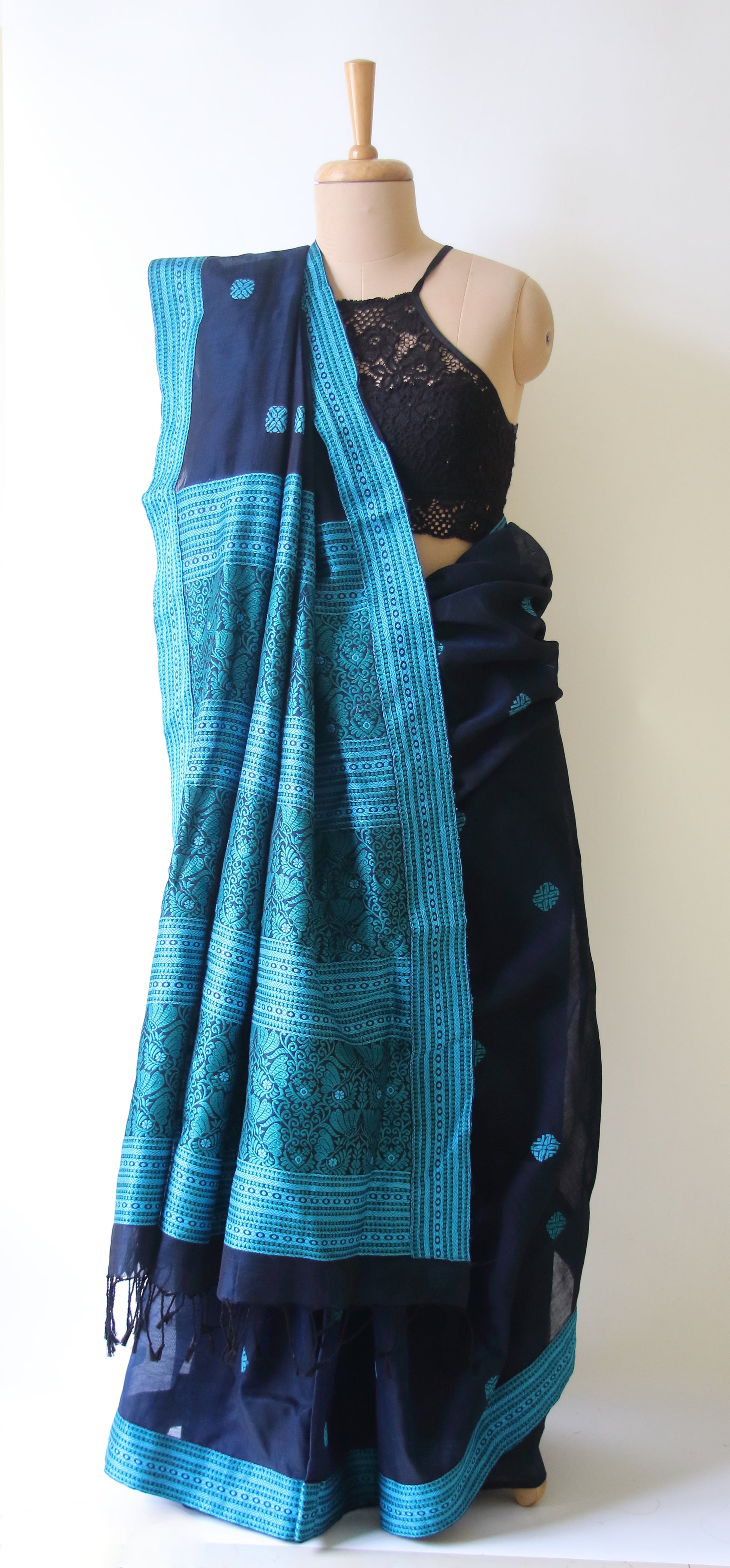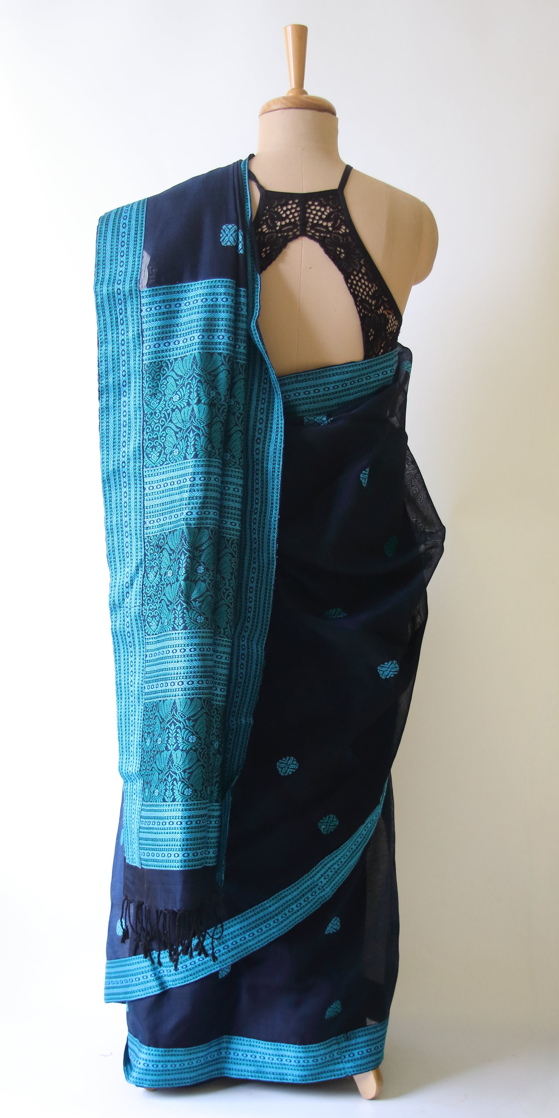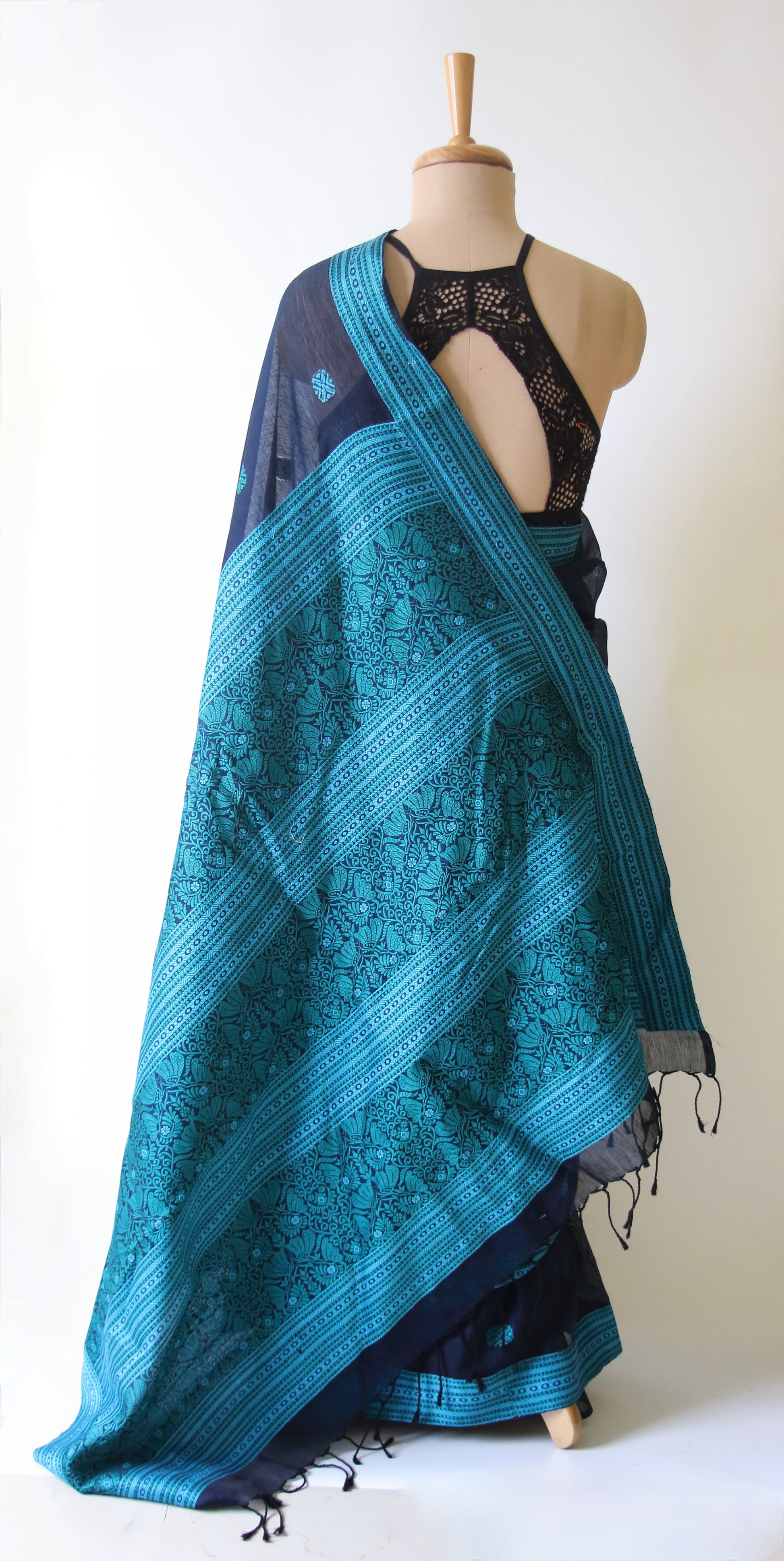 Deep Blue Handloom Cotton Silk Saree from Assam , India