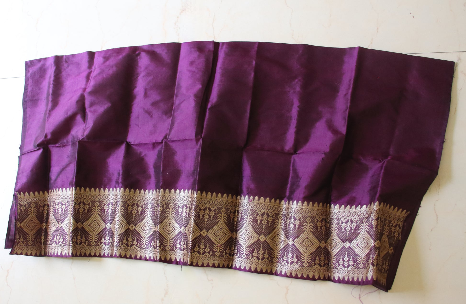 The Mekhla and Chador is a traditional 2 piece dress from the North East State of Assam, India . The Mekhla is appx 1.20 Mt in length and 37" width when stitched. The Warp will have pleats when worn. The top part or 'chadar ' is a shawl or half -sari which is used to cover the upper portion of the body and is worn on top of the mekhla or wrap. The usual size is 3 Meters long and about 37 inches in width.