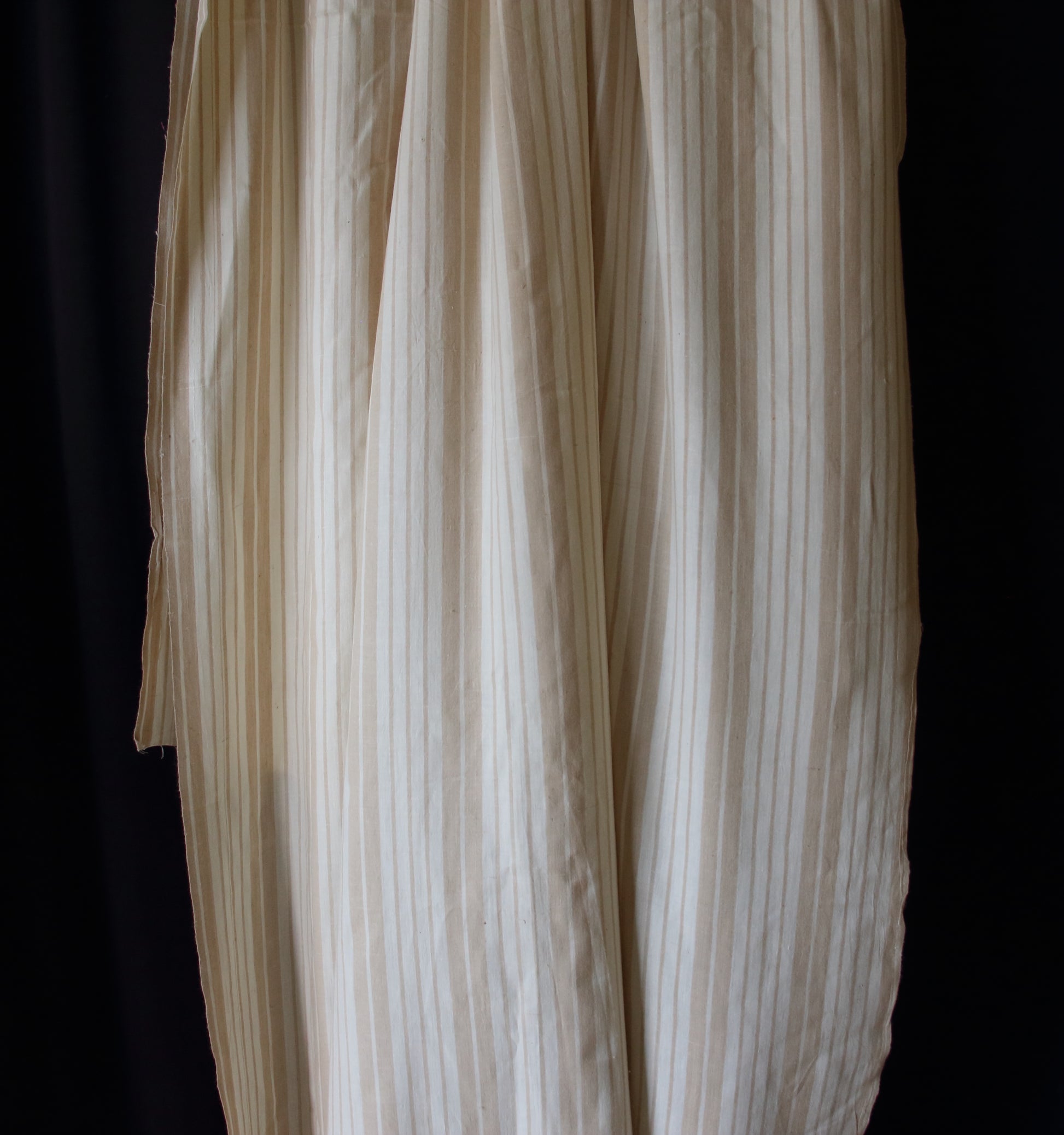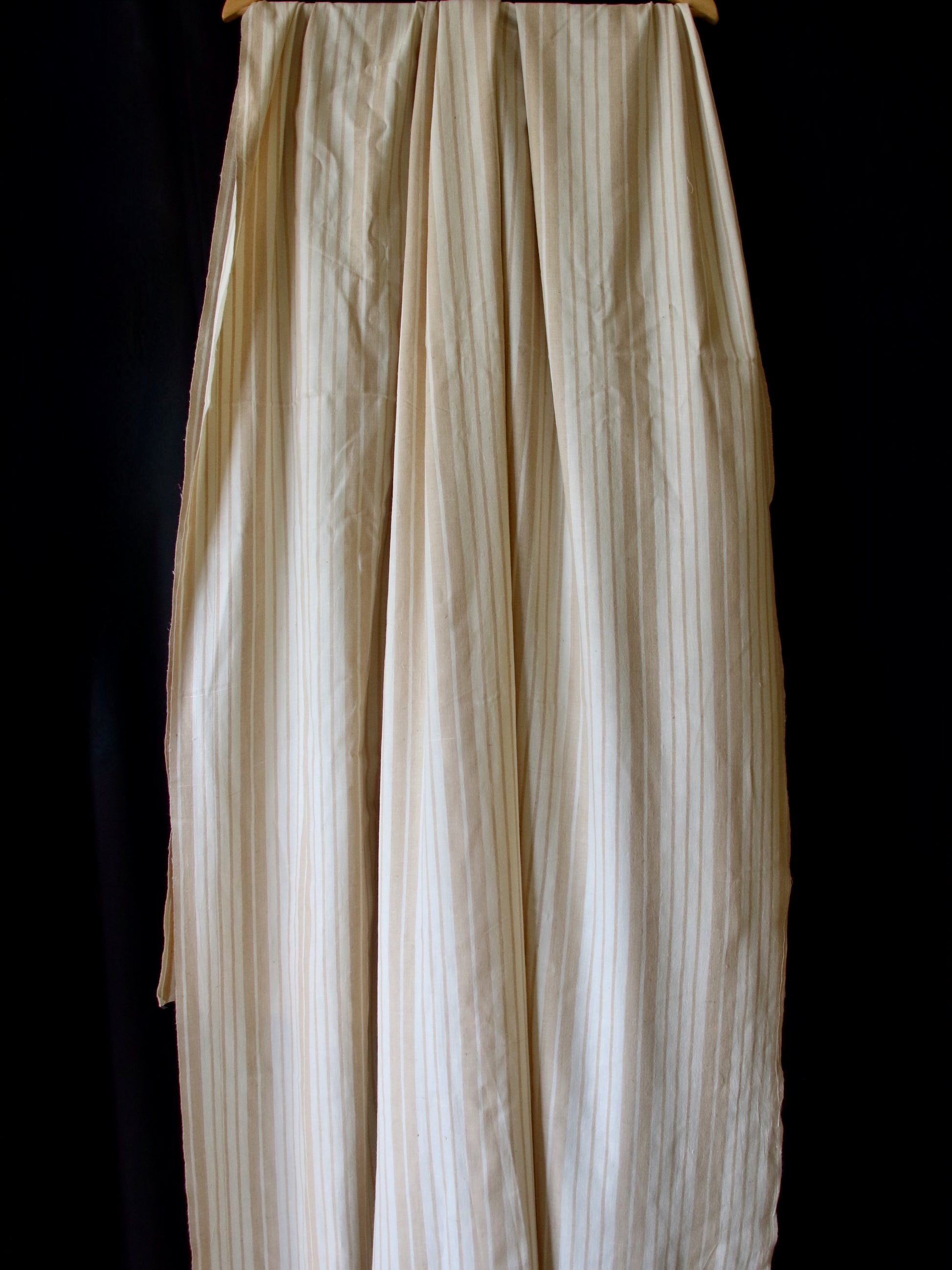 This yardage is a genuine handloom production . It has mill spun Eri Silk yarn in the warp and mill spun Eri Silk yarn in the weft and the stripes are in Muga Spun Silk .