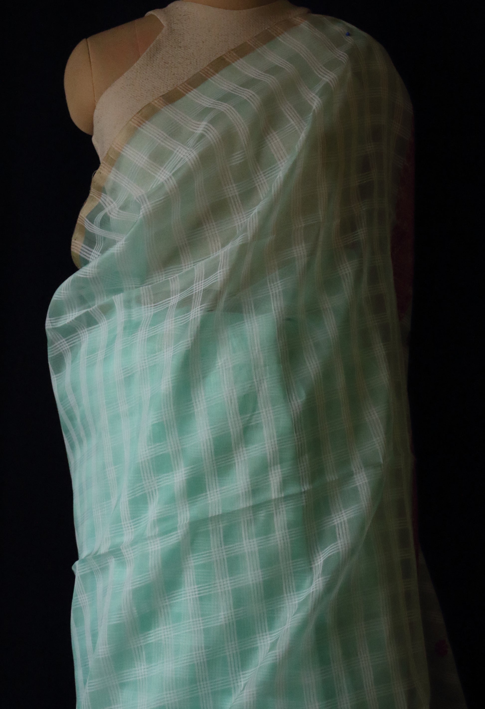 Handloom Organza Saree with chequered effect from Assam