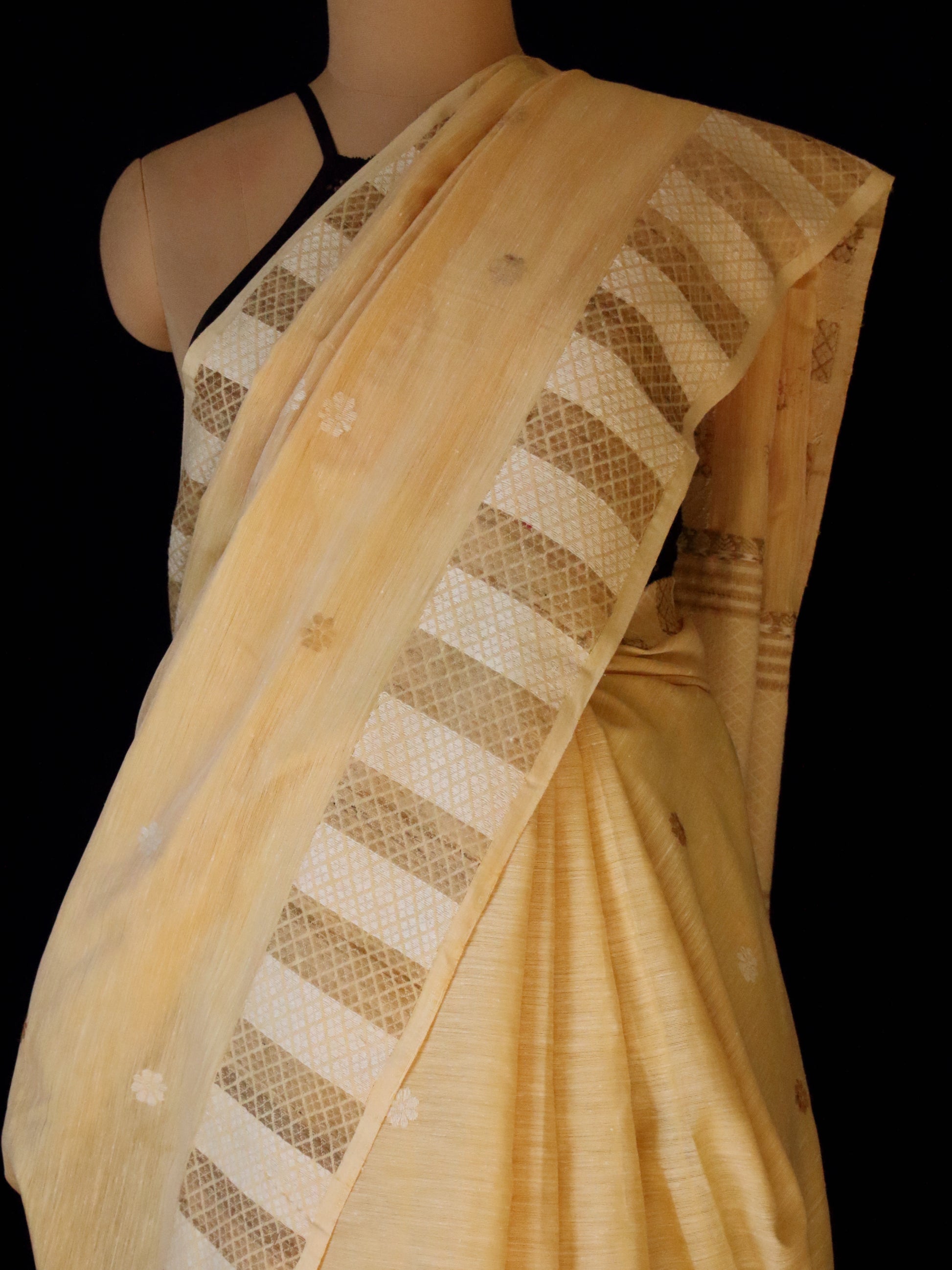 Soft yellow , classy handloom silk Saree from our looms in Assam.