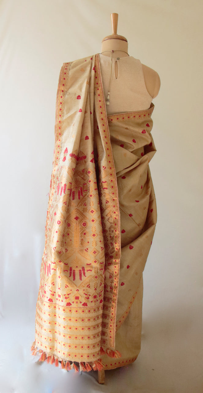 Handloom Traditional Design Muga Silk Saree from Assam- Made to Order