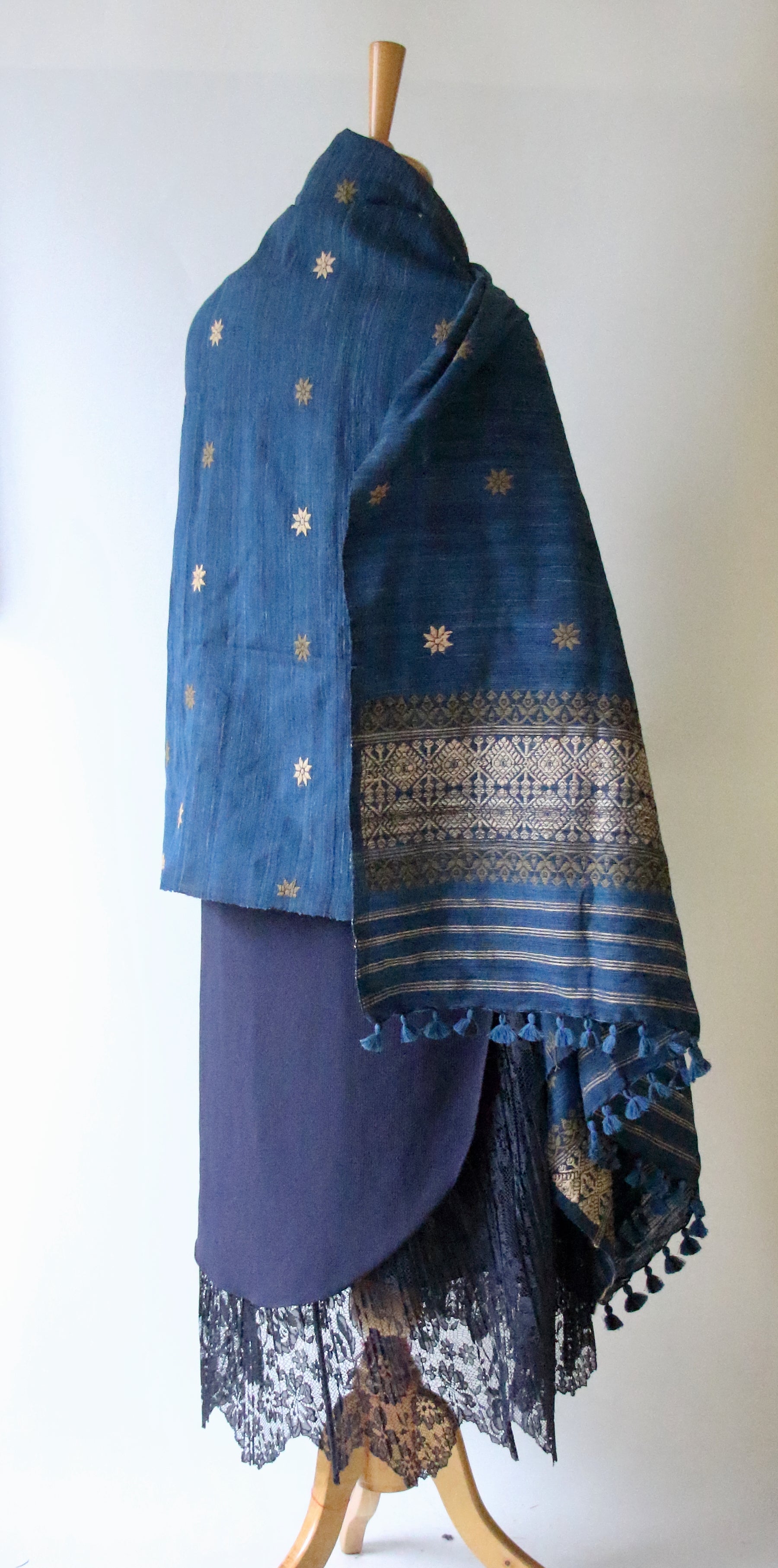 Handwoven Indigo Natural Dyed Hand Spun Eri Silk Shawl From Assam