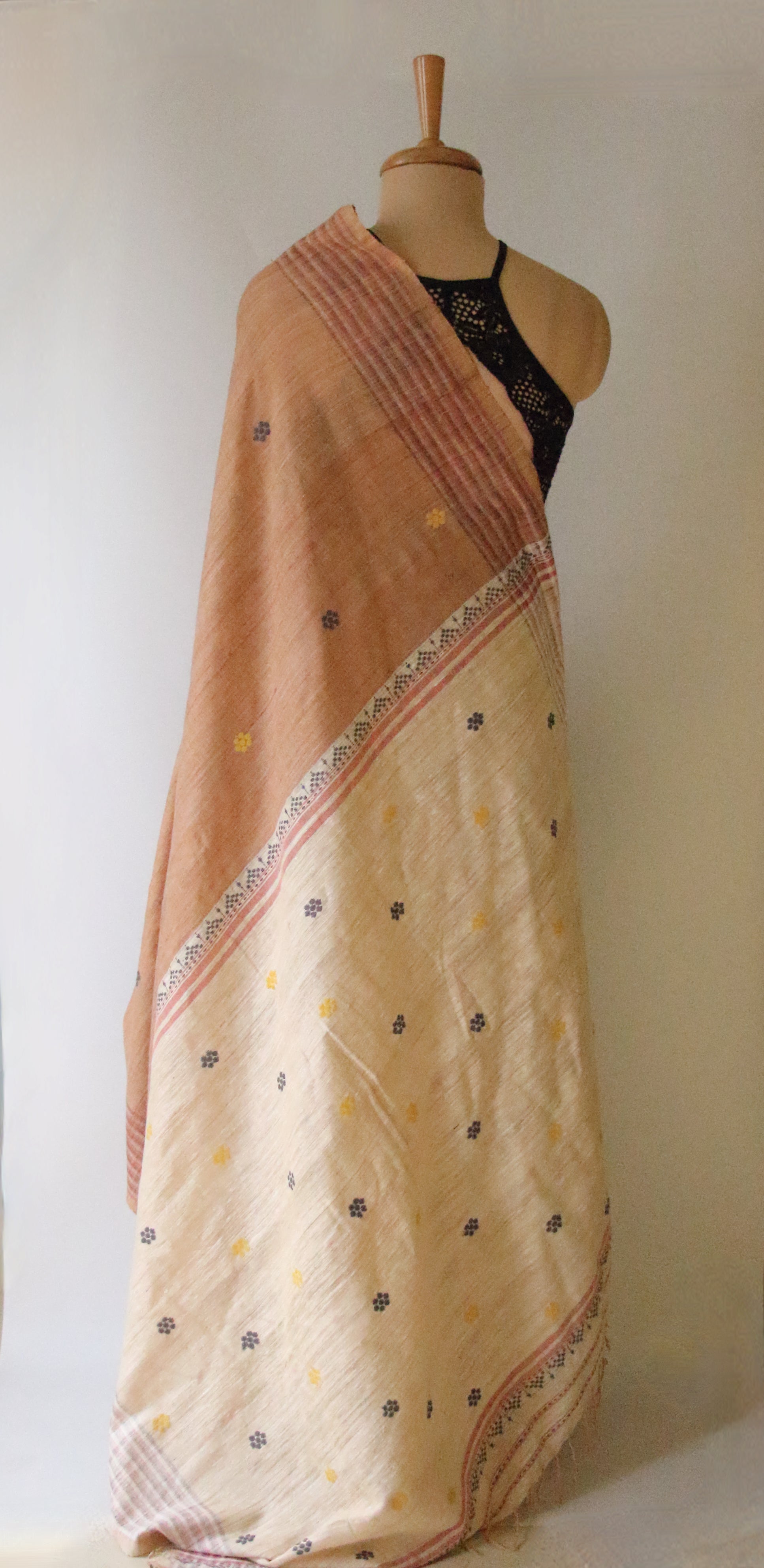 Hand woven Eri Silk Saree with hand spun silk yarns .