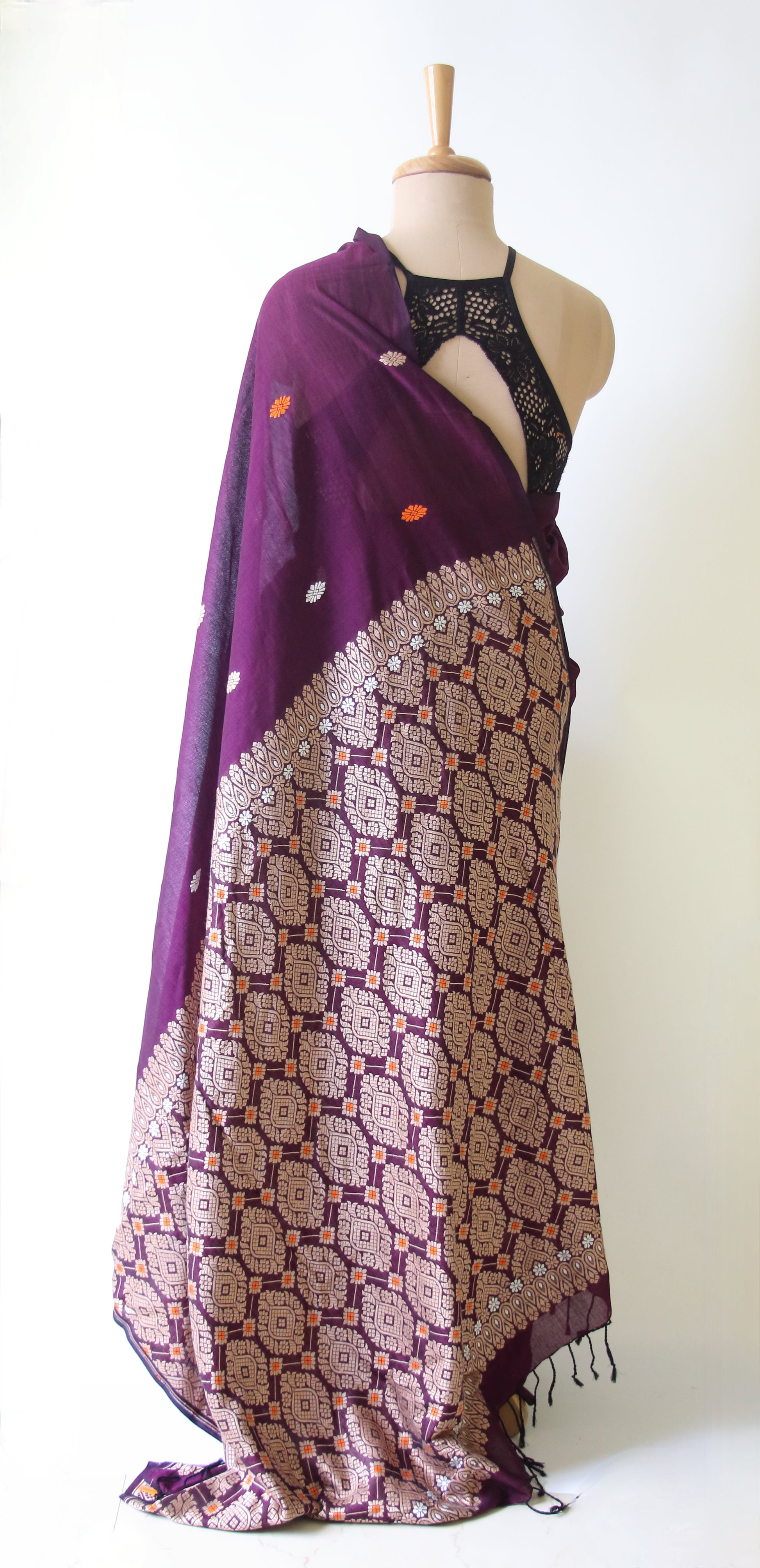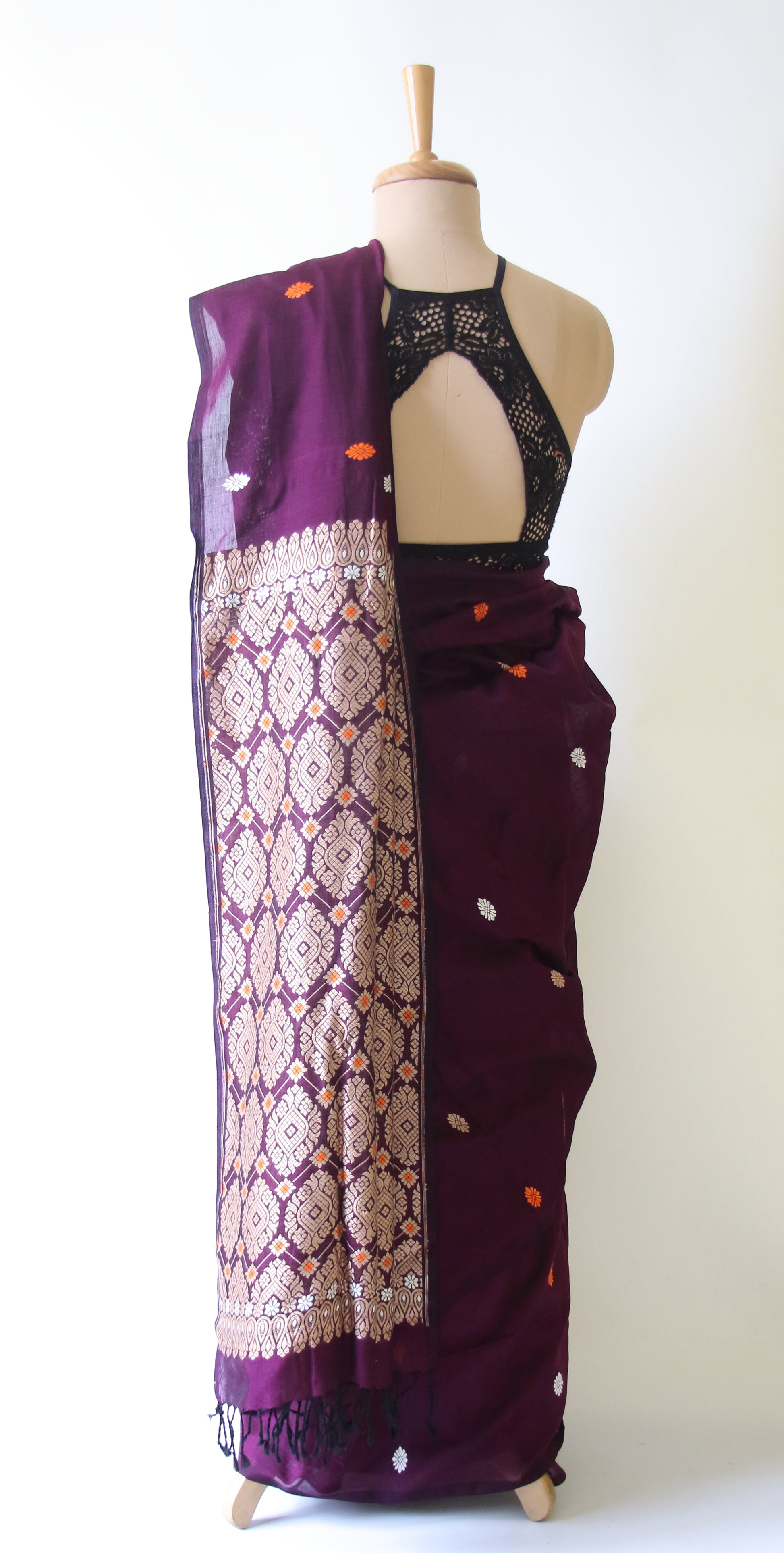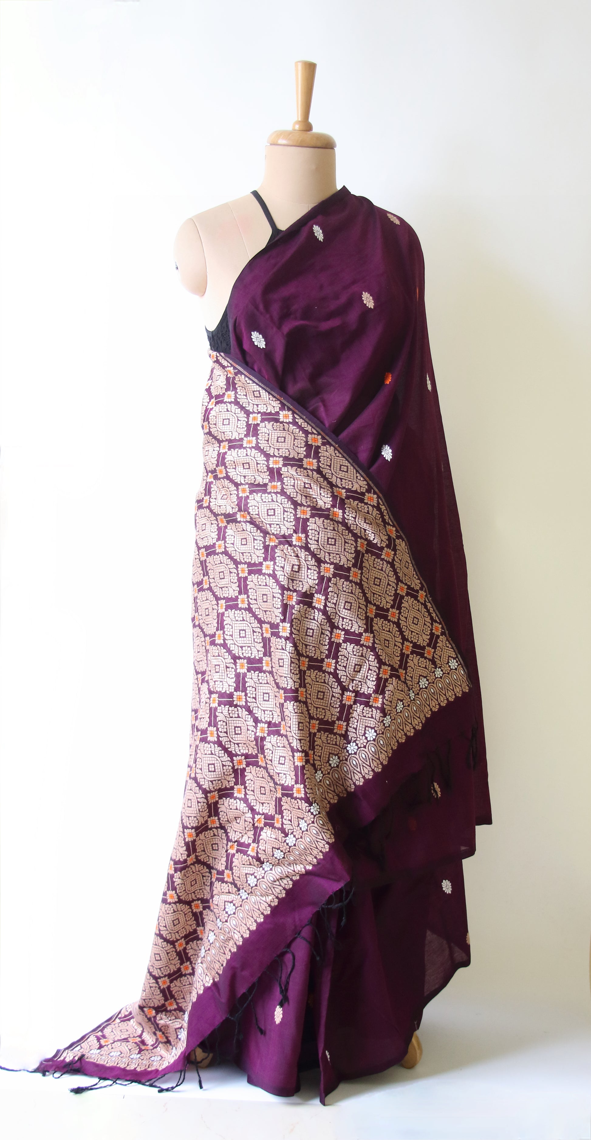 Handloom Cotton Sari from our looms in Assam .