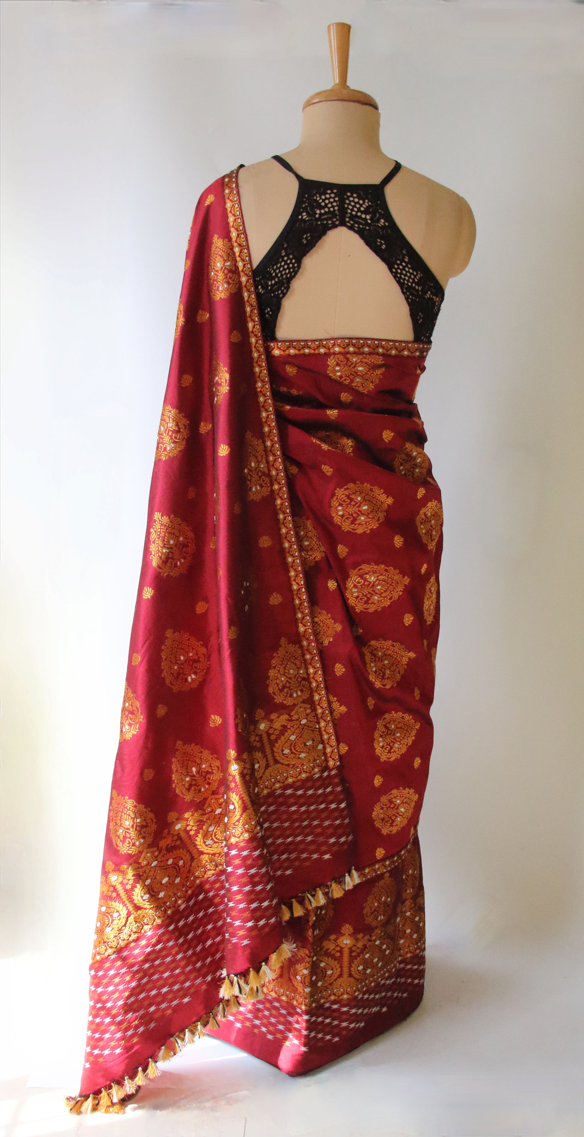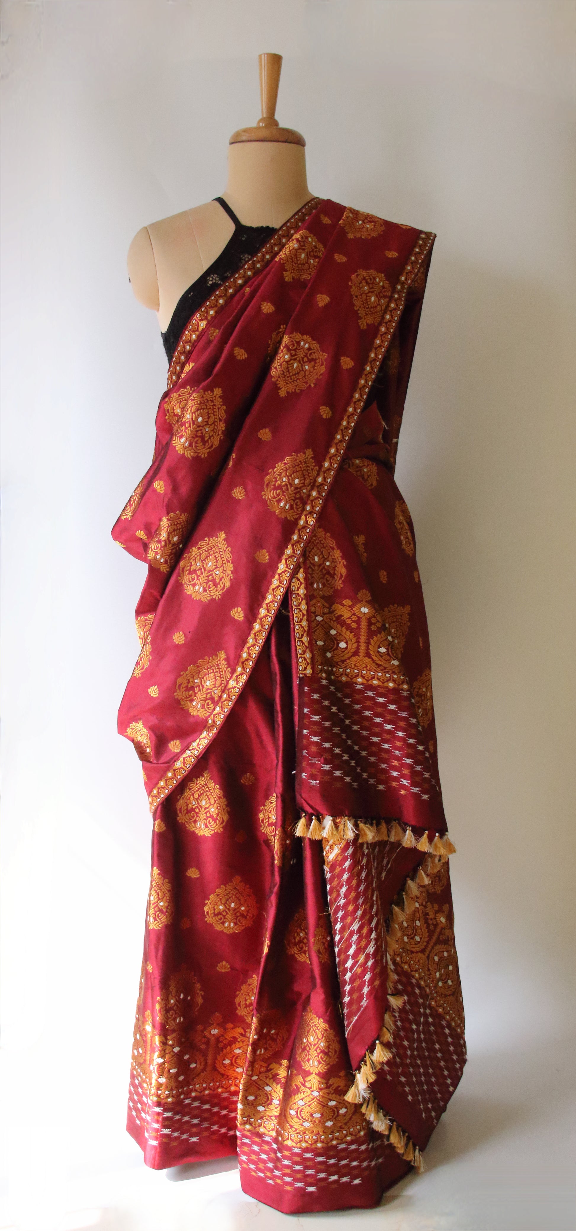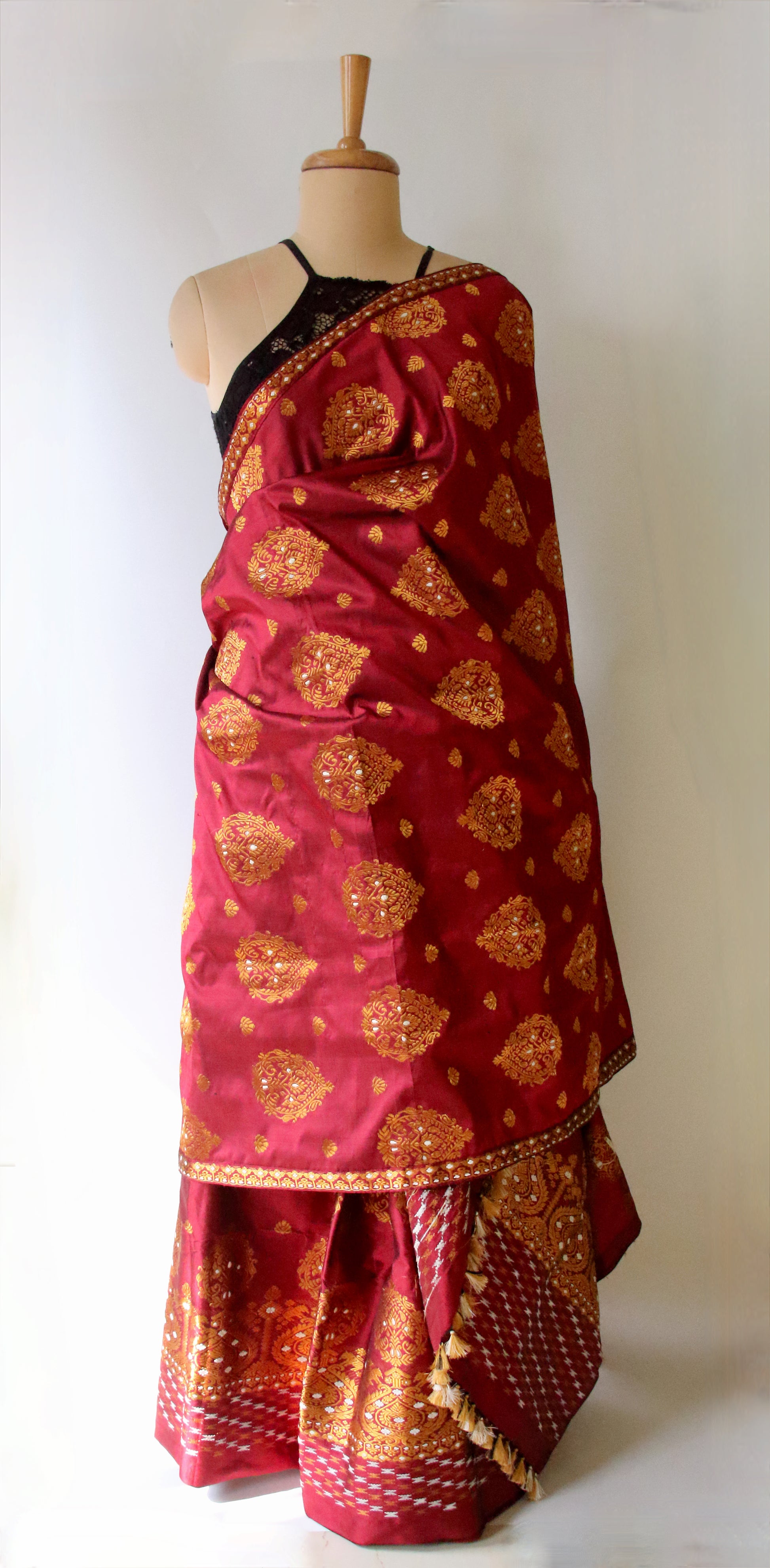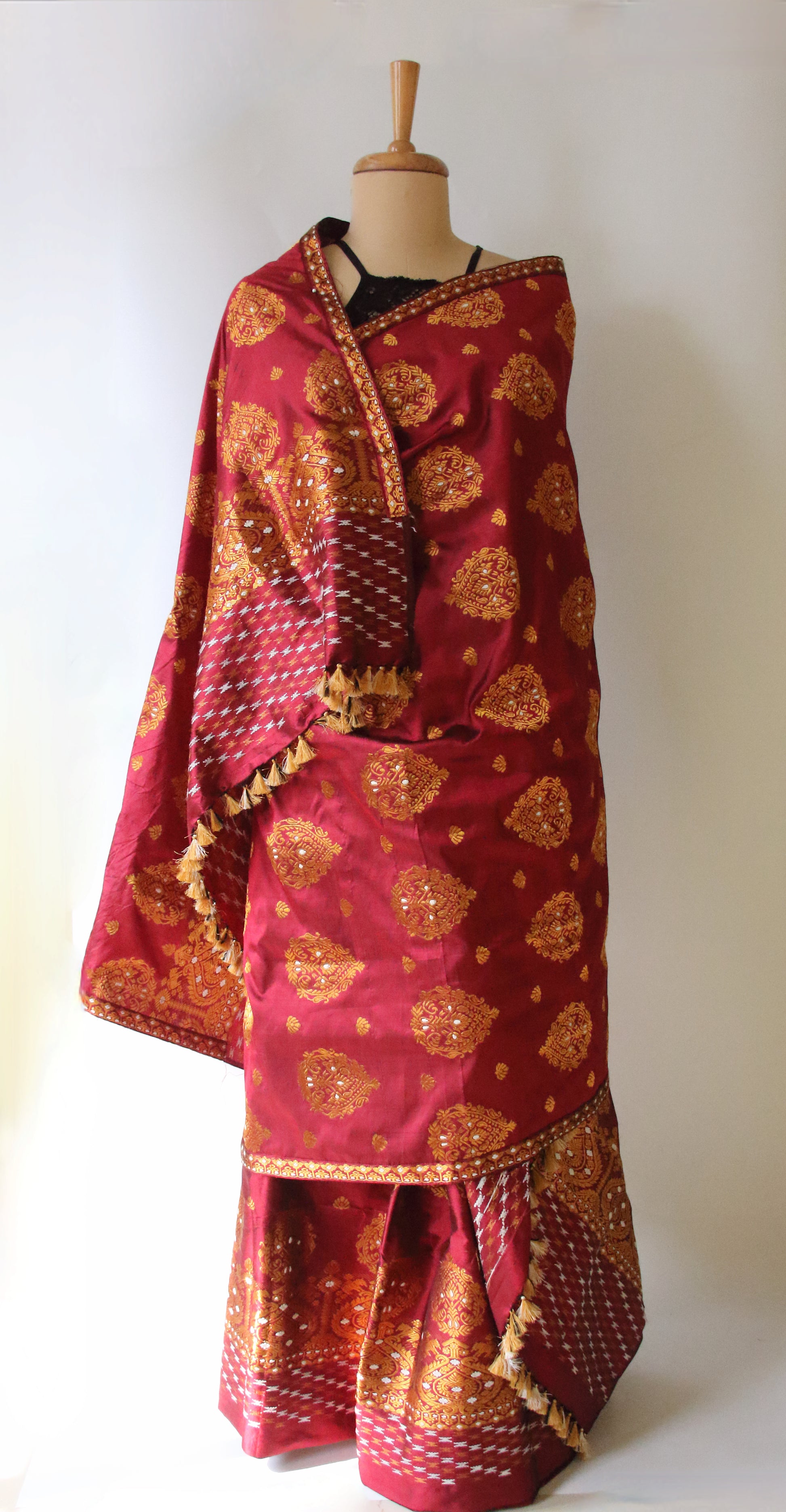 Maroon Bridal / Occasion wear traditional handwoven Mekhela Chador set .