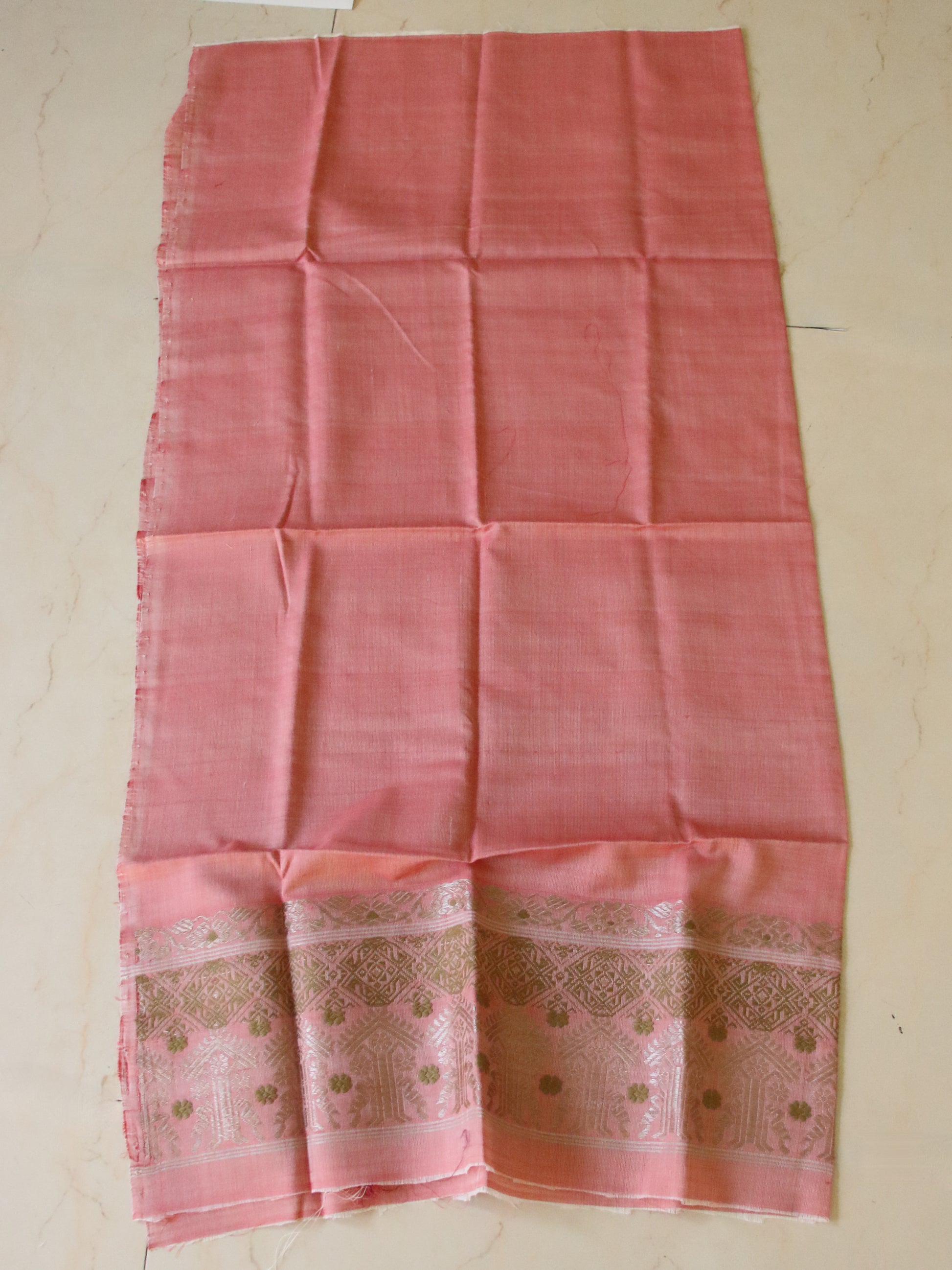 Natural Dyed Peach Colour Eri Silk Traditional Mekhela Chador Set from our looms in Assam , India .