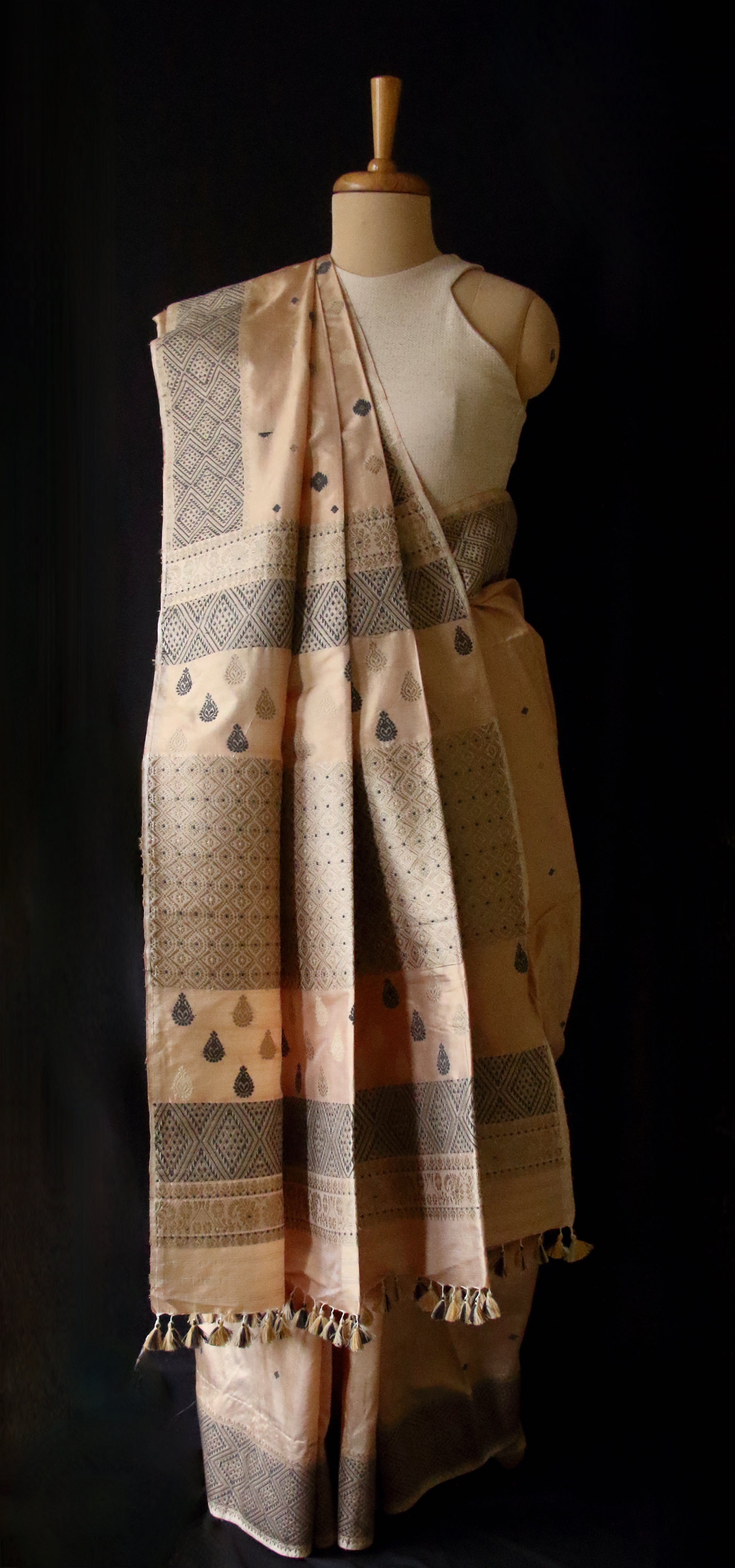 Natural Tea dyed Mulberry Silk Saree from Assam