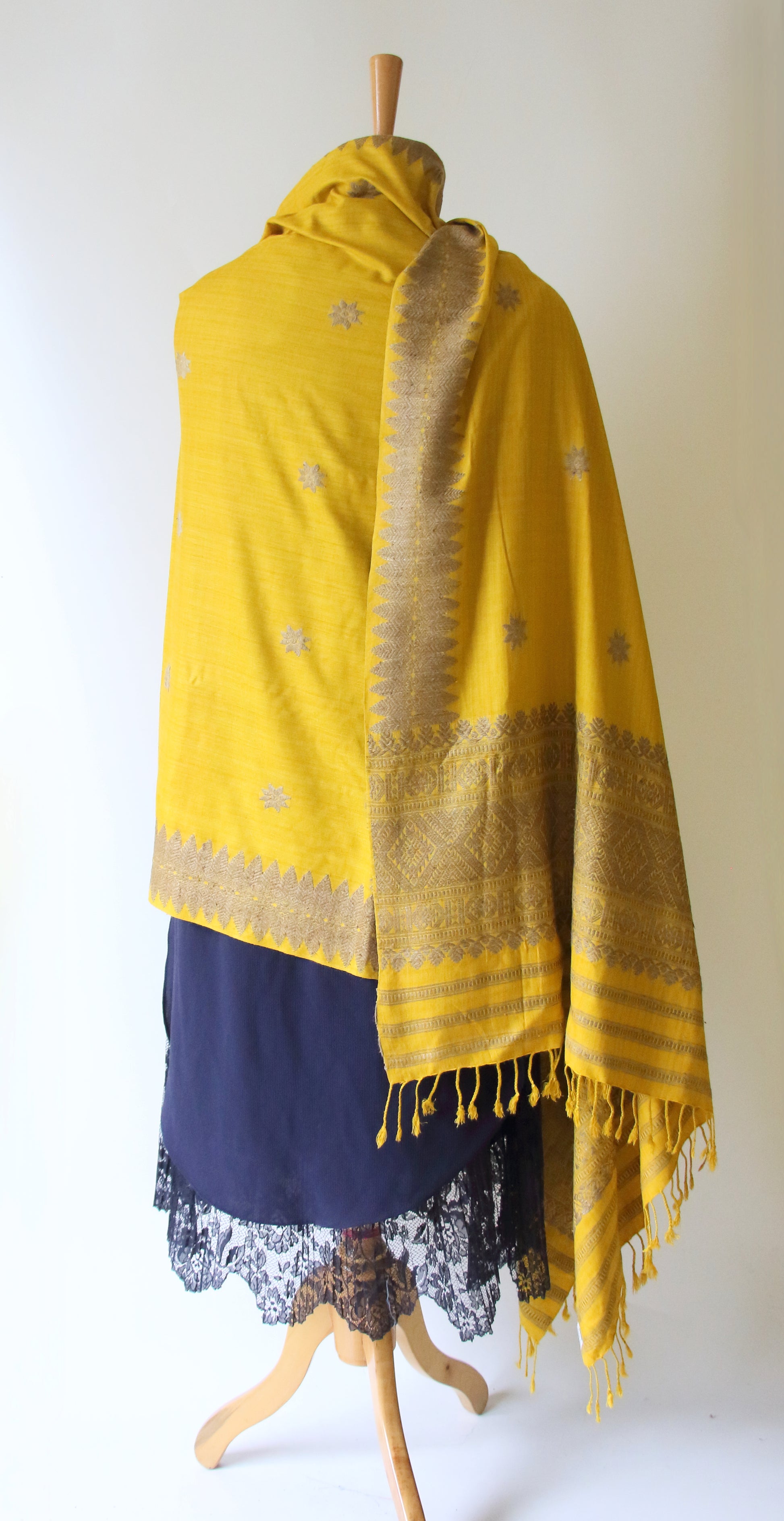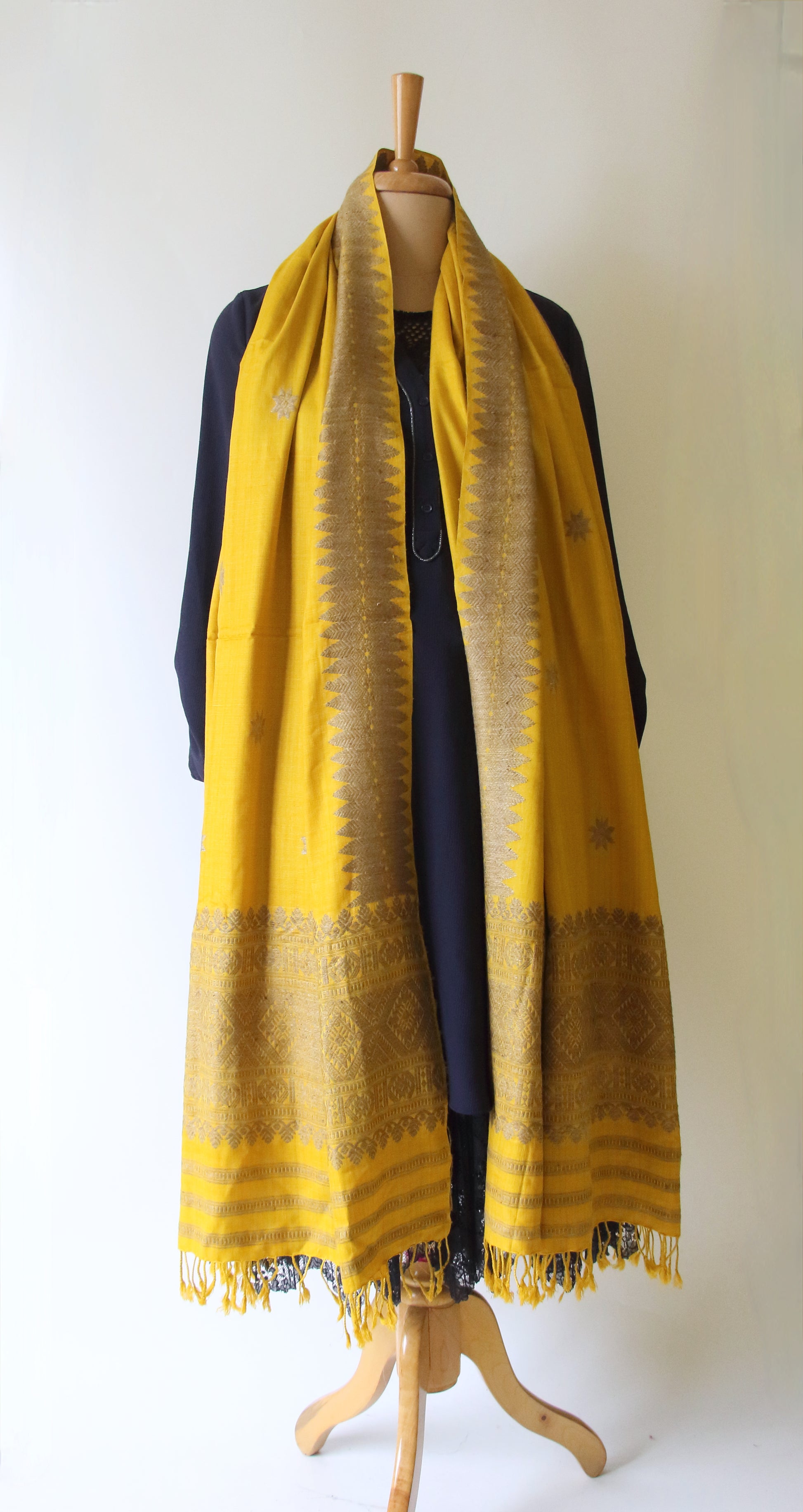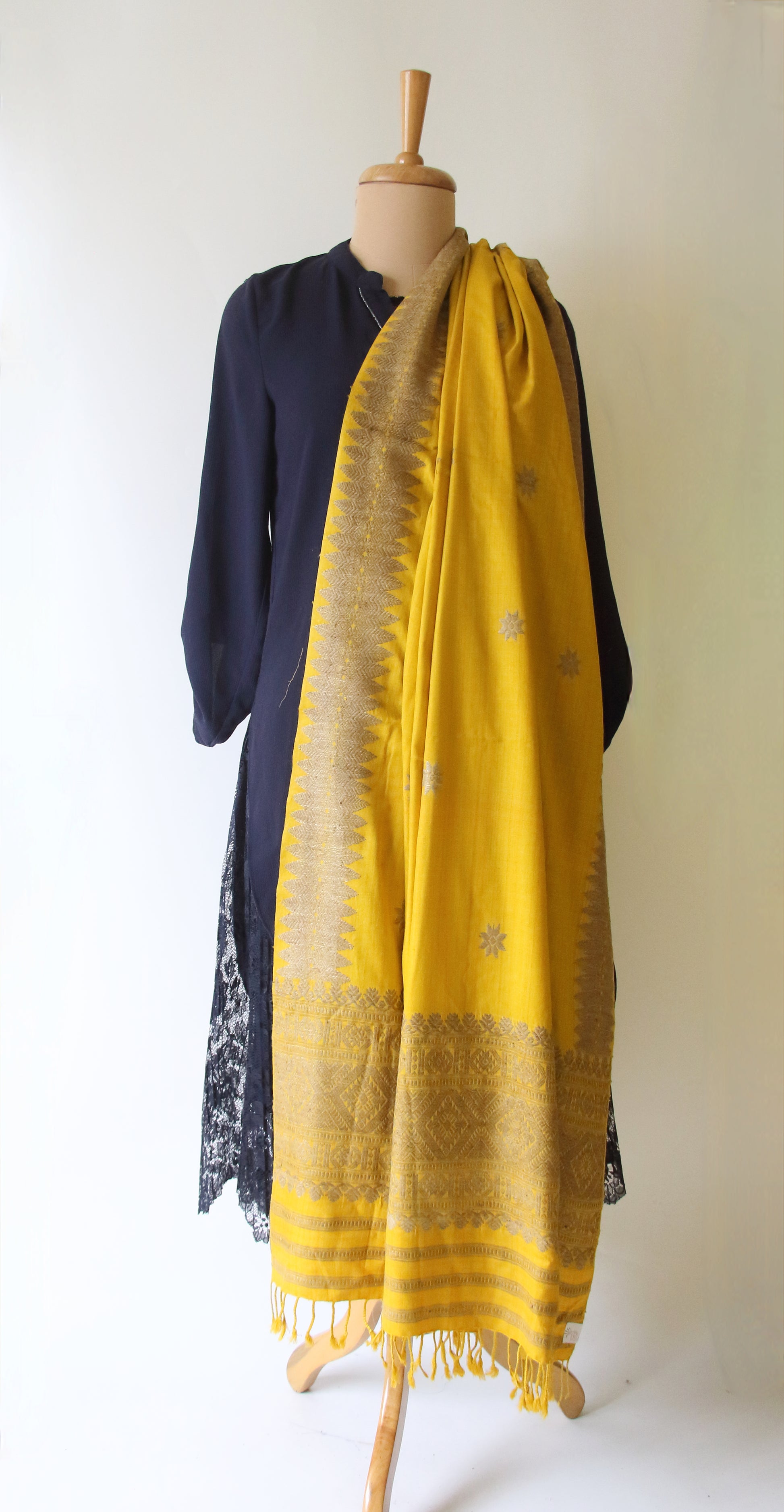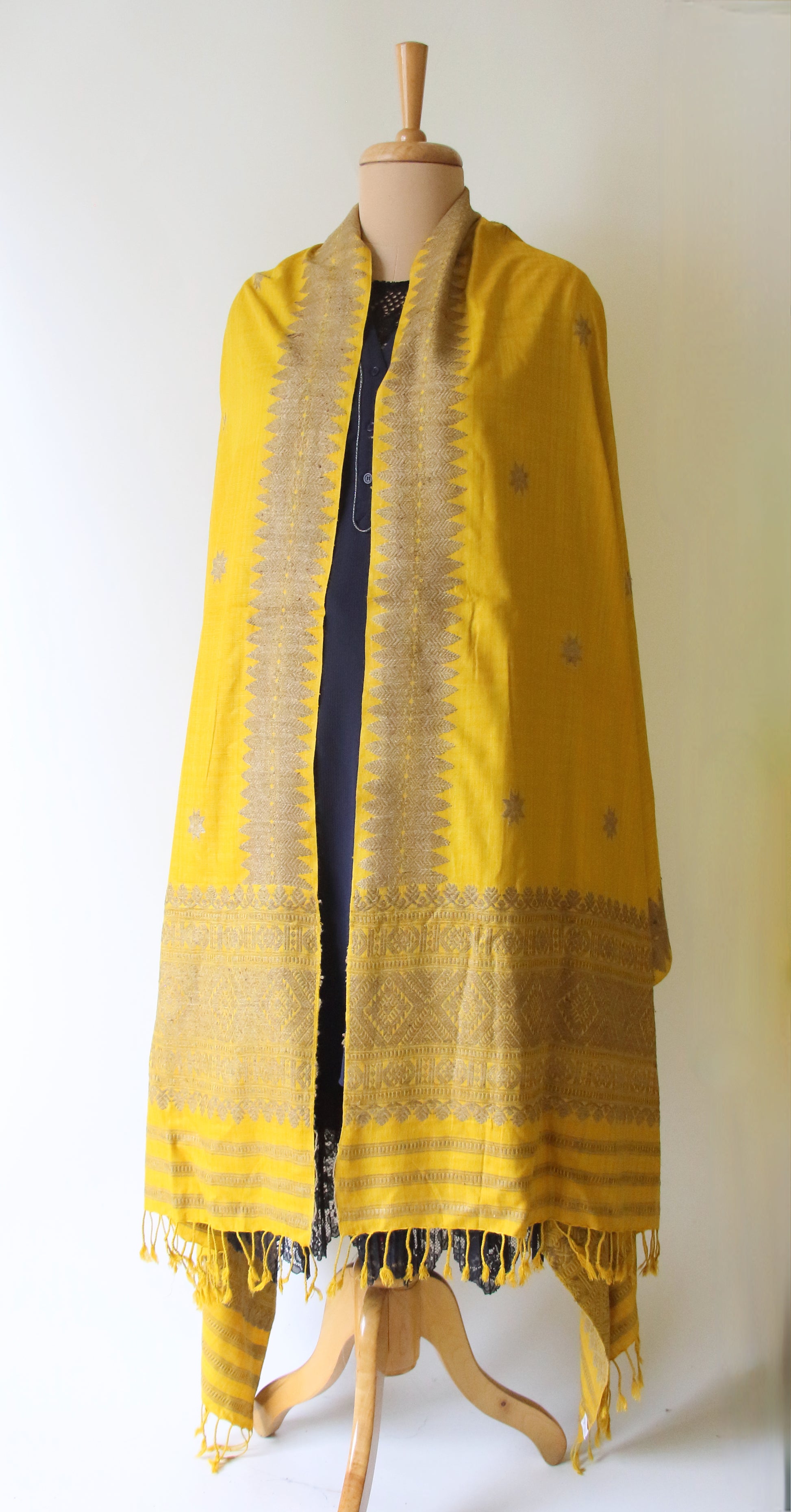 Yellow natural dyed handwoven Eri Silk Dupatta / Shawl  from our looms in Assam , India .