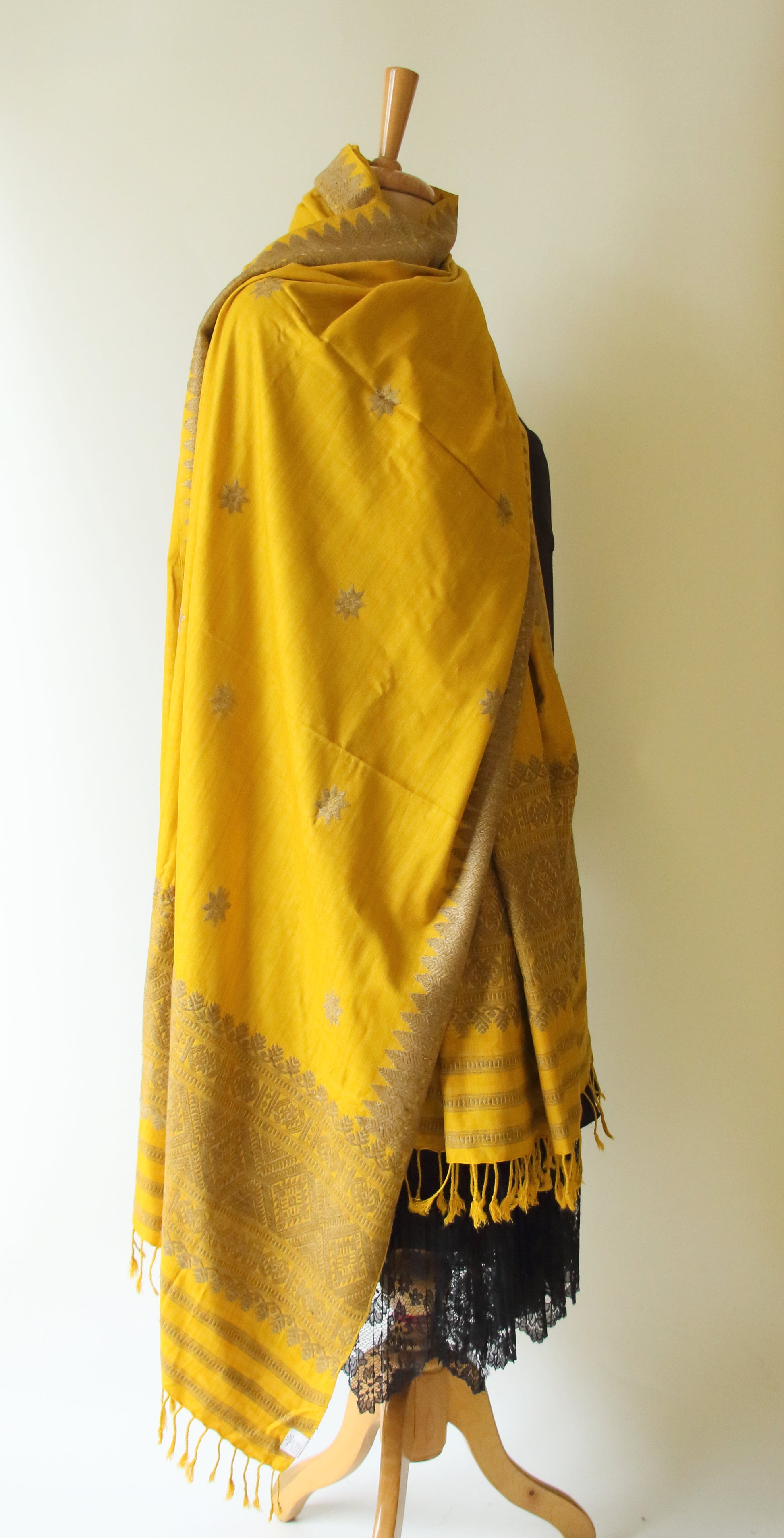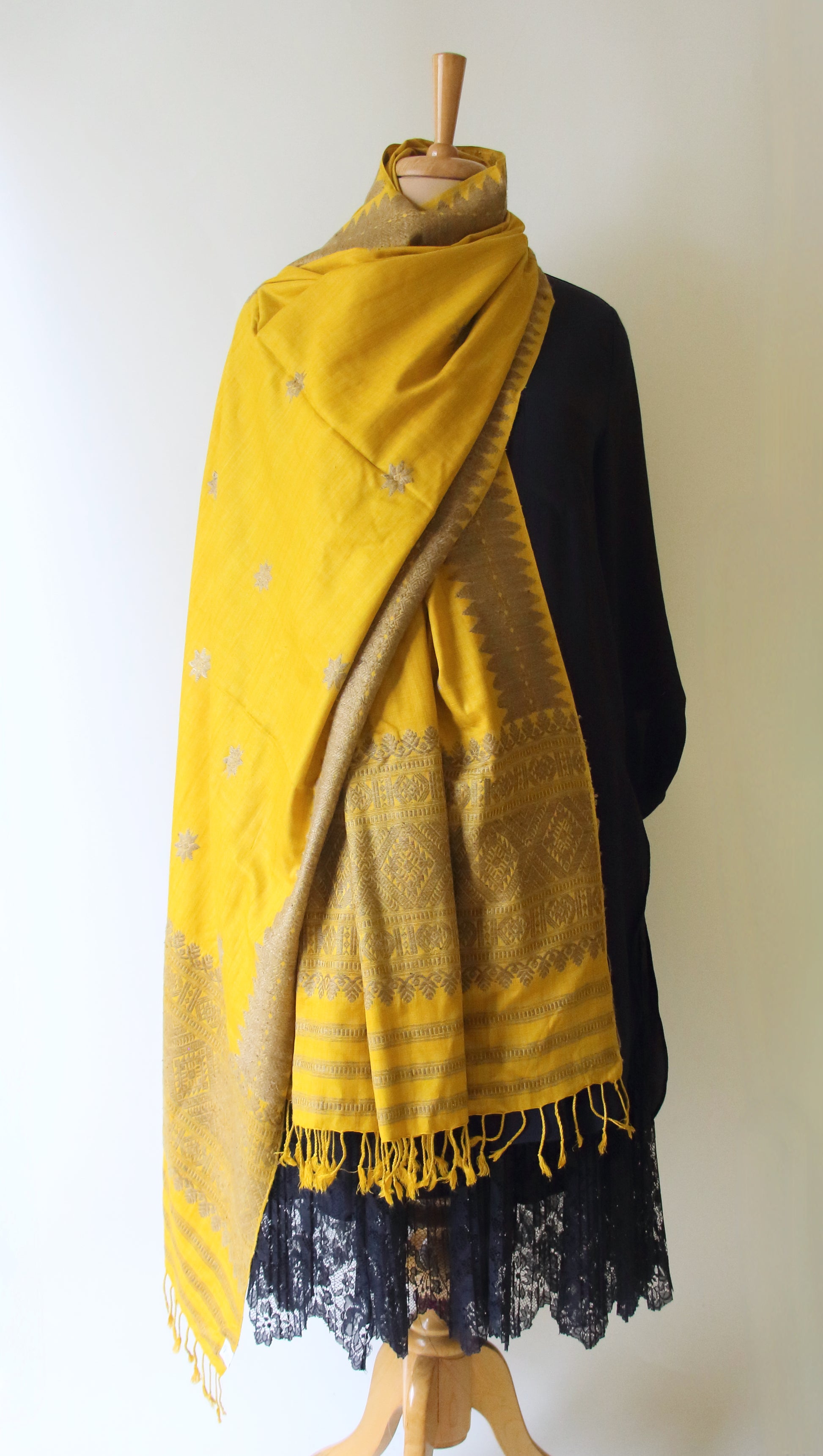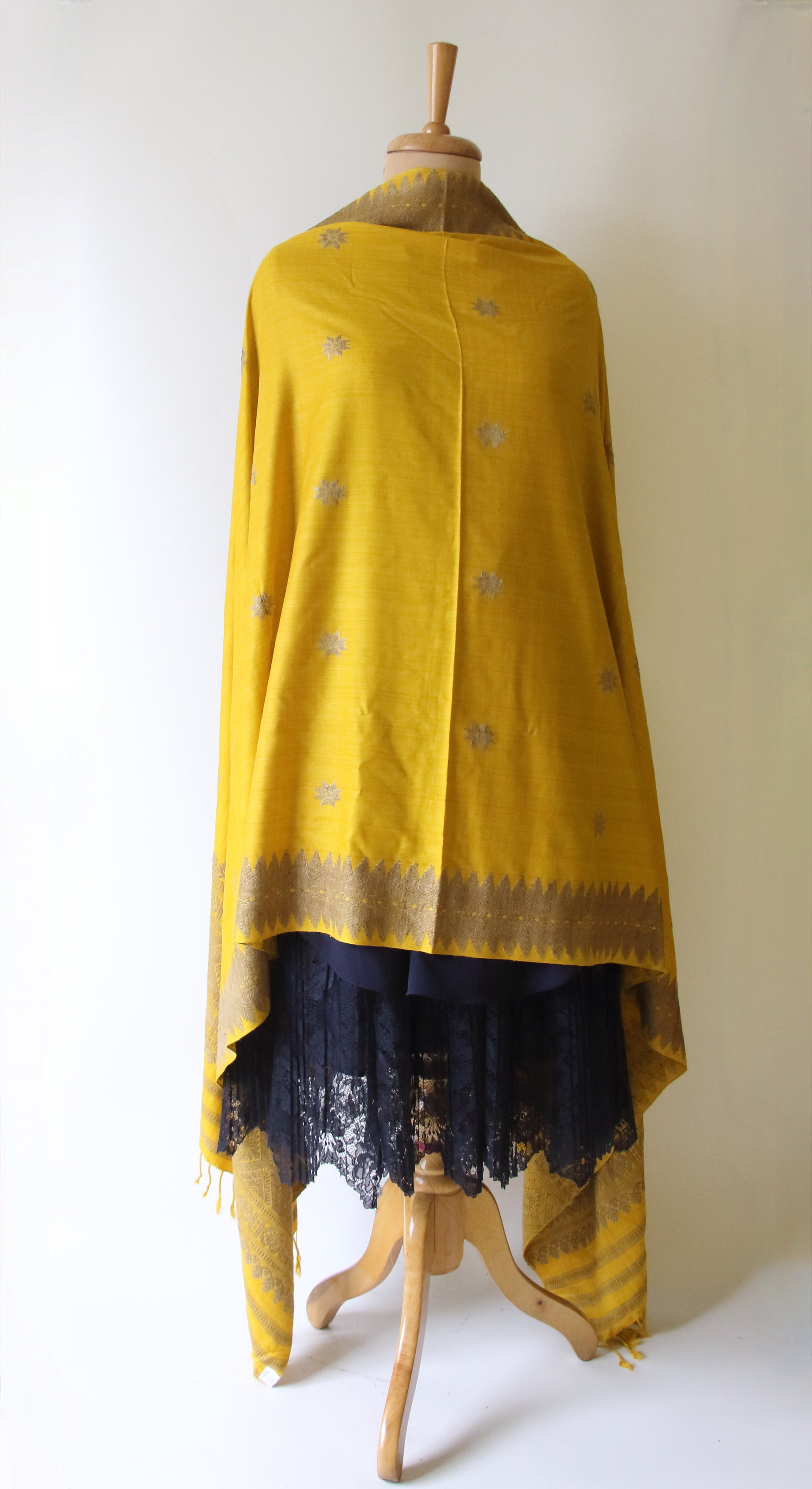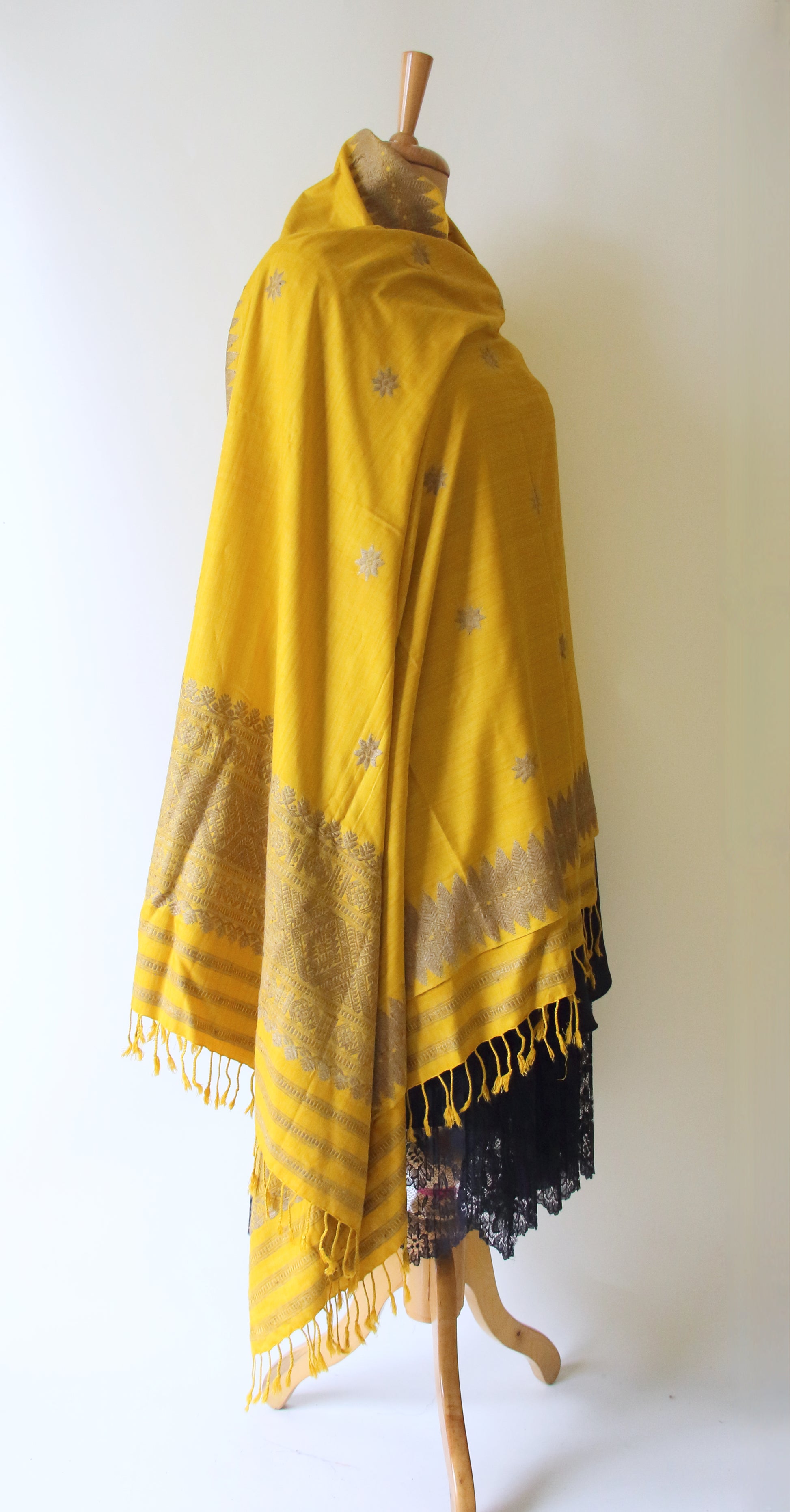 Yellow natural dyed handwoven Eri Silk Dupatta / Shawl  from our looms in Assam , India .