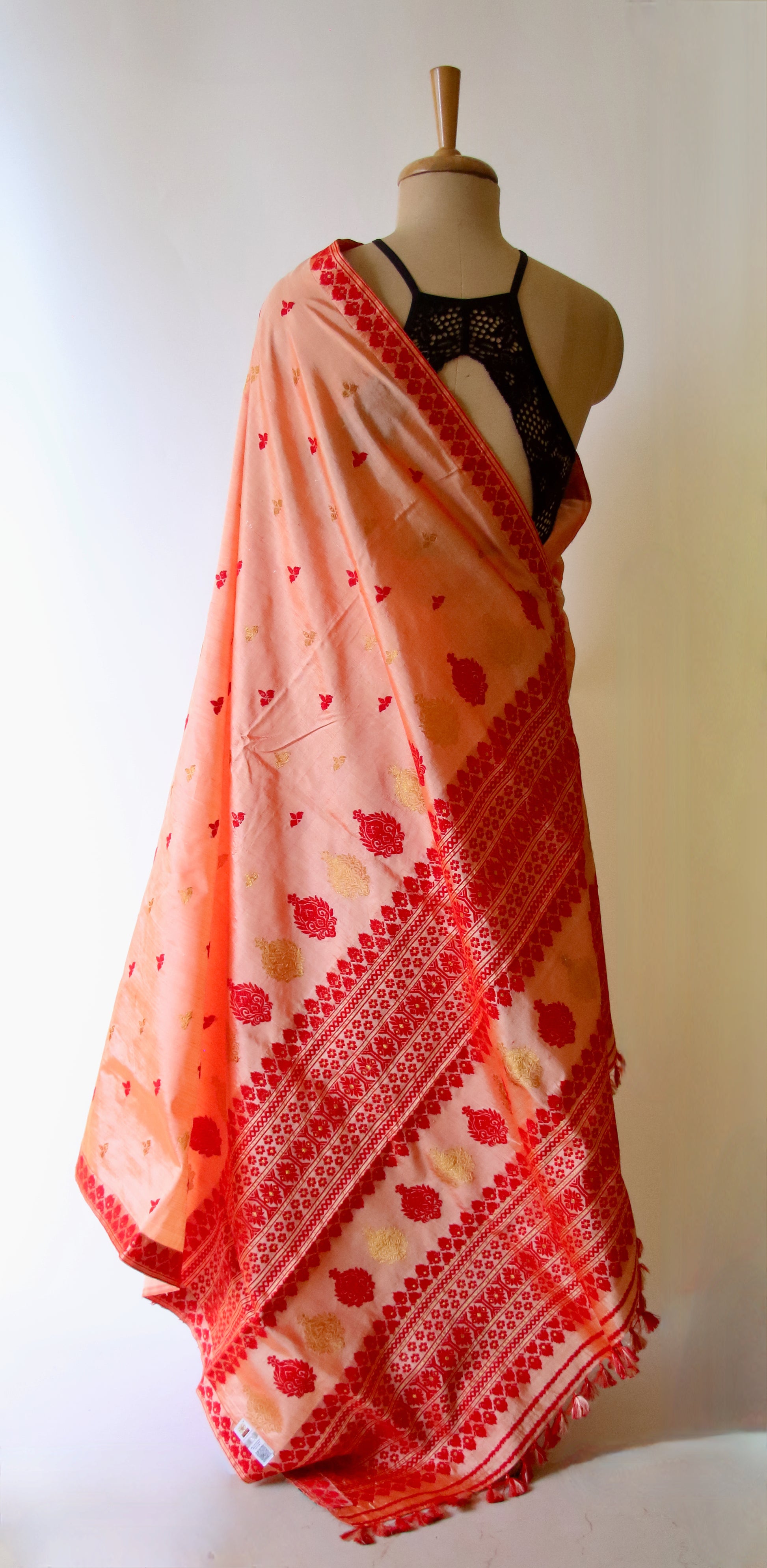 Hundred percent Handloom Silk Saree from our looms in Assam , India .